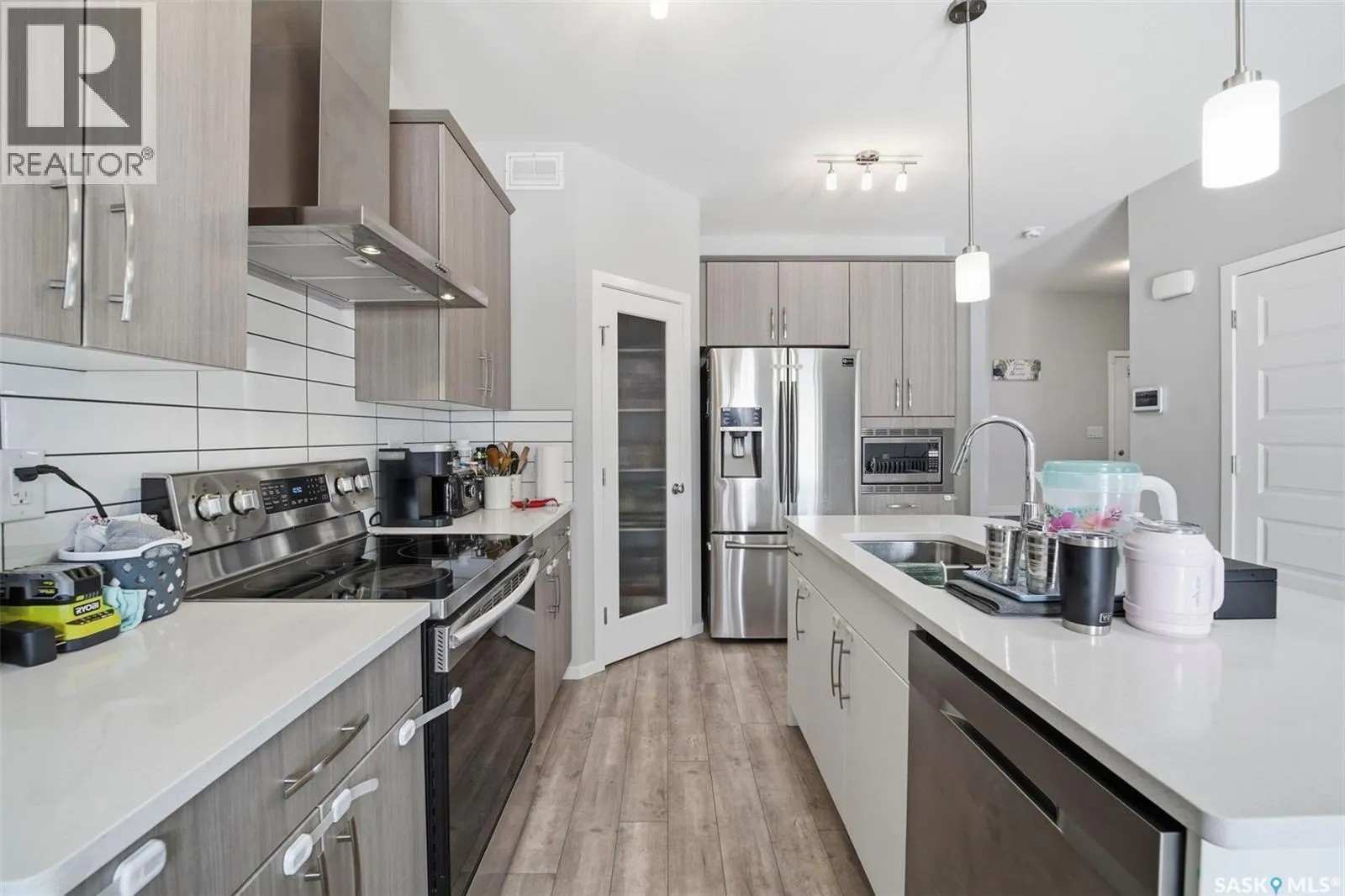 Welcome to 394 Hassard Close. This beautiful two-story home is built on a well-established lot on a quiet street in south Kensington. This open-concept floor plan is located close to all amenities, including parks and grocery stores within walking distance. The main floor features a living room with large windows that offer plenty of light and overlook a fully fenced and landscaped yard featuring established lilacs, flowers, and cherries. The kitchen comes with modern finishes such as quartz countertops, soft-close drawers, and beautiful wood-finished cupboards with plenty of space. It also includes a high-efficiency wide-base chimney-style range hood and a good-sized pantry. The house comes equipped with six stainless steel appliances, and the main floor also includes a foyer and a powder room. On the second floor, the master bedroom features large windows, an attached ensuite, and a walk-in closet. Two additional bedrooms offer plenty of space along with a second full washroom. The exterior features completed front yard hardscaping with colorful river rocks for minimal maintenance, and both sides of the house are hardscaped with tile walkways leading to the backyard. Additional features include an installed air conditioning unit for hot summer days, a water softener, and a full garage that is insulated, boarded, and drywalled. There are custom Blinds installed on all windows and doors on both the floors. The basement is neatly insulated and boarded, providing a clean canvas for your future development. This move-in-ready gem is waiting for you to call it home. (id:27476)
