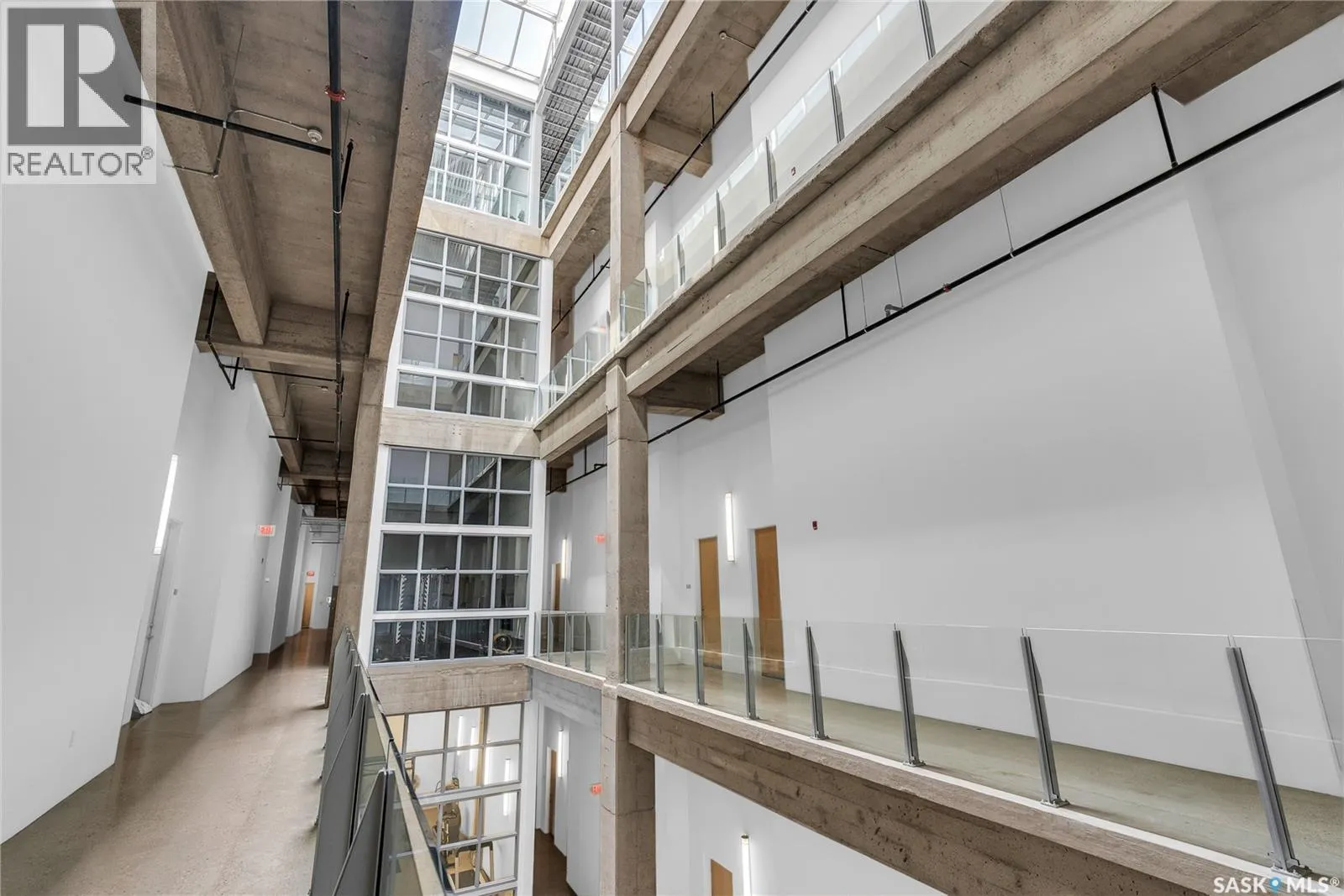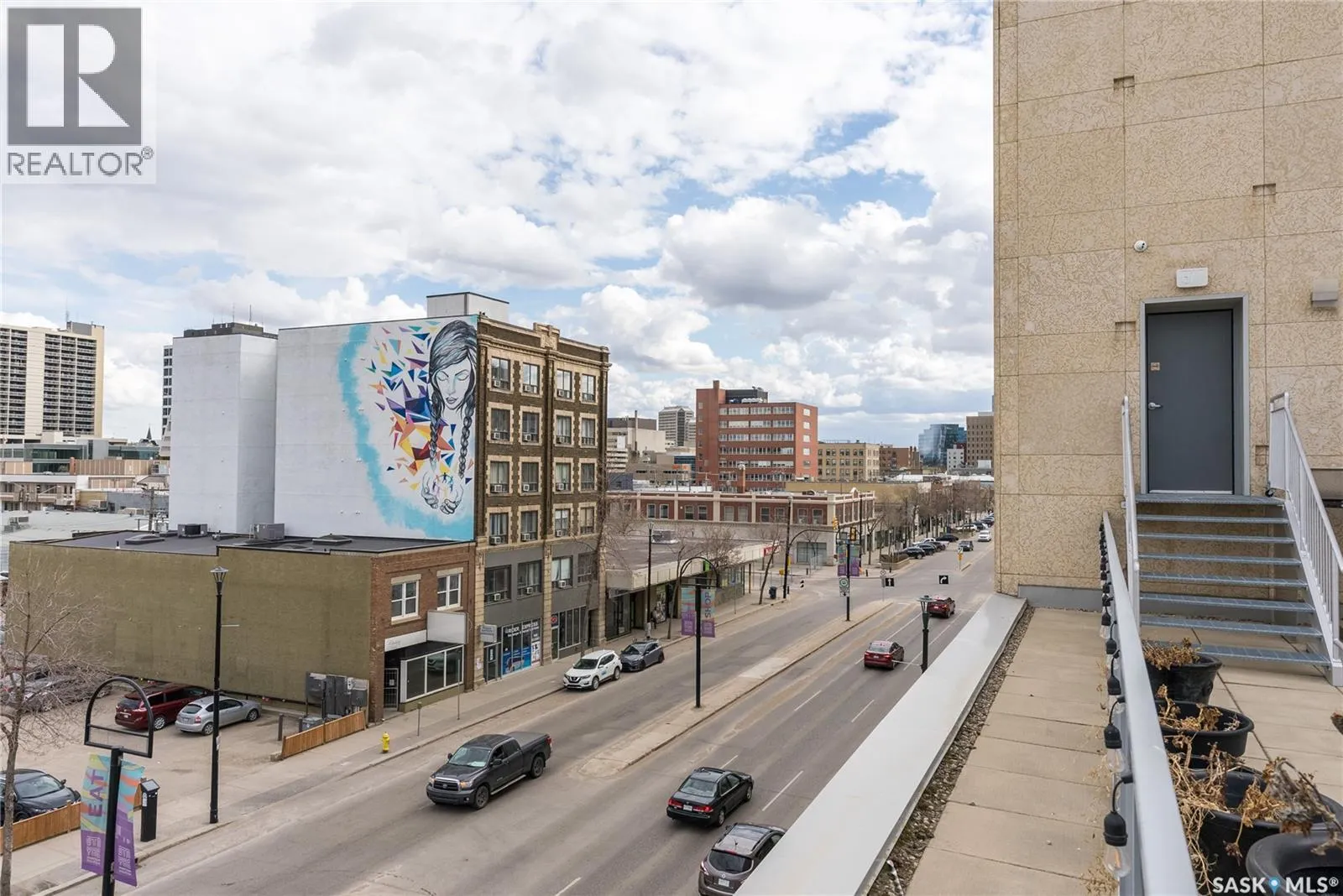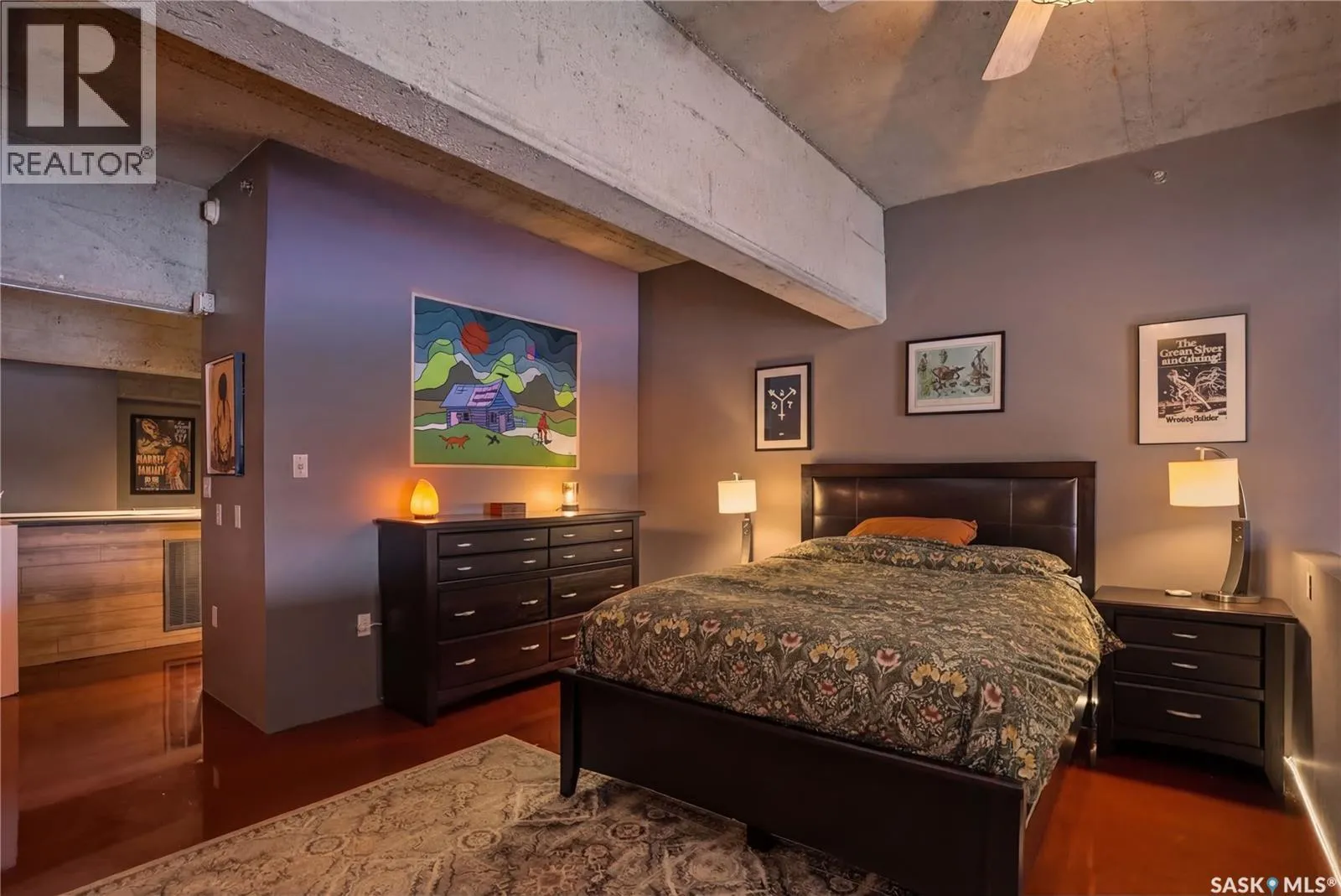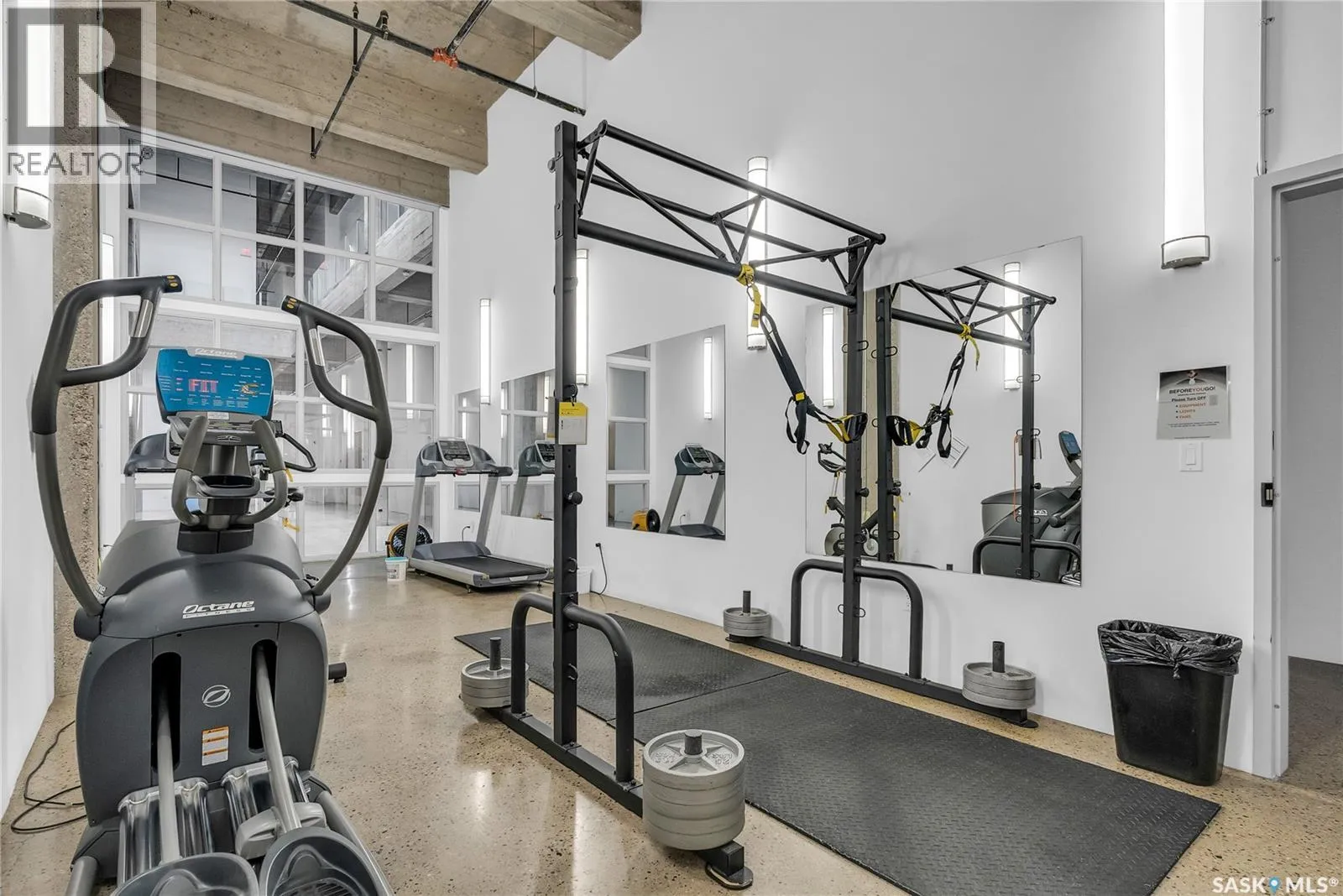 Welcome to this stunning loft-style condo in iconic 2nd Avenue Lofts, offering 1,093 sq. ft. of beautifully customized living space in the heart of downtown Saskatoon. This 2-storey unit blends authentic industrial character with thoughtful, high-end renovations, creating a home that is both dramatic and highly functional. Featuring 1 bedroom, 2 bathrooms, and soaring ceilings, this residence is defined by its striking exposed brick feature walls, polished concrete flooring on the main level, and massive windows that flood the space with natural light while showcasing incredible city views. The main floor offers an open-concept layout ideal for both everyday living and entertaining, with a custom kitchen that includes concrete countertops on the island, kitchen surfaces, coffee bar, and upper laundry area, along with a stainless steel tile backsplash and extensive lighting upgrades. Recessed lighting, under-cabinet lighting, ceiling fans, and dedicated outlets for blinds and portable A/C add both style and function. The living room is anchored by dramatic 16-foot windows fitted with custom motorized blackout blinds, adding comfort and convenience to the bold architectural design. Upstairs, the lofted primary bedroom overlooks the main living space and continues the condoâs modern industrial feel with metallic epoxy flooring in the landing area and a fully renovated bathroom. Both bathrooms have been extensively updated with upgraded tile, vanities, toilets, fixtures, recessed medicine cabinets, and modern lighting. In-suite laundry adds further convenience. This unit includes 1 underground stall and is located in a professionally managed building with elevator access and an exercise area. Condo fees include heat, water, sewer, power, common area maintenance, exterior building maintenance, garbage, snow, and reserve fund contributions. A rare opportunity to own a truly customized urban loft in one of Saskatoonâs most recognizable downtown buildings. (id:27476)
