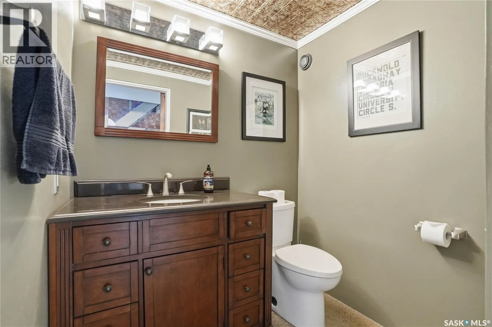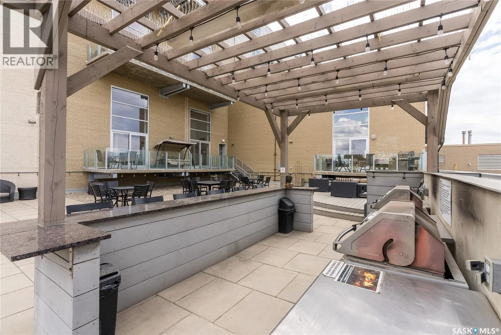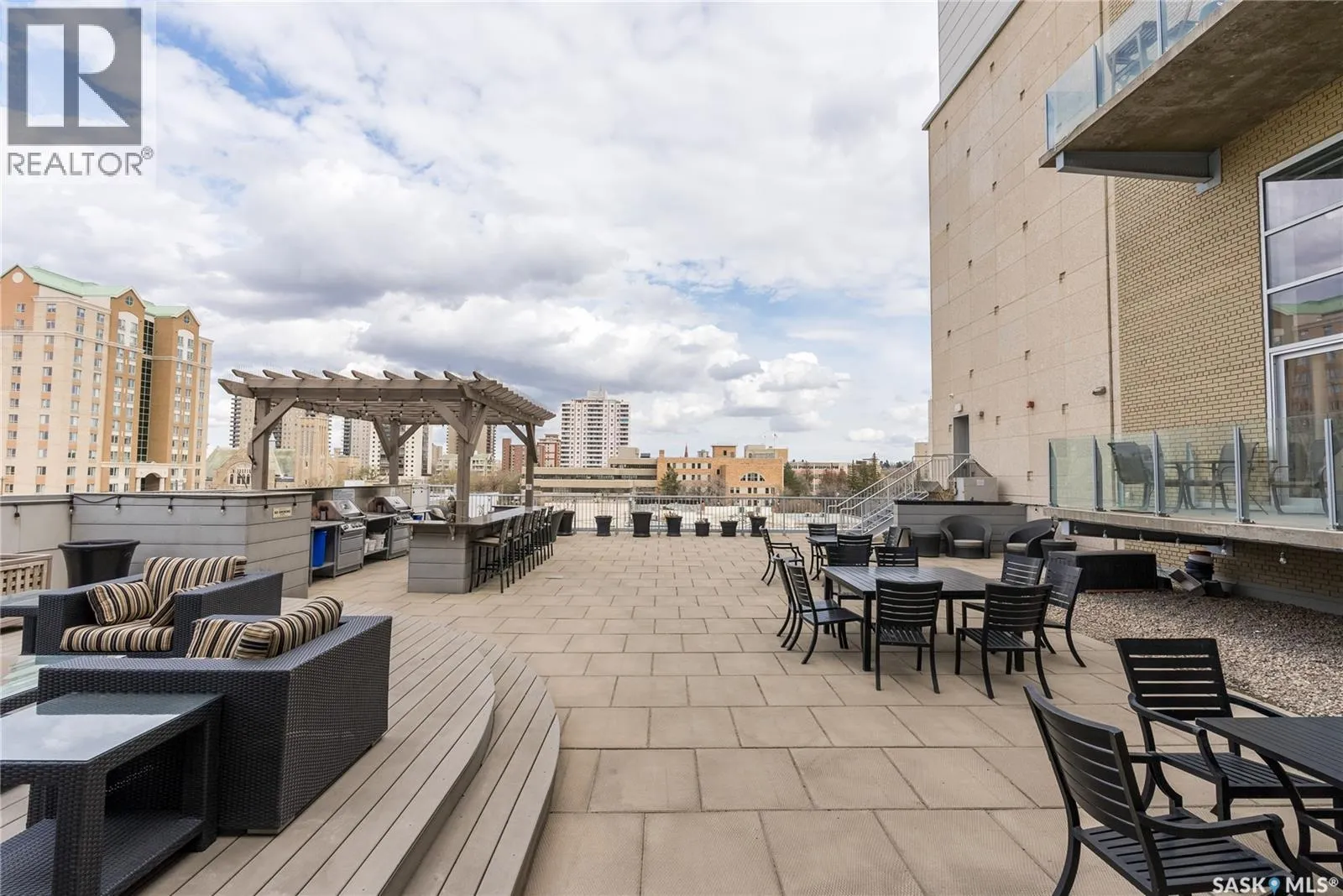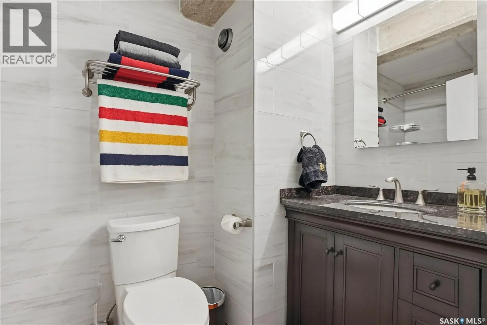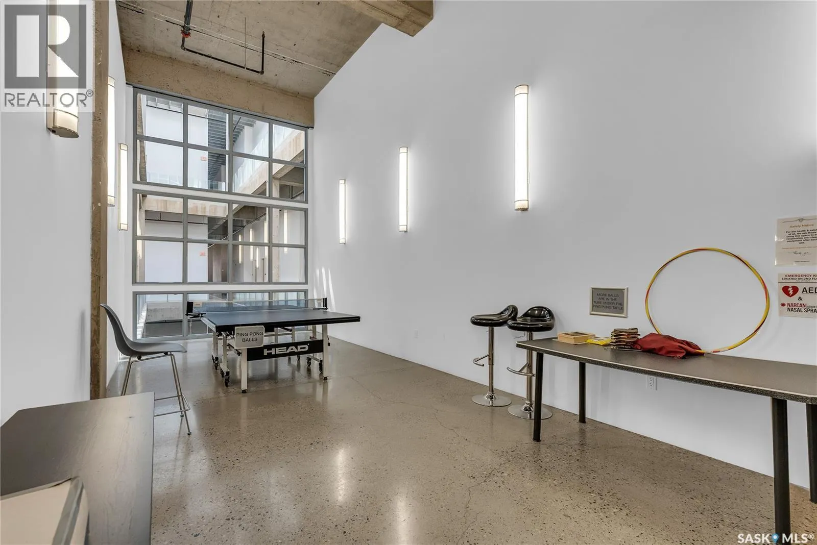 Welcome to this stunning loft-style condo in iconic 2nd Avenue Lofts, offering 1,093 sq. ft. of beautifully customized living space in the heart of downtown Saskatoon. This 2-storey unit blends authentic industrial character with thoughtful, high-end renovations, creating a home that is both dramatic and highly functional. Featuring 1 bedroom, 2 bathrooms, and soaring ceilings, this residence is defined by its striking exposed brick feature walls, polished concrete flooring on the main level, and massive windows that flood the space with natural light while showcasing incredible city views. The main floor offers an open-concept layout ideal for both everyday living and entertaining, with a custom kitchen that includes concrete countertops on the island, kitchen surfaces, coffee bar, and upper laundry area, along with a stainless steel tile backsplash and extensive lighting upgrades. Recessed lighting, under-cabinet lighting, ceiling fans, and dedicated outlets for blinds and portable A/C add both style and function. The living room is anchored by dramatic 16-foot windows fitted with custom motorized blackout blinds, adding comfort and convenience to the bold architectural design. Upstairs, the lofted primary bedroom overlooks the main living space and continues the condoâs modern industrial feel with metallic epoxy flooring in the landing area and a fully renovated bathroom. Both bathrooms have been extensively updated with upgraded tile, vanities, toilets, fixtures, recessed medicine cabinets, and modern lighting. In-suite laundry adds further convenience. This unit includes 1 underground stall and is located in a professionally managed building with elevator access and an exercise area. Condo fees include heat, water, sewer, power, common area maintenance, exterior building maintenance, garbage, snow, and reserve fund contributions. A rare opportunity to own a truly customized urban loft in one of Saskatoonâs most recognizable downtown buildings. (id:27476)