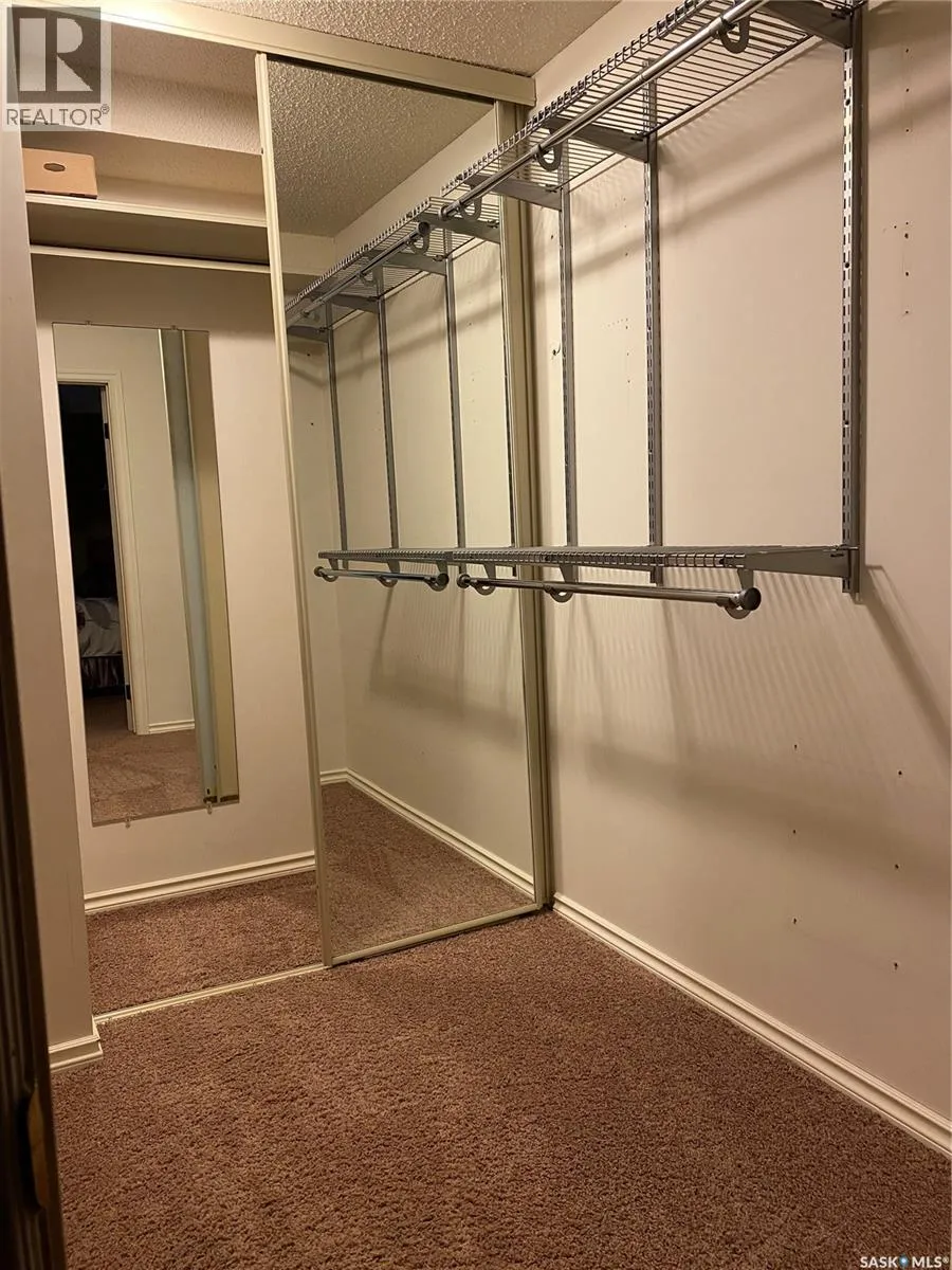 Ideal condo on 5th Avenue â perfectly situated close to City Hospital, the river, and downtown amenities. This quiet building offers beautiful second-floor corner unit for both comfort and convenience, with 2 parking stalls. Inside, youâll find a bright white kitchen with tile backsplash, quartz countertops, pot drawers, a pantry with pull-out shelves, task lighting, a window over the sink, & appliances included. The dining area features a wide window, and open to a spacious living room with patio doors leading to a 20â x 7â deck with plexiglass inserts and DuraDeck. The primary bedroom includes a large walk-in closet and a 3-piece ensuite. Additional features include a den with shelving and in-suite laundry. The bonus here of one underground parking stall (#14) and one surface parking stall (#31) plus storage is available in Storage Room #1-209. Call today for your personal veiwing. (id:27476)