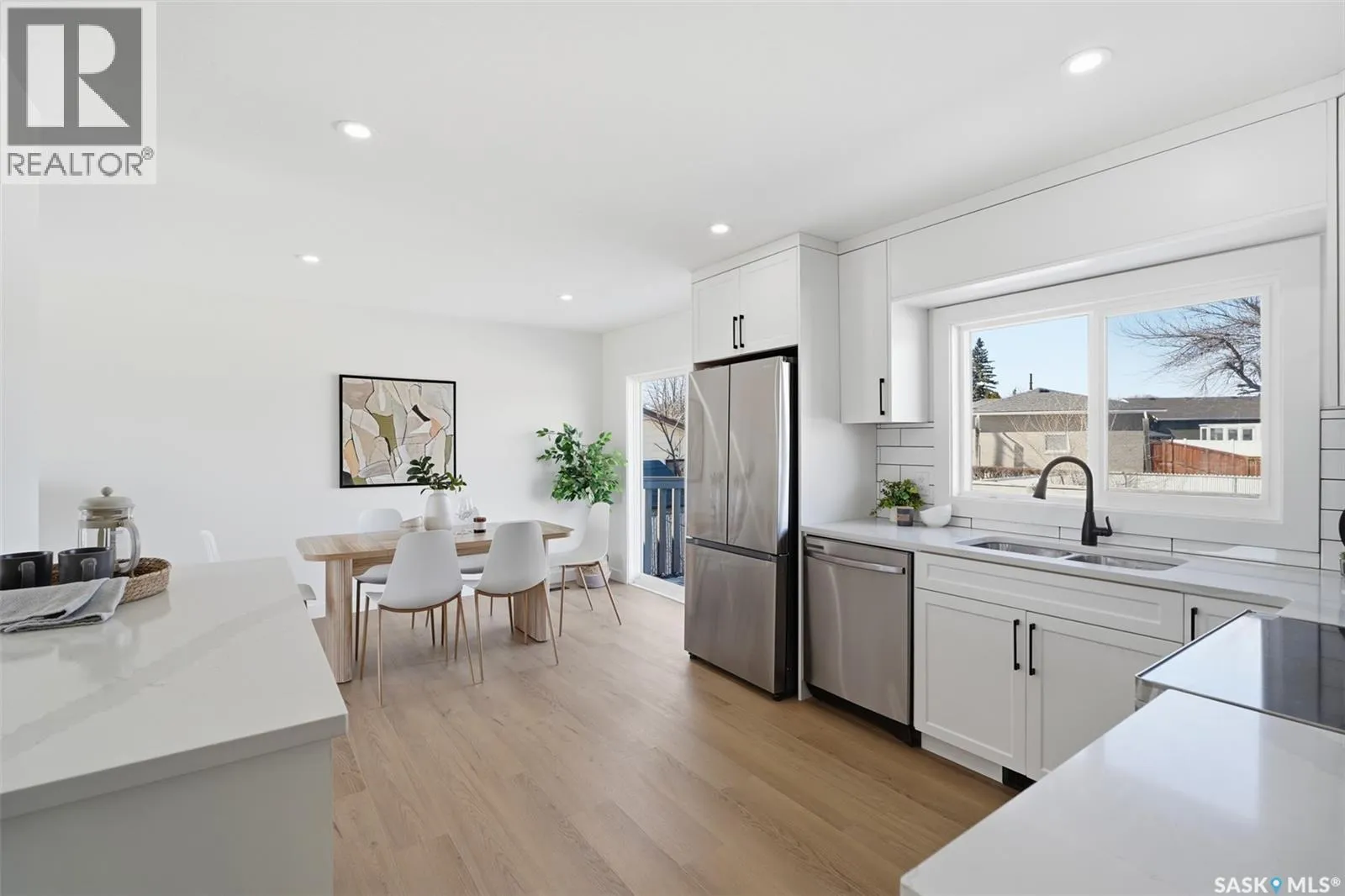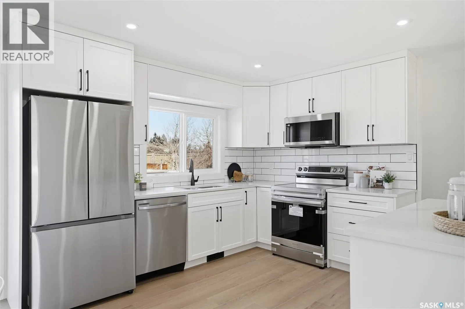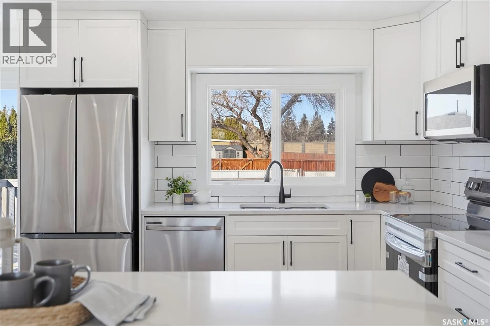 North End Revenue Property â Fully Renovated Duplex Rare opportunity to own a completely renovated up/down duplex in a quiet North End cul-de-sac just steps from the river and walking paths. This unique property offers 2,200 sq. ft. of total living space, with 1,100 sq. ft. on the main floor and 1,100 sq. ft. in the basement suite, making it an excellent revenue helper or investment property. The main floor features 3 bedrooms and 2 bathrooms, while the fully self-contained basement suite offers 3 bedrooms and 1 bathroom. Both units have separate entrances, with the basement suite featuring both a front entry and walkout door to the backyard, plus large windows that provide ample natural light. The entire interior has been fully renovated and shows like new, including vinyl plank flooring, quartz countertops, tiled backsplash, and modern finishes throughout. Each unit includes its own laundry, with washers and dryers included, along with two brand-new stainless steel kitchen appliance packages. Major mechanical and exterior upgrades add long-term value and peace of mind, including a new high-efficiency furnace and oversized water heater. The exterior is in mint condition with excellent curb appeal, featuring brand new shingles, siding, doors, windows, soffits, fascia, and eaves.Outdoor features include a huge 14â x 24â deck off the dining room patio doors, a maintenance-free chain link fence, and a large back gate with alley access for additional parking, along with a single concrete front driveway. Located only steps from the river, scenic walking paths, and a nearby bus route, this property offers both convenience and lifestyle. Very rare and unique property. Asking: $574,900 (id:27476)