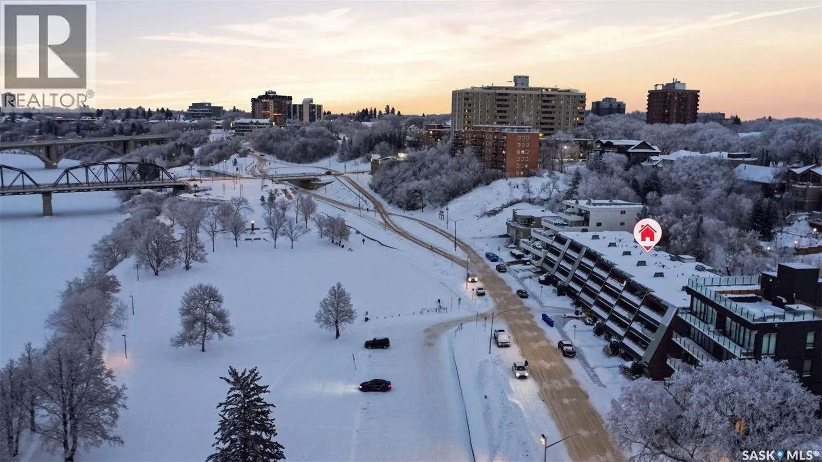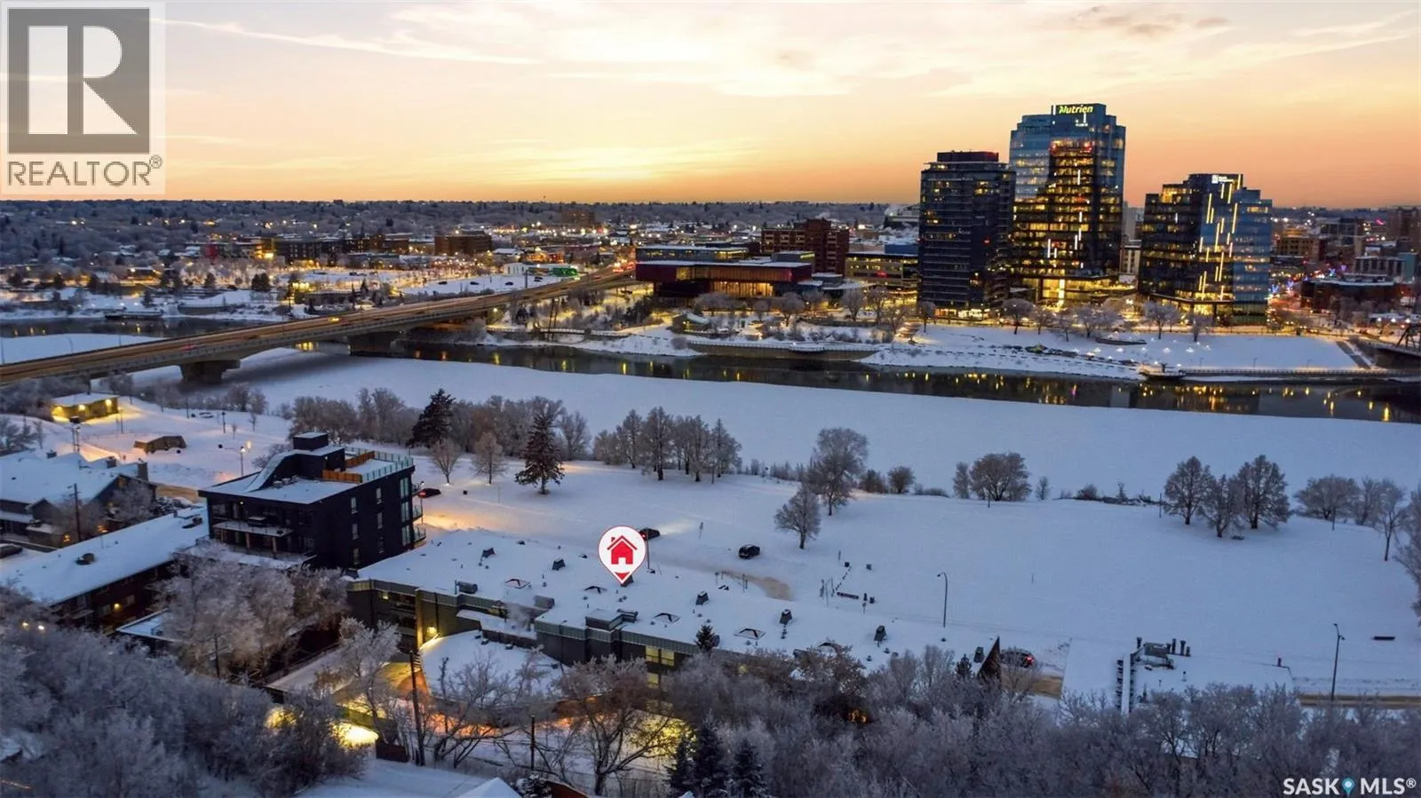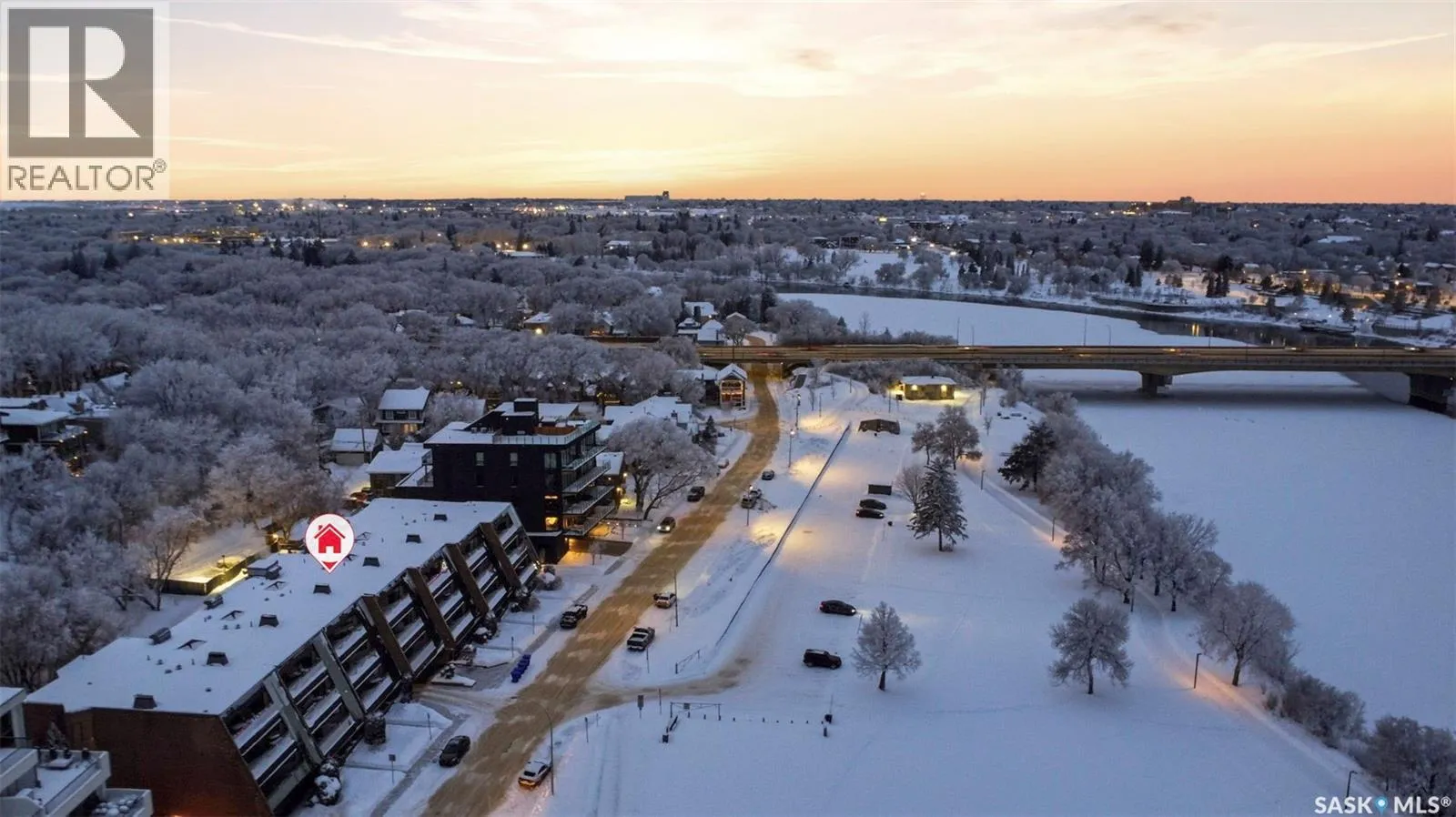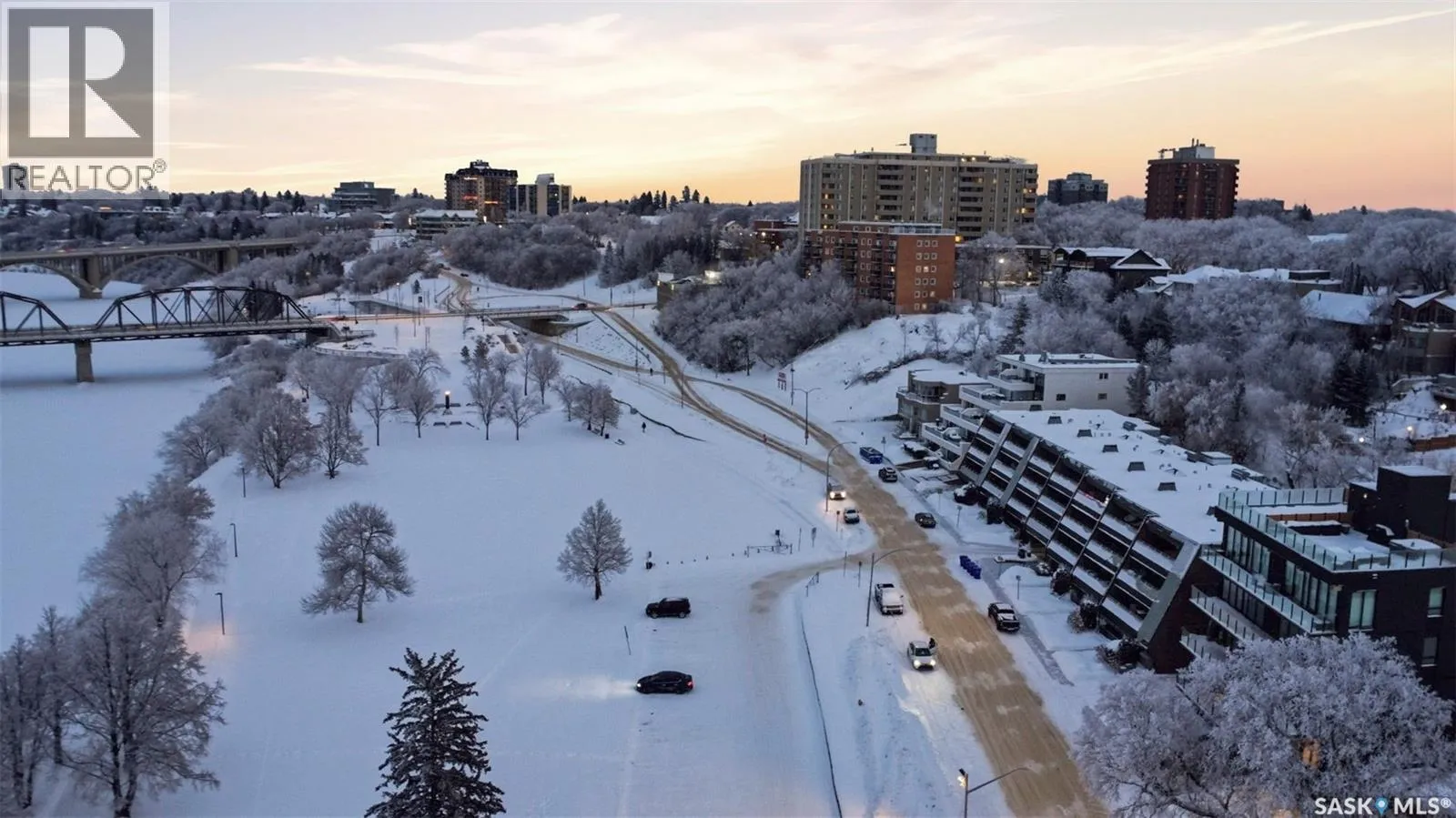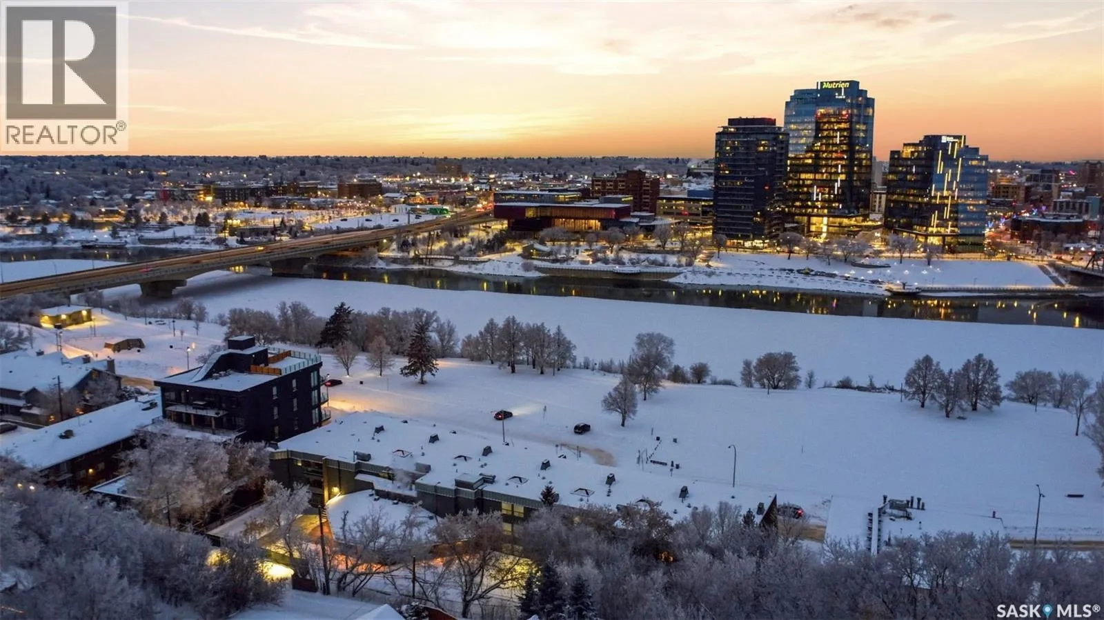 Welcome to life on prestigious Saskatchewan Crescentâone of the cityâs most sought-after addresses. This spacious 1,184 sq. ft. condo offers an ideal blend of comfort, style, and location, directly across the street from Rotary Park with beautiful green space and river views just steps from your door. This beautifully updated 1-bedroom plus den suite has been extensively renovated, offering a fresh, modern feel throughout. Enjoy brand new flooring, a fully updated kitchen complete with new appliances, refreshed bathroom, new washer and dryer, updated fixtures, and fresh paintâtruly move-in ready with nothing left to do. The thoughtfully designed layout features a bright and open living area, perfect for both relaxing and entertaining. The versatile den makes an ideal home office, guest room, or creative space. Large windows fill the home with natural light while highlighting the serene surroundings. The stylish kitchen flows seamlessly into the dining and living spaces, while the spacious primary bedroom provides a comfortable retreat. Every detail has been carefully updated to enhance both function and aesthetic. Enjoy the ease of condo living with heat and water included in your condo fees, along with access to a fantastic amenities roomâperfect for hosting gatherings or socializing with neighbors. Located just steps from Rotary Park, scenic walking paths, and minutes from downtown, this home offers the perfect balance of urban convenience and natural beauty. Donât miss this rare opportunity to own a fully renovated home in a premier locationâbook your private showing today! (id:27476)
