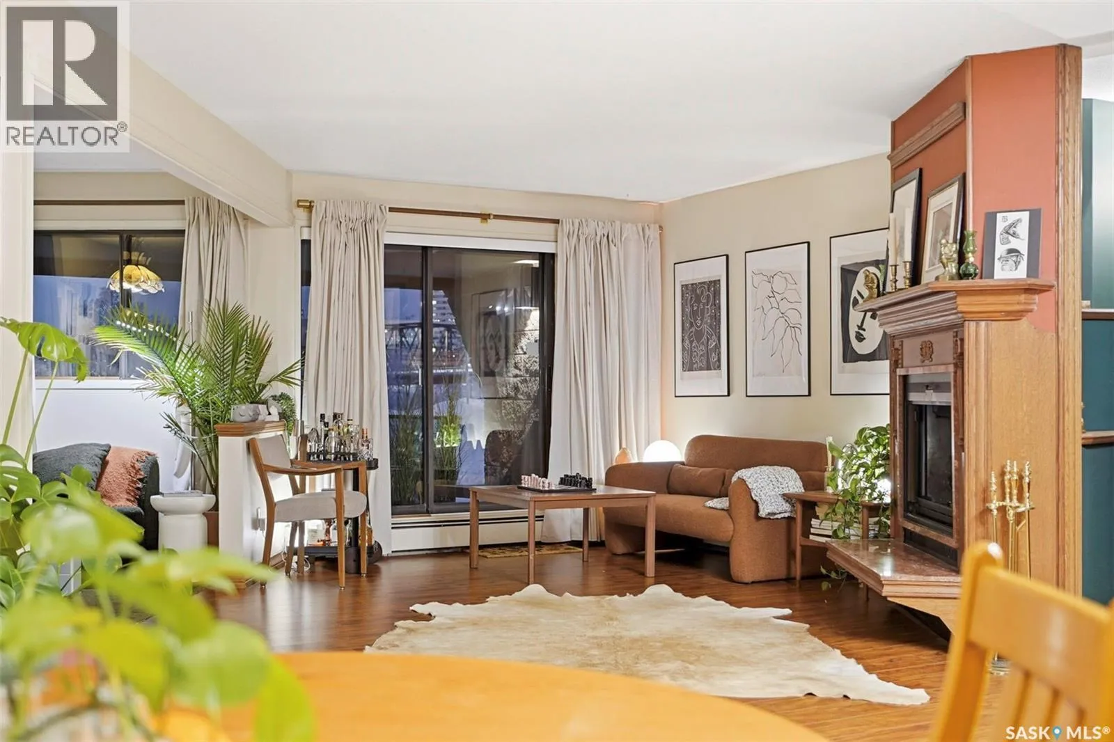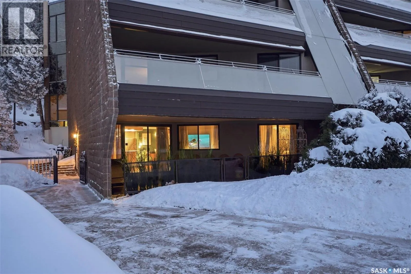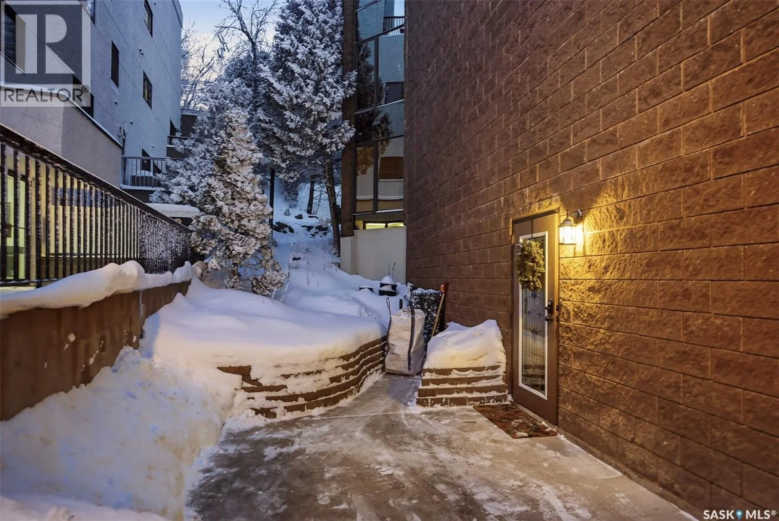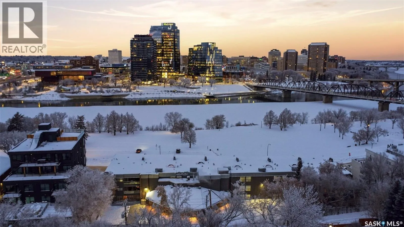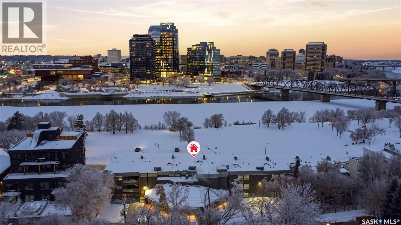 Welcome to life on prestigious Saskatchewan Crescentâone of the cityâs most sought-after addresses. This spacious 1,184 sq. ft. condo offers an ideal blend of comfort, style, and location, directly across the street from Rotary Park with beautiful green space and river views just steps from your door. This beautifully updated 1-bedroom plus den suite has been extensively renovated, offering a fresh, modern feel throughout. Enjoy brand new flooring, a fully updated kitchen complete with new appliances, refreshed bathroom, new washer and dryer, updated fixtures, and fresh paintâtruly move-in ready with nothing left to do. The thoughtfully designed layout features a bright and open living area, perfect for both relaxing and entertaining. The versatile den makes an ideal home office, guest room, or creative space. Large windows fill the home with natural light while highlighting the serene surroundings. The stylish kitchen flows seamlessly into the dining and living spaces, while the spacious primary bedroom provides a comfortable retreat. Every detail has been carefully updated to enhance both function and aesthetic. Enjoy the ease of condo living with heat and water included in your condo fees, along with access to a fantastic amenities roomâperfect for hosting gatherings or socializing with neighbors. Located just steps from Rotary Park, scenic walking paths, and minutes from downtown, this home offers the perfect balance of urban convenience and natural beauty. Donât miss this rare opportunity to own a fully renovated home in a premier locationâbook your private showing today! (id:27476)