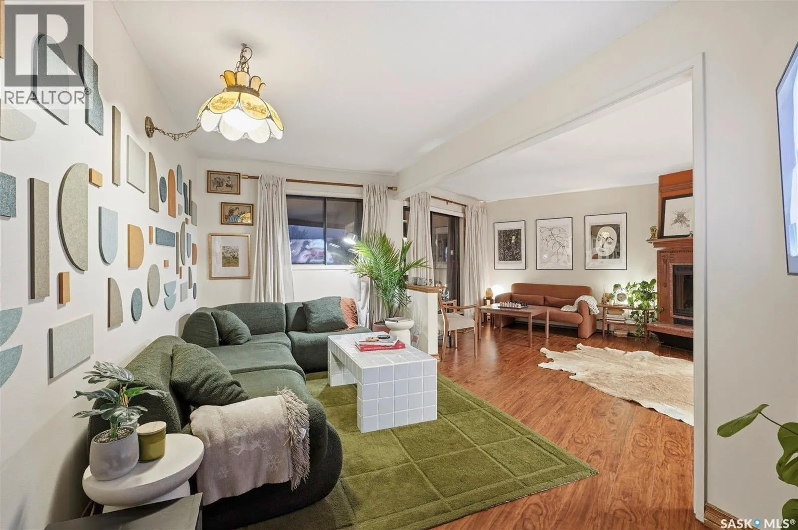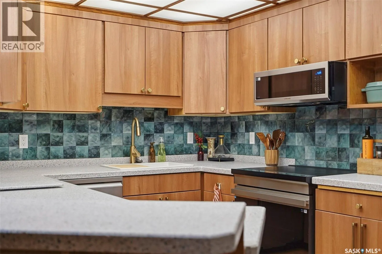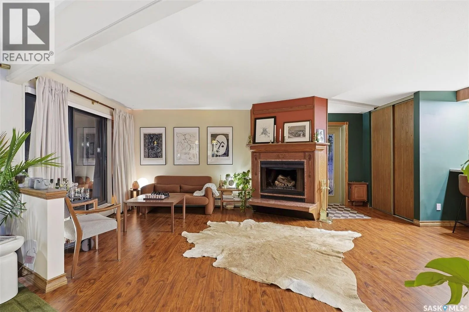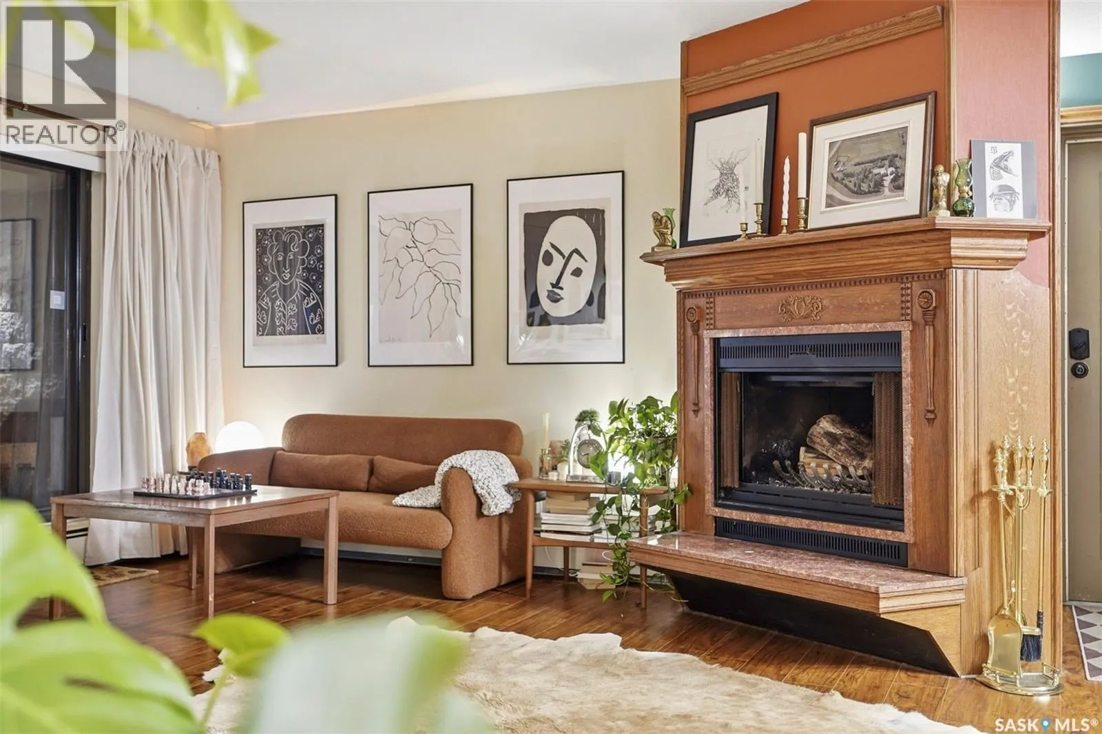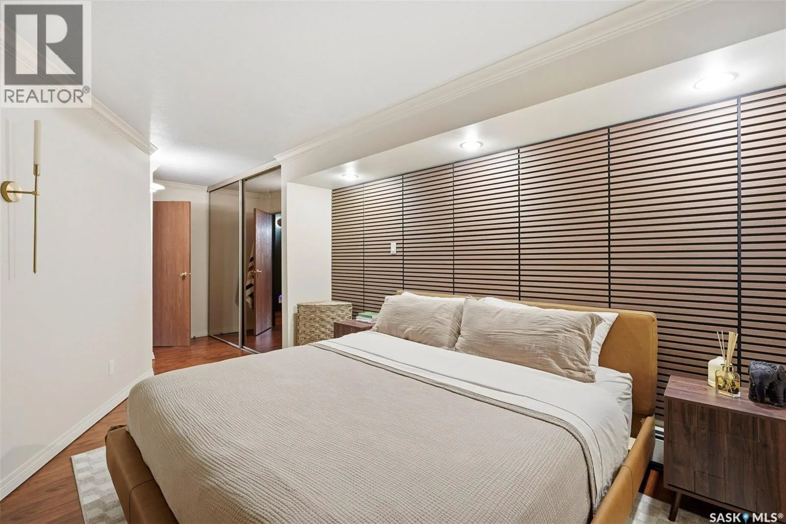 Welcome to life on prestigious Saskatchewan Crescentâone of the cityâs most sought-after addresses. This spacious 1,184 sq. ft. condo offers an ideal blend of comfort, style, and location, directly across the street from Rotary Park with beautiful green space and river views just steps from your door. This beautifully updated 1-bedroom plus den suite has been extensively renovated, offering a fresh, modern feel throughout. Enjoy brand new flooring, a fully updated kitchen complete with new appliances, refreshed bathroom, new washer and dryer, updated fixtures, and fresh paintâtruly move-in ready with nothing left to do. The thoughtfully designed layout features a bright and open living area, perfect for both relaxing and entertaining. The versatile den makes an ideal home office, guest room, or creative space. Large windows fill the home with natural light while highlighting the serene surroundings. The stylish kitchen flows seamlessly into the dining and living spaces, while the spacious primary bedroom provides a comfortable retreat. Every detail has been carefully updated to enhance both function and aesthetic. Enjoy the ease of condo living with heat and water included in your condo fees, along with access to a fantastic amenities roomâperfect for hosting gatherings or socializing with neighbors. Located just steps from Rotary Park, scenic walking paths, and minutes from downtown, this home offers the perfect balance of urban convenience and natural beauty. Donât miss this rare opportunity to own a fully renovated home in a premier locationâbook your private showing today! (id:27476)