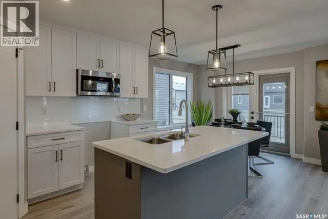 Welcome to the Linconberg â a thoughtful designed 1,472 sq/ft two-storey by Builder of the Year, Ehrenburg Homes.This family-friendly home features an open-concept main floor with laminate flooring, a modern kitchen with quartz countertops, tile backsplash, eat-up island, pantry, and ample cabinetry. Upstairs offers 3 spacious bedrooms, convenient second-floor laundry, and a primary suite with walk-in closet and ensuite. Additional features include triple-pane windows, HRV system, high-efficiency furnace, and central vacuum rough-in. Double attached garage with concrete driveway and front landscaping included. The basement is open for future development with a LEGAL SUITE OPTION. Photos are from a previous build of the same model; finishes and colours may vary. PST & GST included in purchase price with rebates back to the builder. (id:27476)
