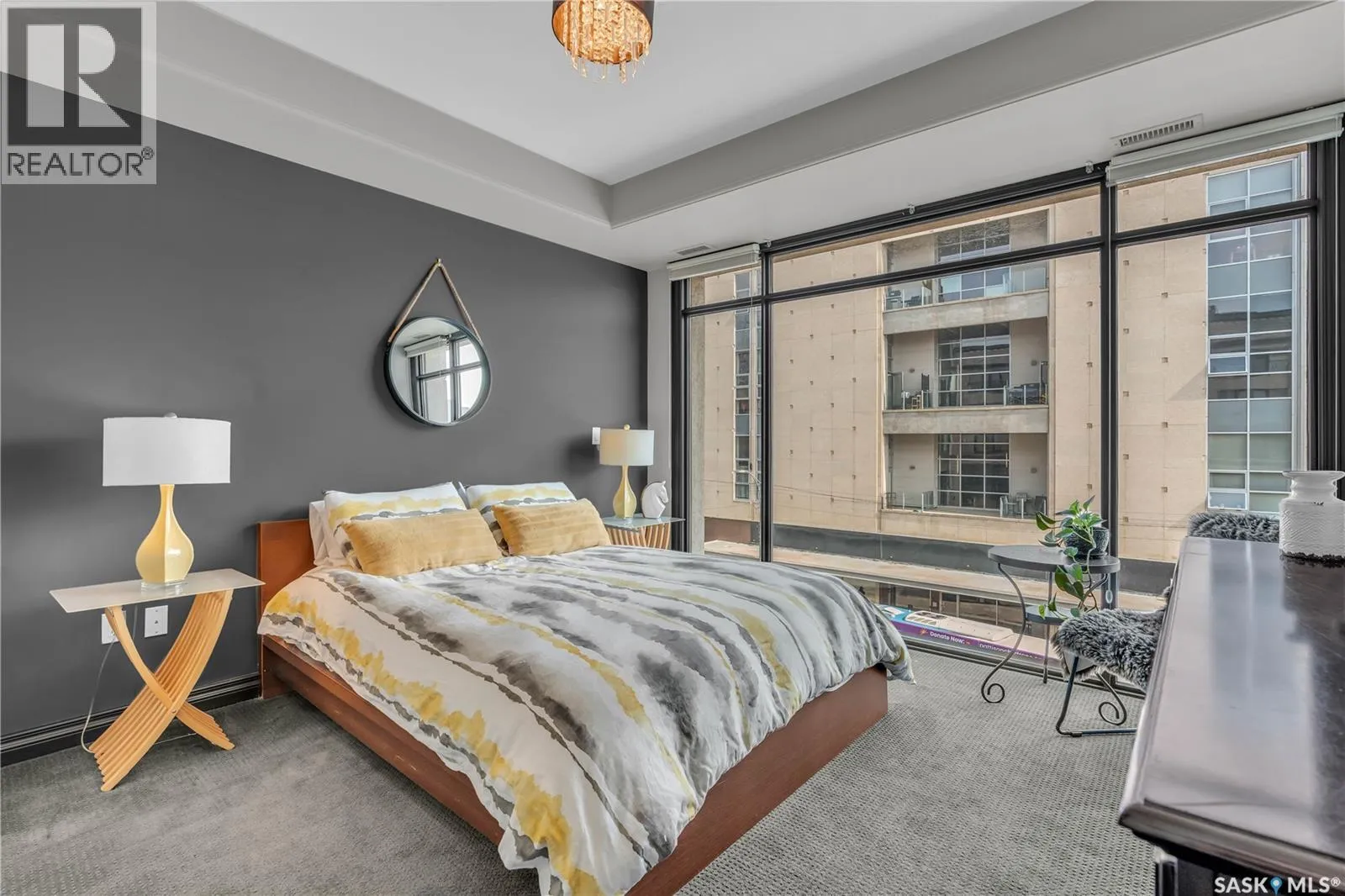 Welcome to this rare chance to own a home in one of Saskatoonâs most historic and exclusive downtown buildings. Built in 1912 and extensively renovated in recent decades, this residence beautifully combines heritage charm with modern luxury. This 1-bedroom, 1-bath apartment is truly turn-key. The interior boasts floor-to-ceiling windows throughout, flooding the space with natural light and offering a seamless connection to the stunning city skyline from your living room. Inside, enjoy high-end fixtures, premium kitchen cabinetry, and a thoughtfully designed open layout perfect for both relaxing and entertaining. Building Features: ⢠Heated underground parking for year-round comfort ⢠Large fenced storage area for secure additional space ⢠Rooftop common patio with panoramic city views â ideal for gatherings or quiet evenings Why This Location is Exceptional: ⢠Situated in the centre of downtown Saskatoon, steps from dining, shopping, and nightlife ⢠Walking distance to the Meewasin River Valley trails for outdoor recreation ⢠Close to Kinsmen Park, City Hospital, and the University of Saskatchewan ⢠Convenient access to public transit for quick commutes anywhere in the city With its luxurious finishes, floor-to-ceiling windows, and unbeatable location, this home offers the best in urban living. Whether you're seeking a sophisticated residence or a fully furnished investment property, 157 2nd Avenue N delivers timeless elegance and modern convenience. Check out the virtual tour! (id:27476)