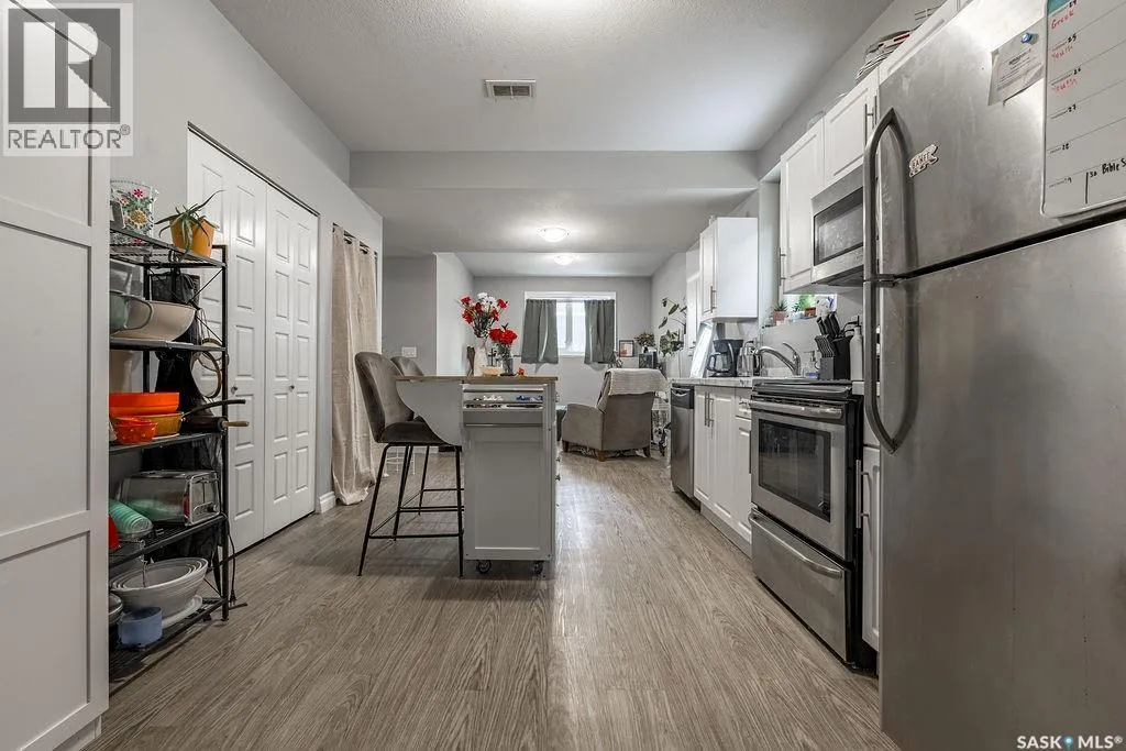 Welcome to 602 Kloppenburg Terrace in the highly sought-after neighbourhood of Evergreen â a stunning modified bi-level offering exceptional quality, thoughtful design, and outstanding income potential with a fully developed 2-bedroom legal suite. Inside youâll find high-end finishings throughout the main living space. The bright, open-concept main floor features a large living room that has an electric fireplace and stone hearth. The beautiful kitchen spares no detail with a built-in oven, gas cooktop, built-in microwave, custom white cabinetry, quartz countertops, and a spacious island with double sinks and eat-up seating â perfect for entertaining or busy family mornings. The main floor includes two generous bedrooms and a stylish 4-piece bathroom. Upstairs, retreat to your private primary suite complete with a walk-in closet and an impressive 5-piece ensuite featuring two sinks, a corner walk-in shower, jacuzzi soaker tub, and tile flooring. The basement offers incredible flexibility offering an extra bedroom that would also make a great family room, and the laundry area. The home also features a built-in sound system for your entertaining needs. With its own side entrance youâll find a fully permitted 2-bedroom legal suite. The suite boasts a modern kitchen, two bedrooms, a 4-piece bathroom, and its own laundry â perfect for generating revenue or accommodating extended family. Step outside to enjoy the covered deck and fully fenced backyard, complete with a cozy firepit area and a gate allowing for additional vehicle parking. A double attached garage adds even more convenience. Amazing quality, smart layout, and strong income potential â this home truly checks all the boxes. (id:27476)