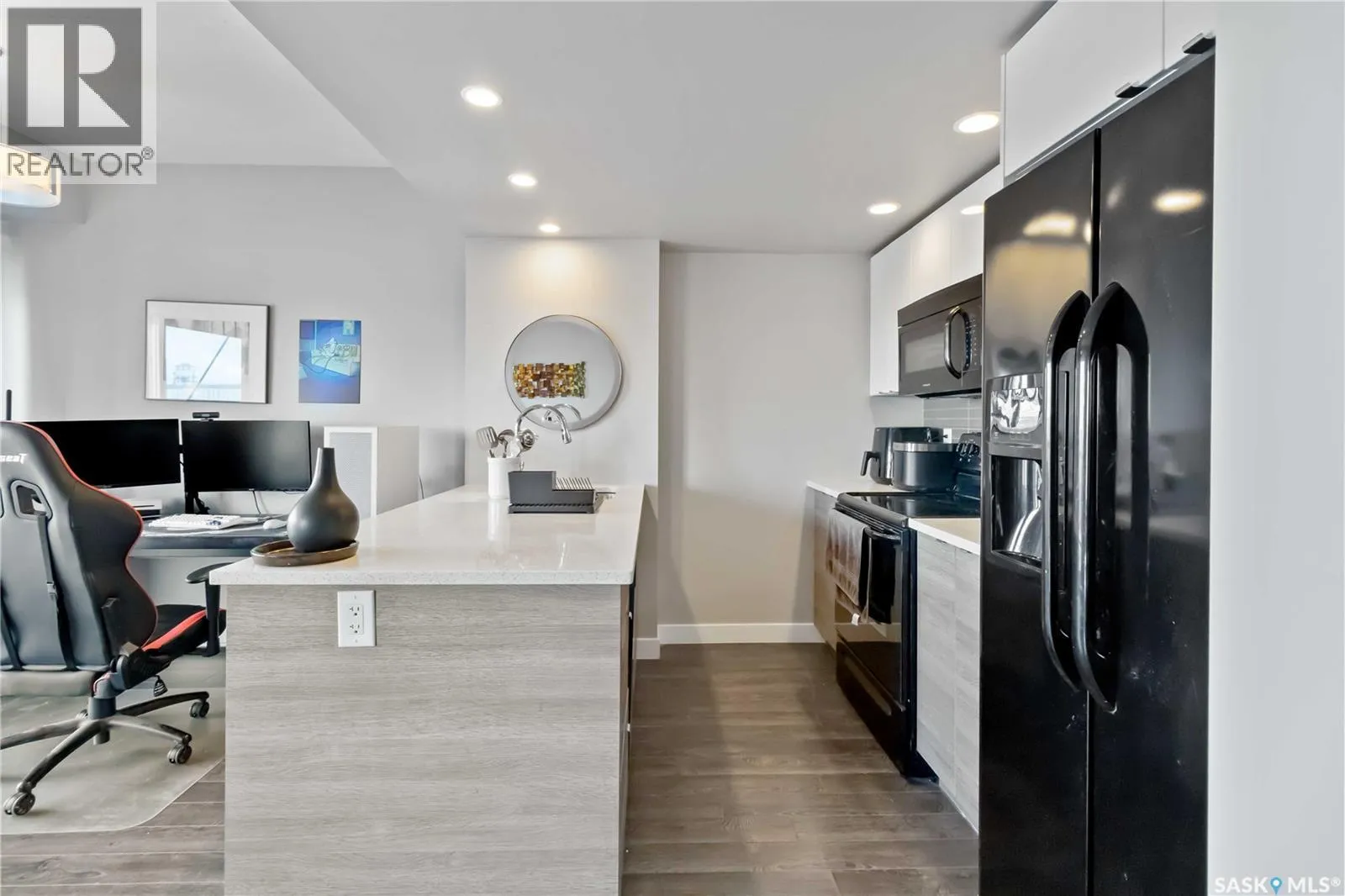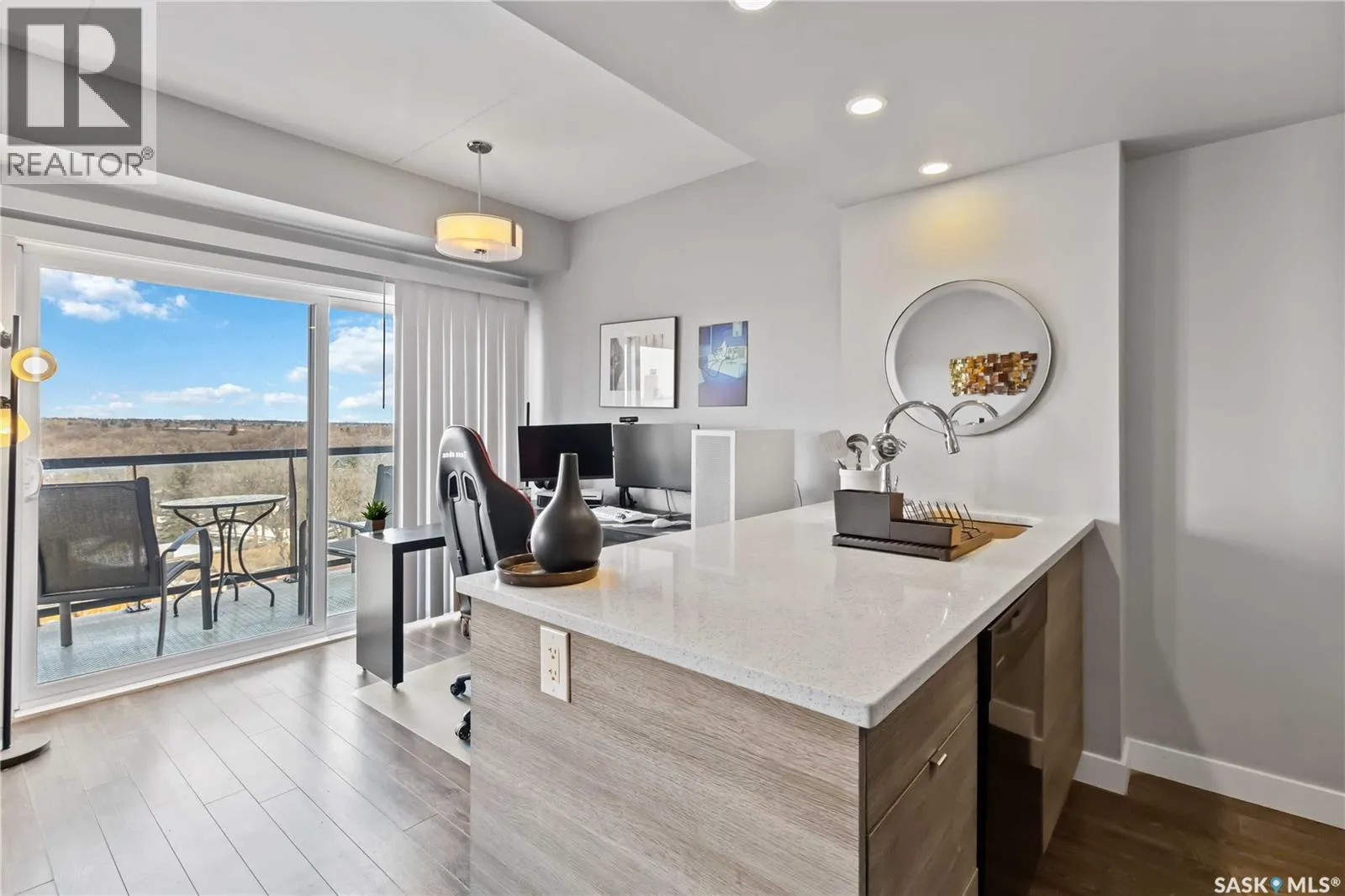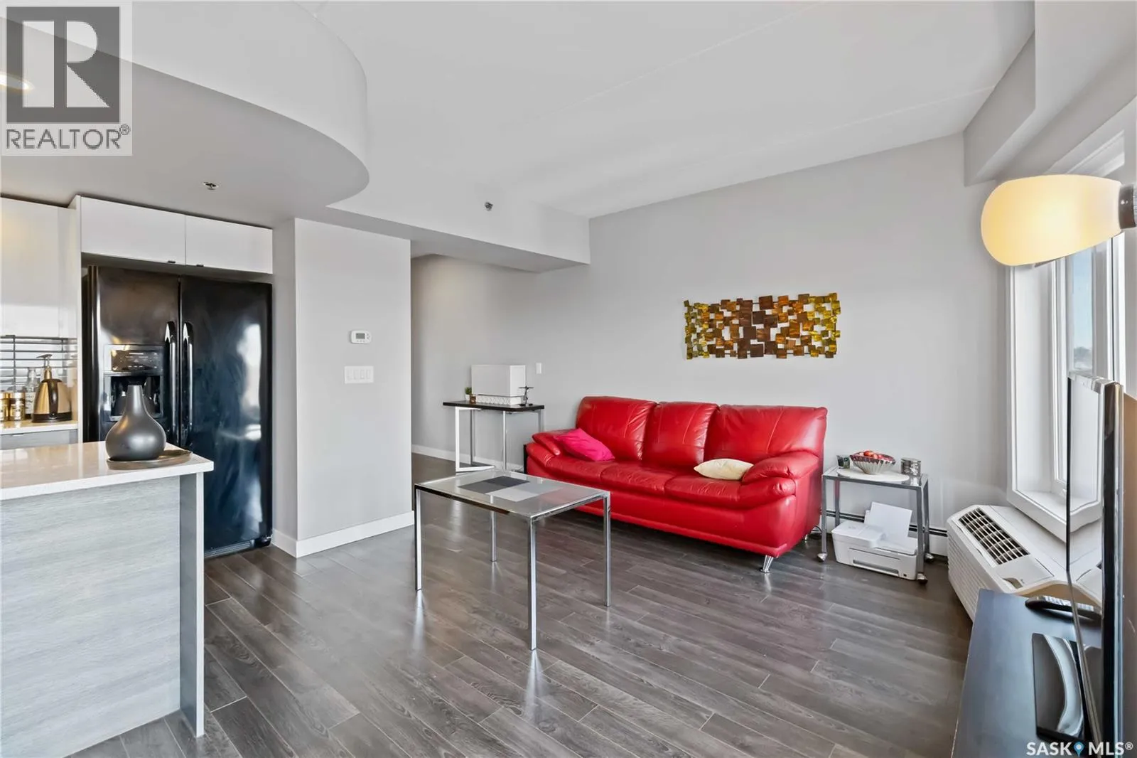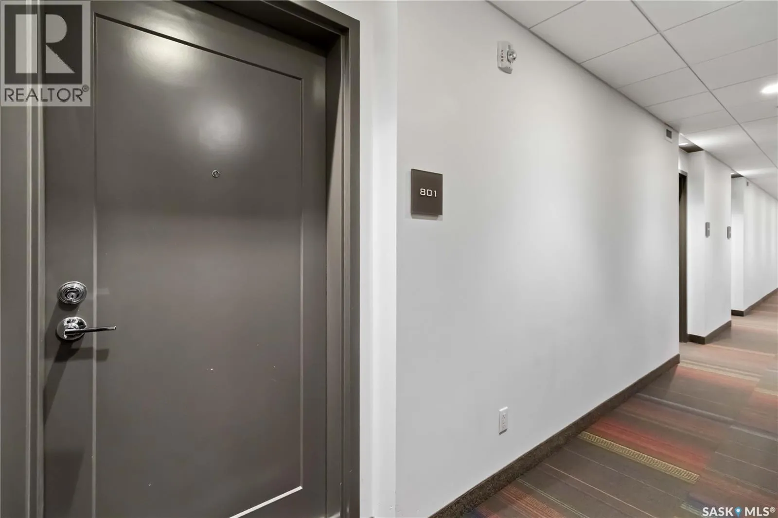 Parcel #203237085 HIGH FLOOR CITY VIEWS, CITY LIVING, CORNER UNIT! Welcome to 550 4th Ave #801 a 601 sqft apartment located in downtown Saskatoon - originally built by North Prarie Developments. This primely located apartment features one bedroom and one bathroom. This unit features natural views of Saskatoon while also being located on the 8th floor with no neighbours located above. The living room and kitchen layout are hard to come by in this building with a spacious island and corner kitchen layout with the kitchen featuring quartz countertops, tile backsplash, and high-end finishes throughout. This unit benefits from plenty of natural sunlight during the day and beautiful sunset views. Featuring one underground parking space, park your car worry-free in downtown Saskatoon! Given its proximity to Royal University Hospital, Saskatoon City Hospital, the University of Saskatchewan, and Jim Pattison's Children's Hospital, this location is ideal for nearby commuters. In the summer time, take advantage of your proximity to Meewasin Trails, Condo Amenities like a rooftop BBQ space, and your proximity to local coffee shops and restaurants! This building was constructed using concrete - while also featuring modern design. Furniture can be negotiated! This unit is extremely unique featuring sunlight, being a corner unit, high floor, with a peninsula island, and spectacular location! Book your showing today! (id:27476)