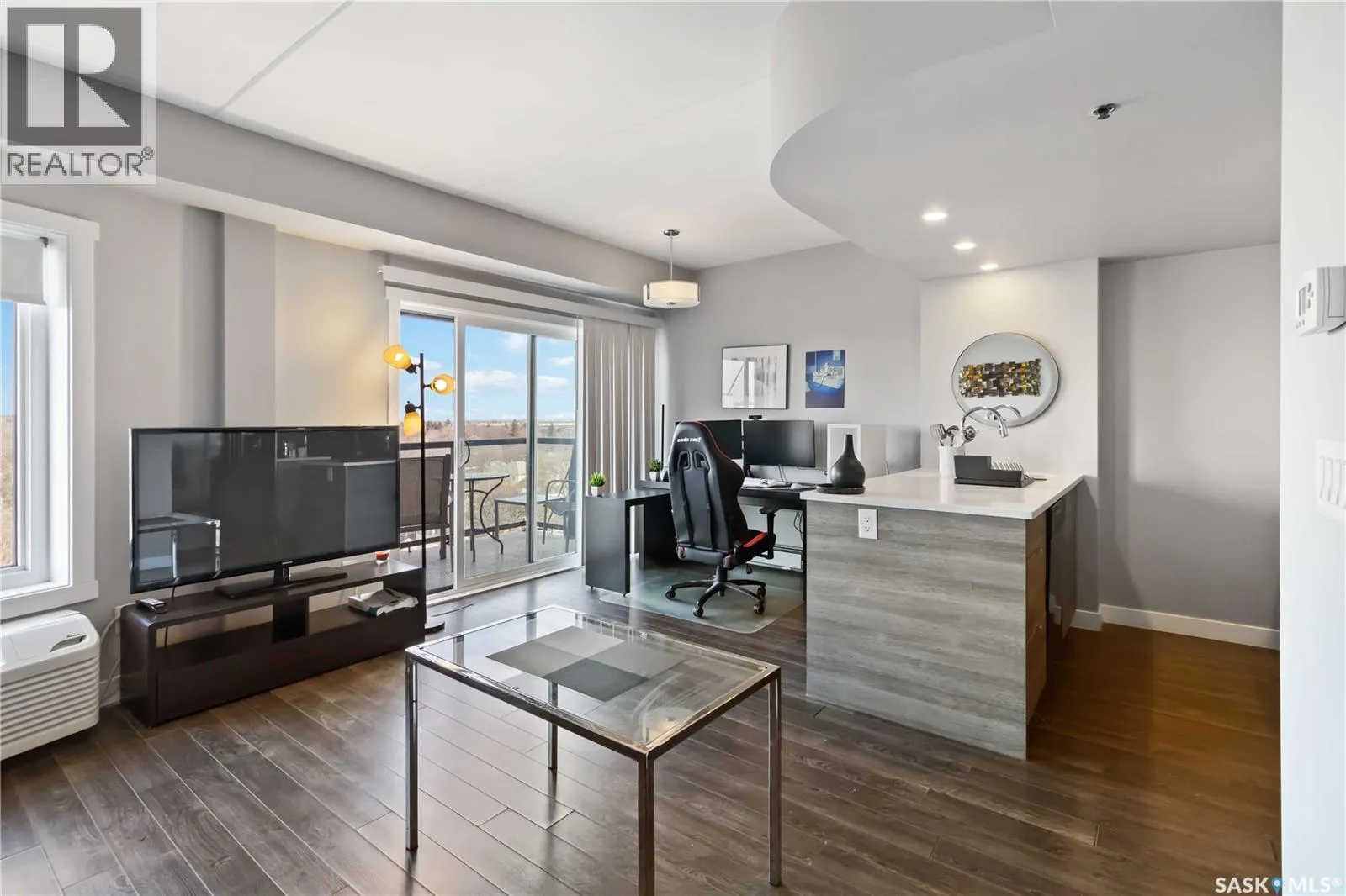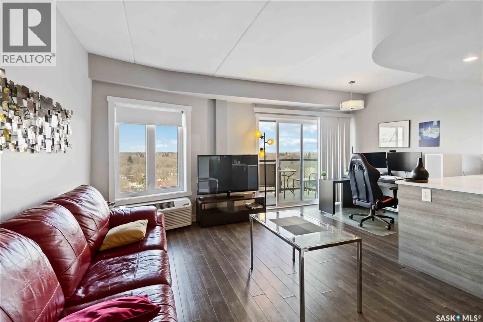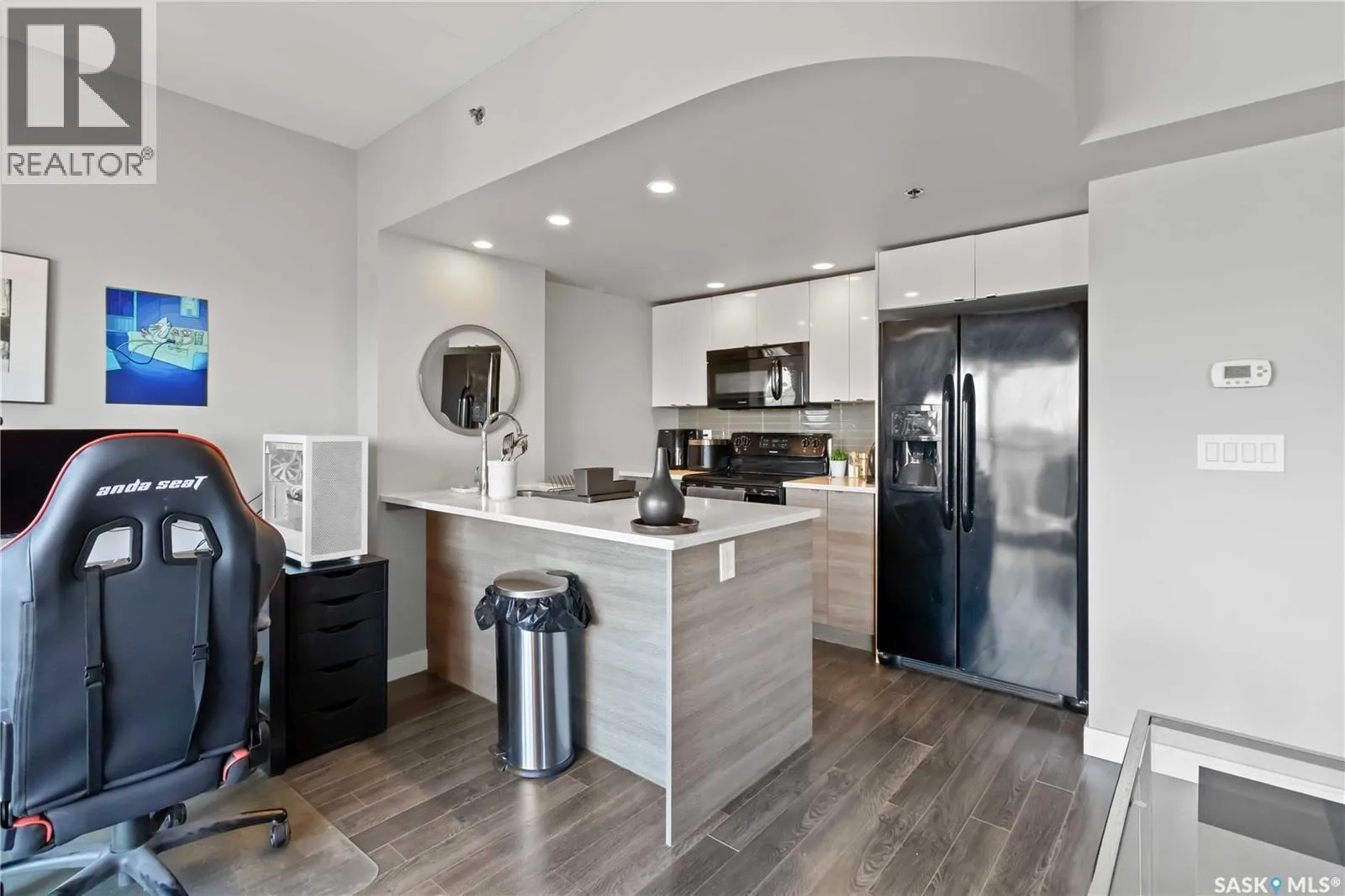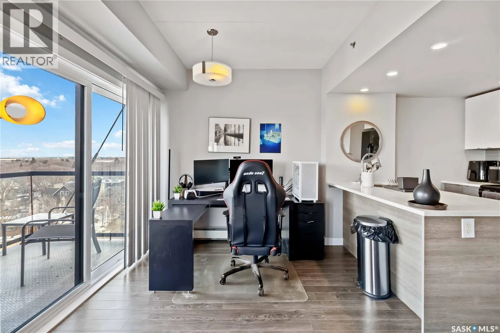 Parcel #203237085 HIGH FLOOR CITY VIEWS, CITY LIVING, CORNER UNIT! Welcome to 550 4th Ave #801 a 601 sqft apartment located in downtown Saskatoon - originally built by North Prarie Developments. This primely located apartment features one bedroom and one bathroom. This unit features natural views of Saskatoon while also being located on the 8th floor with no neighbours located above. The living room and kitchen layout are hard to come by in this building with a spacious island and corner kitchen layout with the kitchen featuring quartz countertops, tile backsplash, and high-end finishes throughout. This unit benefits from plenty of natural sunlight during the day and beautiful sunset views. Featuring one underground parking space, park your car worry-free in downtown Saskatoon! Given its proximity to Royal University Hospital, Saskatoon City Hospital, the University of Saskatchewan, and Jim Pattison's Children's Hospital, this location is ideal for nearby commuters. In the summer time, take advantage of your proximity to Meewasin Trails, Condo Amenities like a rooftop BBQ space, and your proximity to local coffee shops and restaurants! This building was constructed using concrete - while also featuring modern design. Furniture can be negotiated! This unit is extremely unique featuring sunlight, being a corner unit, high floor, with a peninsula island, and spectacular location! Book your showing today! (id:27476)