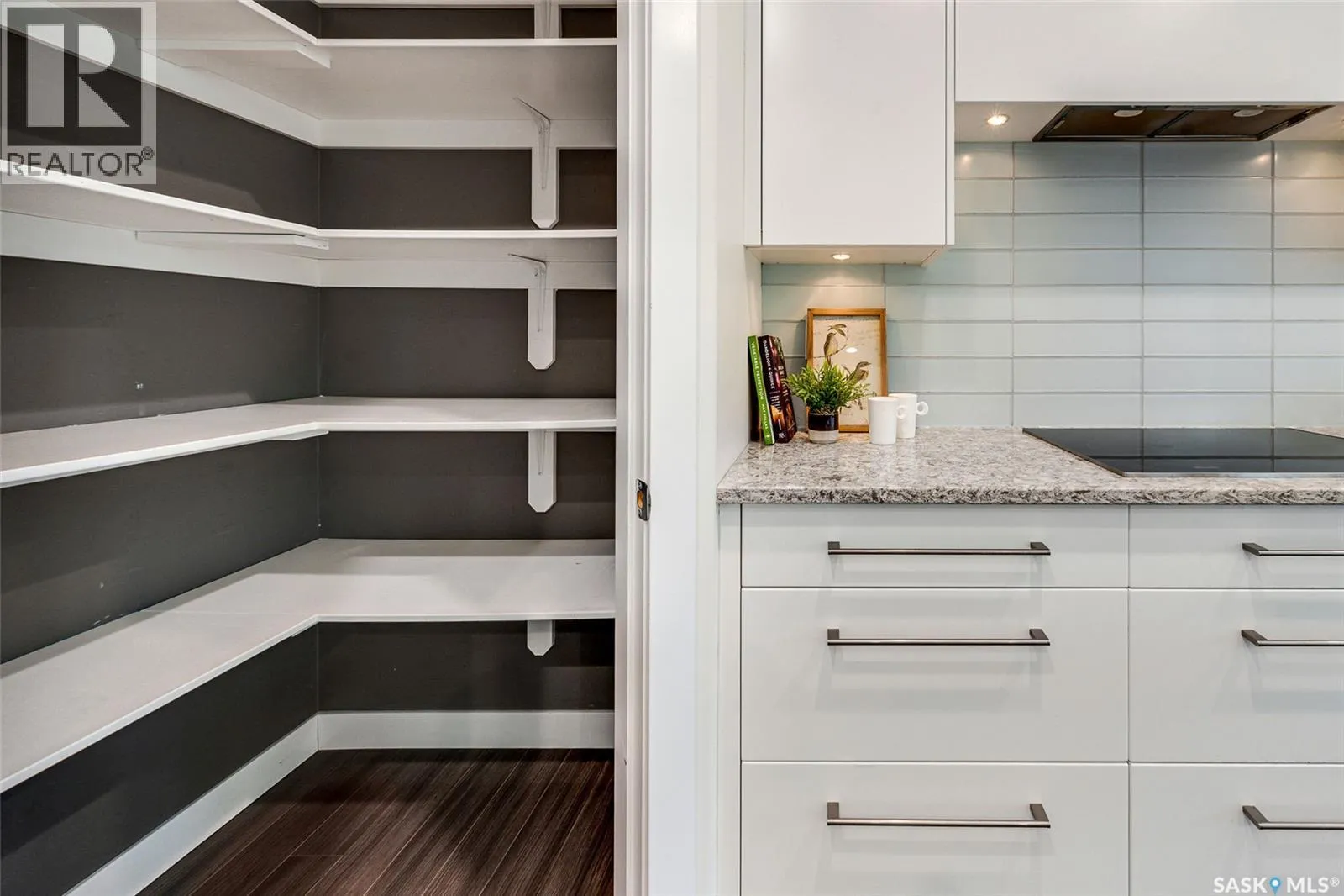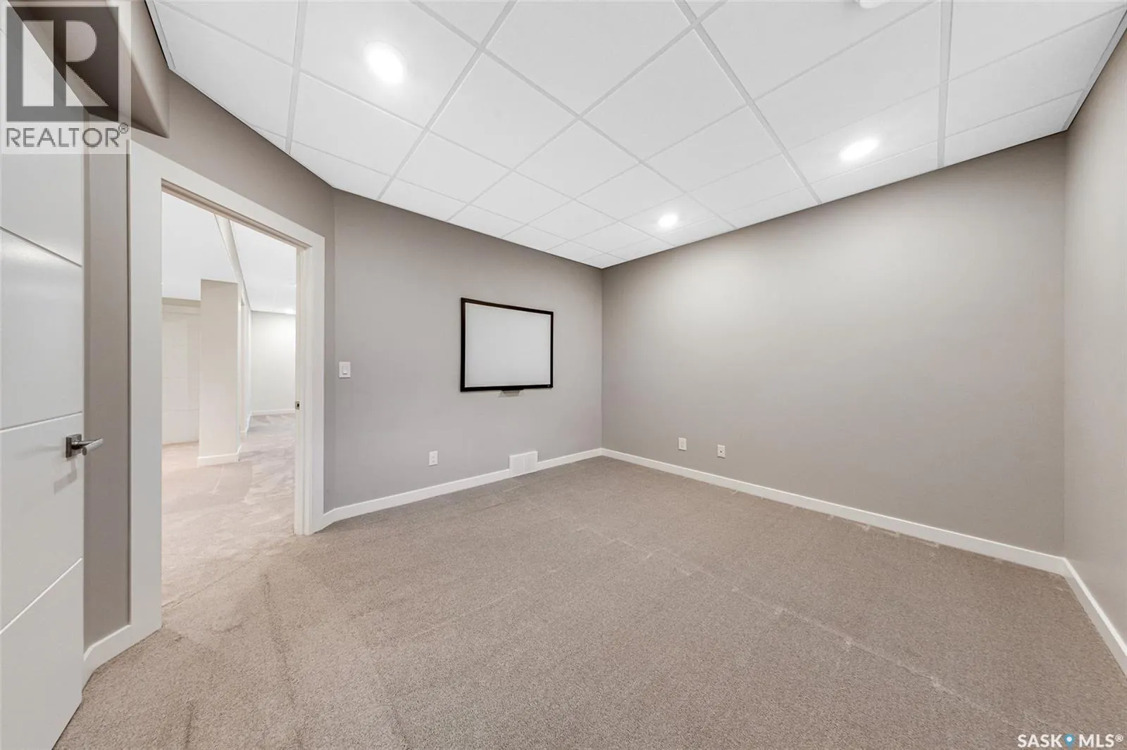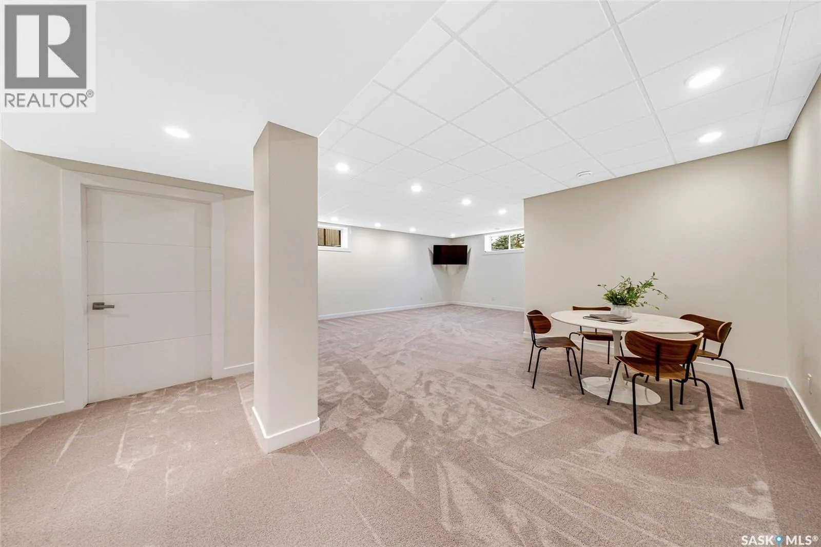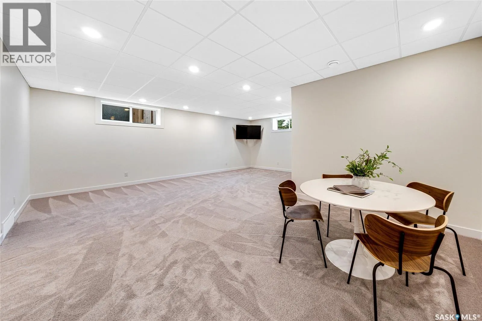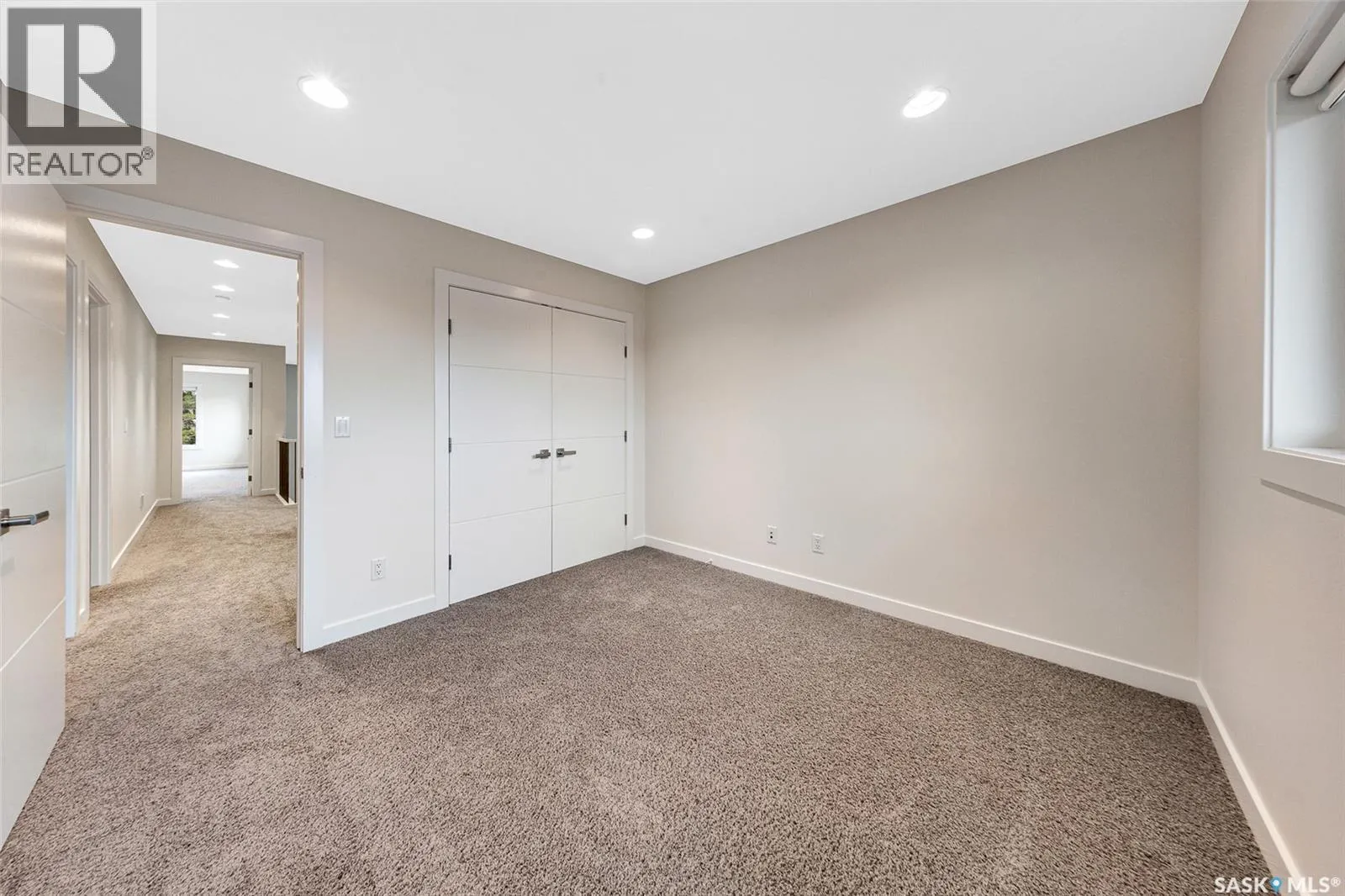 Tucked away on one of Evergreenâs most desirable crescents, this exceptional two-storey home blends luxury, function, and timeless elegance on a massive pie-shaped lot backing the walking trails lined with mature Scots pine trees. From the striking curb appeal to the timeless finishes and extensive list of custom upgrades, every detail has been thoughtfully designed. Inside, a grand foyer leads into a living room with soaring ceilings and expansive windows that fill the space with natural light. At the heart of the home, the gourmet kitchen showcases Redl custom cabinetry, built-in Miele dual ovens with induction cooktop, quartz countertops, tile backsplash, and a large island with additional seating, seamlessly connected to the dining area overlooking the private backyard. The main floor also offers a dedicated office, a 2-piece bath, and a mudroom with direct access to the oversized heated staggered bay garage ( 28â x 22â/26â) with 220v plug and hot/cold water taps. Upstairs, four spacious bedrooms await, including a luxurious primary suite with a custom walk-in closet and a spa-inspired ensuite featuring a jetted tub and steam showerâthe perfect retreat after a long day. A full bathroom and convenient second-floor laundry complete this level. The fully developed basement adds versatility with a large family room and games area, a fifth bedroom, 4-piece bath, storage, mechanical room, and a future wet bar nook. Notable extras include central AC, HRV, HEPA air filter, âhide-a-hoseâ central vac, Control4 audio with built-in speakers throughout, and more. Outside, the expansive backyard offers endless potential for entertaining, a future pool, or simply enjoying the serenity of your private outdoor escape. Ideally situated near the Forestry Farm and zoo, an array of amenities, school bus pick up, elementary and high schools, this rare property offers the perfect balance of comfort and lifestyle in one of Saskatoonâs most coveted neighbourhoods. (id:27476)