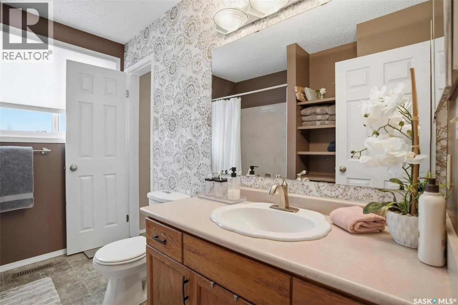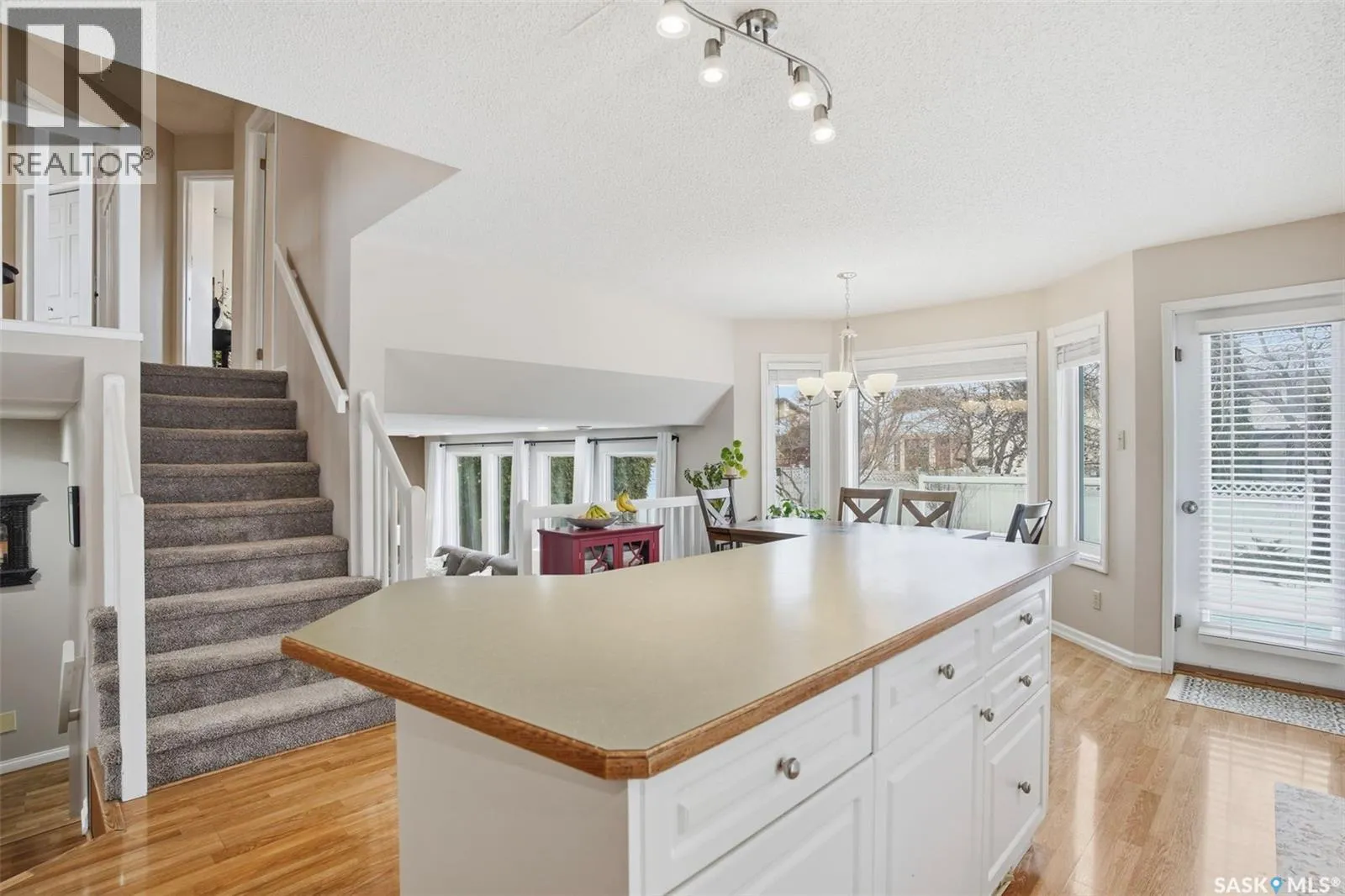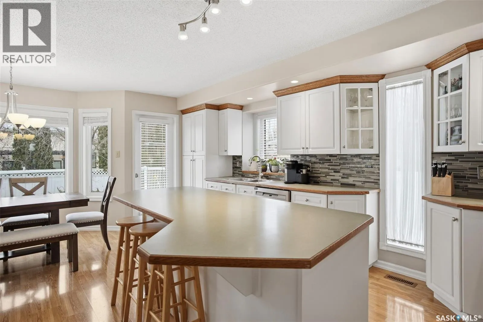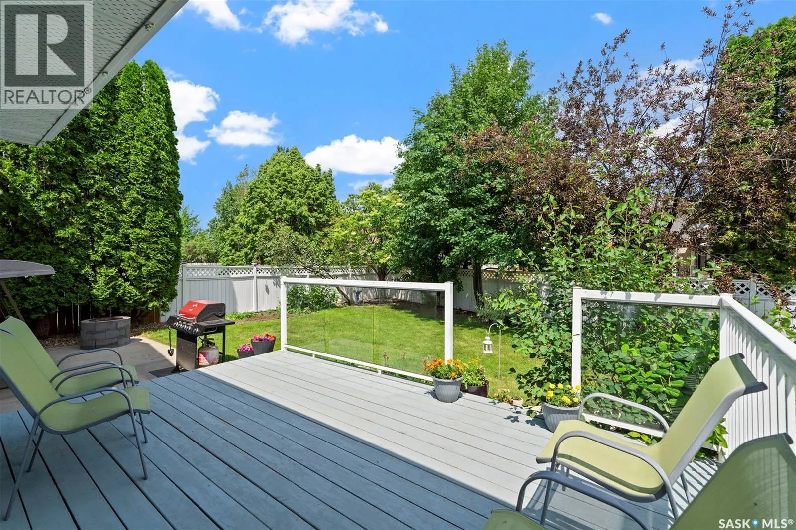 Welcome to 438 Cowley Place, a fantastic family home in a beautiful inner cul-de-sac setting within Erindale. This picturesque and family-friendly location is just a 5min walk of neighbourhood schools, parks and the lake - amenities that make the neighbourhood so deeply sought after. The 4-bedroom/2-bathroom home is filled with natural light and offers a spacious floor plan over 4 levels. Comfortable living spaces, a generous kitchen with large peninsula, open lines throughout the home for entertaining, and phenomenal window wall designs on the main and 3rd levels are each highlighting features of the property. Stunning 5ft windows offer east views of the rear yard and make for especially enjoyable spaces in the formal dining area and lower family room to gather, relax or unwind any time of day. 3 bedrooms on the 2nd level feature updated carpet floor coverings, windows, lighting and walk-in closet amenities in the primary bedroom. The 3rd level features a gorgeous âstep-downâ family room with pot lighting, upgraded floor coverings & picture windows, and a natural gas fireplace, a 4th bedroom, 3-pc bathroom, and direct entry to the double (insulated) garage. The 4th level offers good home storage and laundry area, and the opportunity to shape a 5th bedroom, den/studio space, and/or a 3rd family area to suit. Take pleasure in the professionally landscaped yard, with a timber deck, lower patio, fire pit area, gardens, and a gorgeous array of shade and ornamental tree varieties that provide a lovely greenery and sense of privacy to the yard-scape. Equipped with central A/C, other notable home features and updates include those to shingles, underground sprinklers, overhead garage door, and window coverings throughout. Located within a 15min bicycle ride of Cliff Wright Public Library, the Sasktel Soccer Center, St Joseph & Centennial high schools, University Heights eateries, coffee shops and shopping, and Forest Park soccer pitches, tennis courts, and playground. (id:27476)