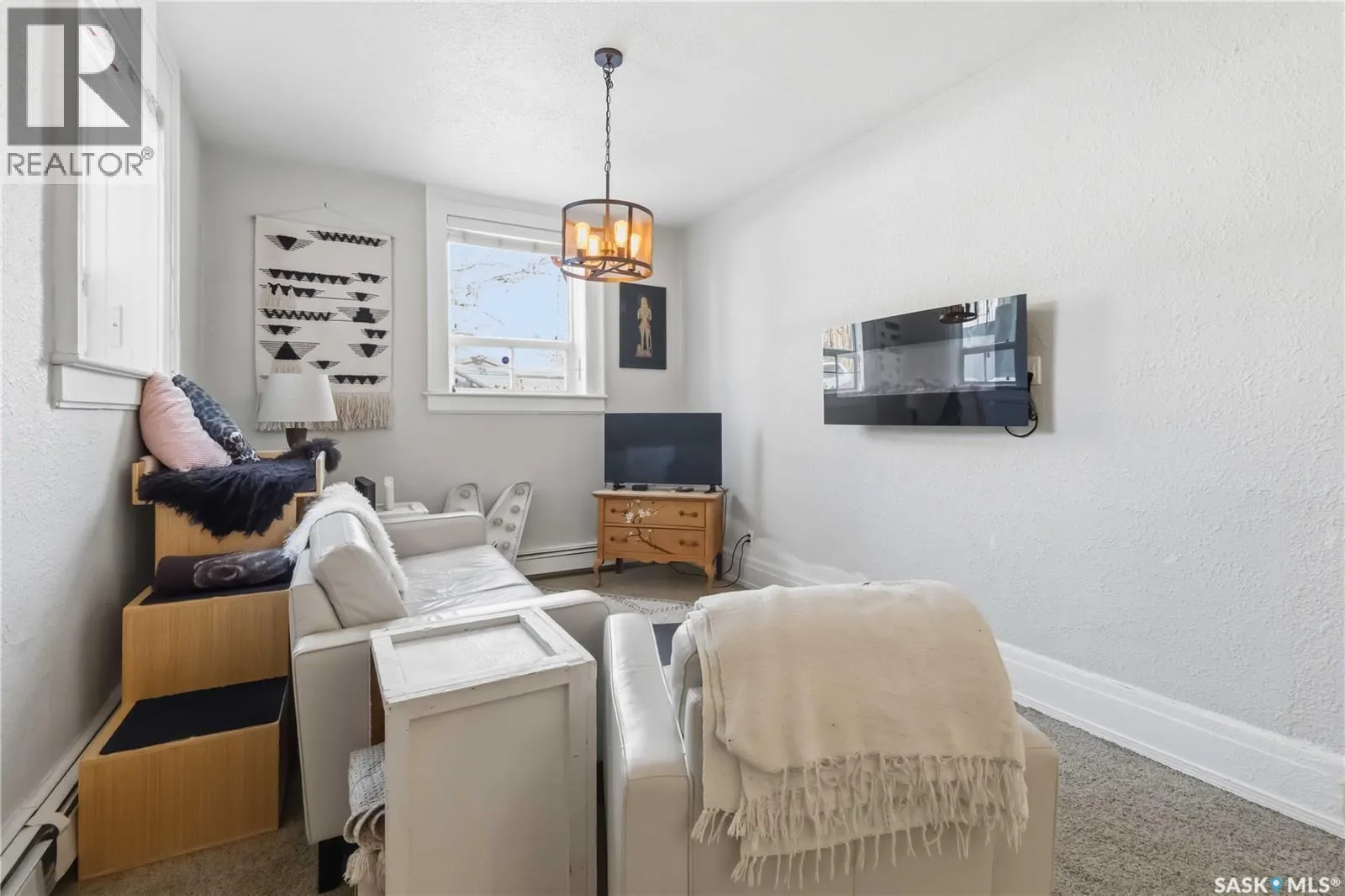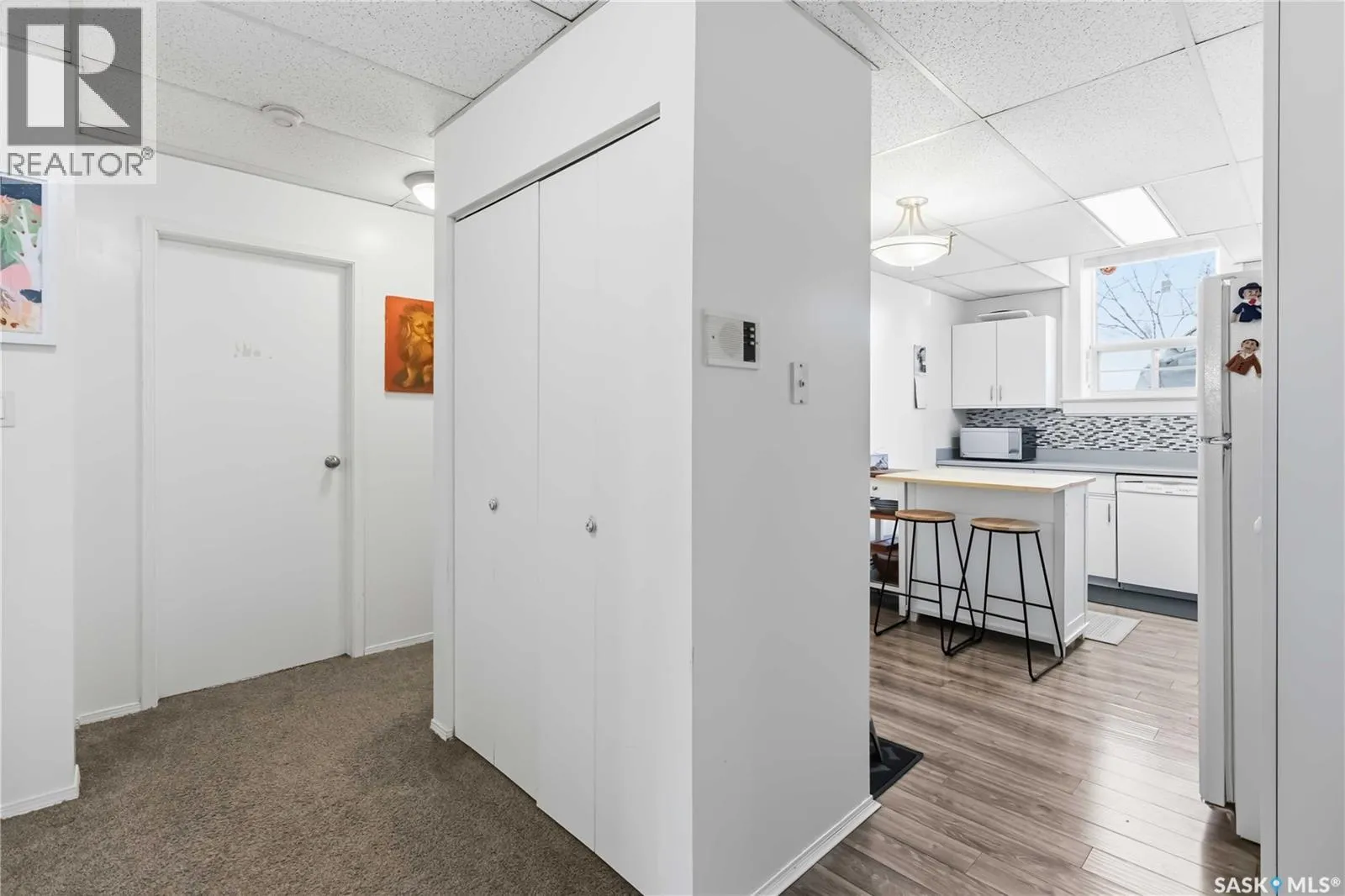 Welcome to 103-609 King Street, a stunning condo in a designated heritage building just steps from the river and City Hospital. This bright corner unit features large windows, 10-foot ceilings, and an open concept layout. The condo features two spacious bedrooms, an updated kitchen with plenty of cabinetry, insuite laundry as well as an updated 4 piece bathroom. Recent upgrades include new flooring, lighting, paint, and blinds. An electrified parking stall, bike storage, and a separate storage room right next to the unit are included. The building is quiet, well-maintained, and pet-friendly with board approval. Condo fees cover common insurance, heat, water, reserve fund contributions, and exterior maintenance. Donât miss your chance to own this charming home in a historic setting. (id:27476)
