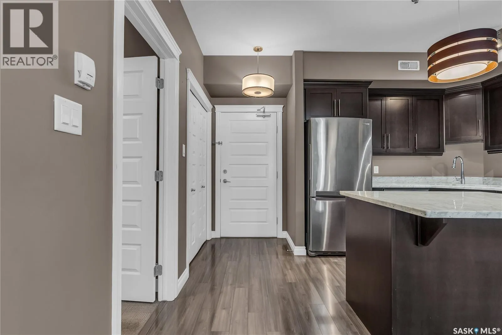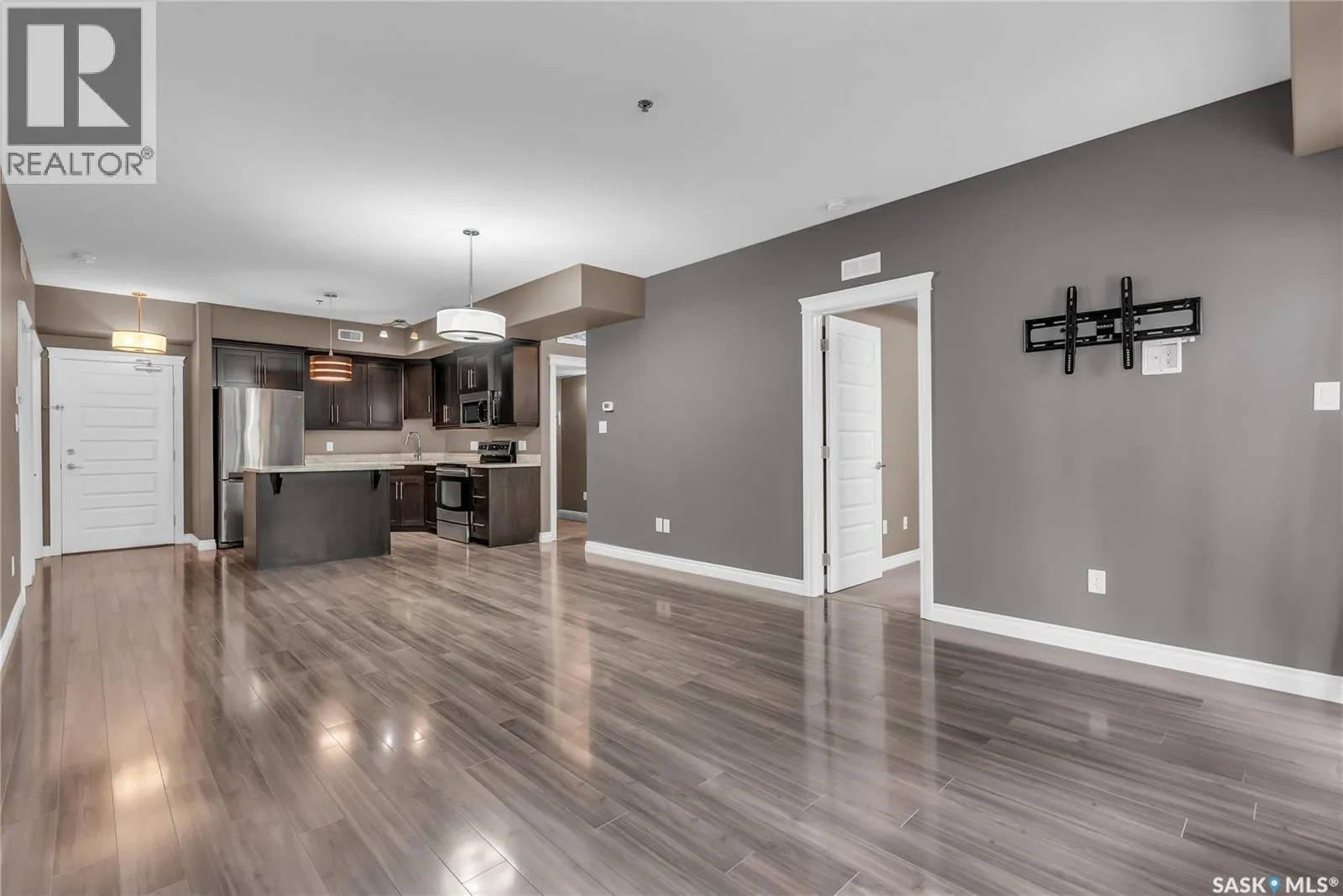 Remarkable main floor 2 bedroom and 2 bathroom condo with 1 underground parking stall in University Heights. Original owners never lived in, been only used as a rental for family. This unit has never had any pets or been smoked in. Modern open floor plan with kitchen, dining and living room area. Spacious kitchen with all appliances, maple cabinetry, granite countertops, large island and undermount sink. Huge primary bedroom with 2 sizable closets and 3pce en-suite. Additional bedroom and 4pce bathroom on opposite side of living room. In-sundry room with storage. Huge, covered balcony includes natural gas bbq hook-up. There is 1 titled underground parking spot #60 and storage room in Row C 111. The building has amenities room, amazing car wash, wood shop and fitness room. Bonus building 423 beside has a bar, pool table area that all residence can access. Close to U of S, schools, shopping, restaurants, medical and many amenities in walking distance. City assessment has 947sqft and original builder docs has 1,000sqft. This one is waiting for you to call home! (id:27476)