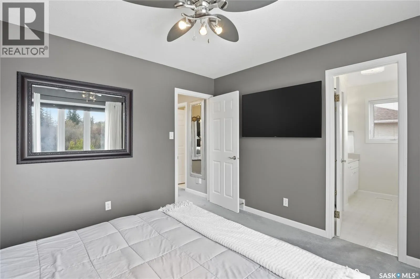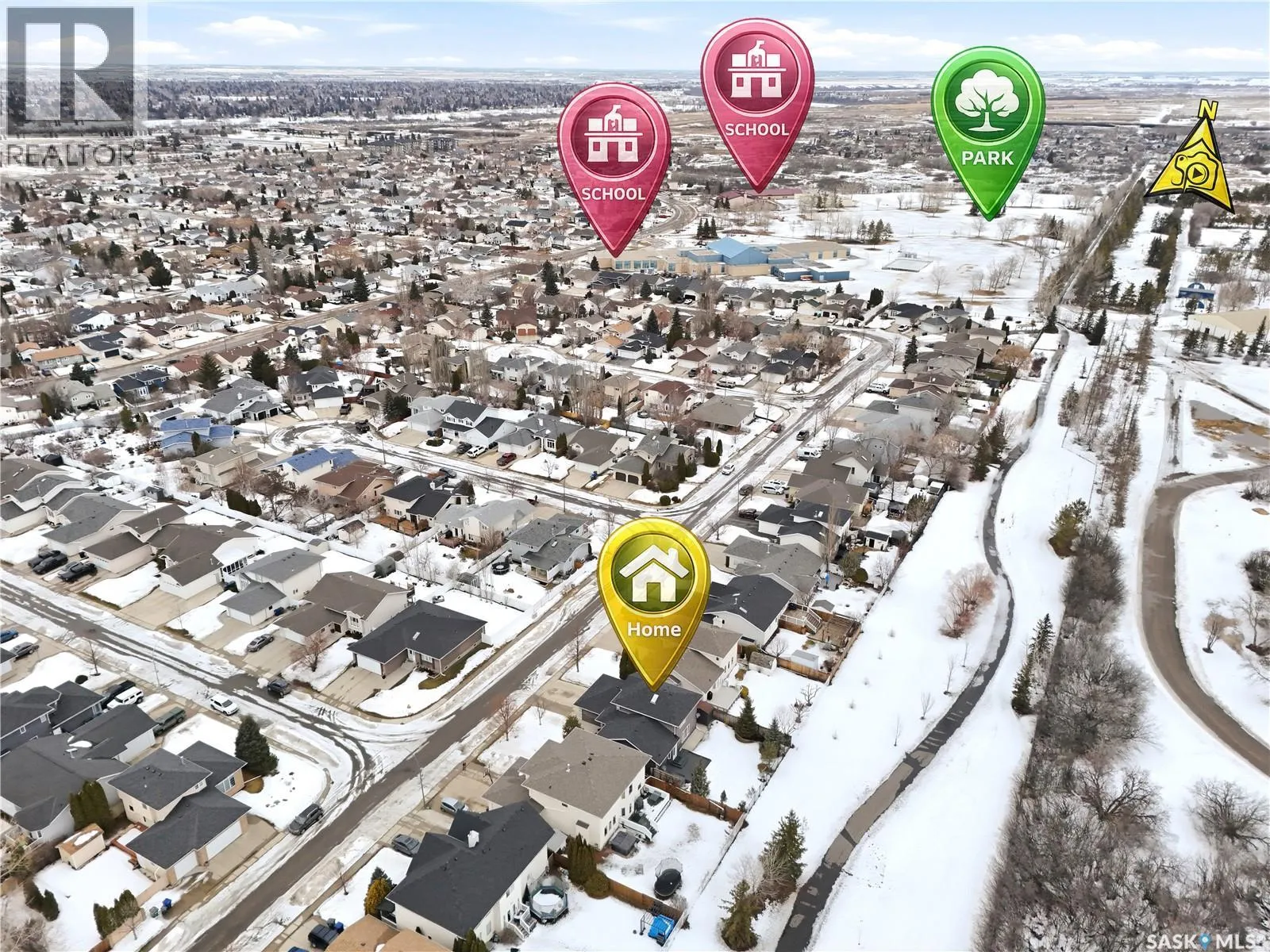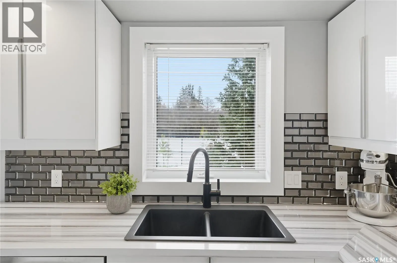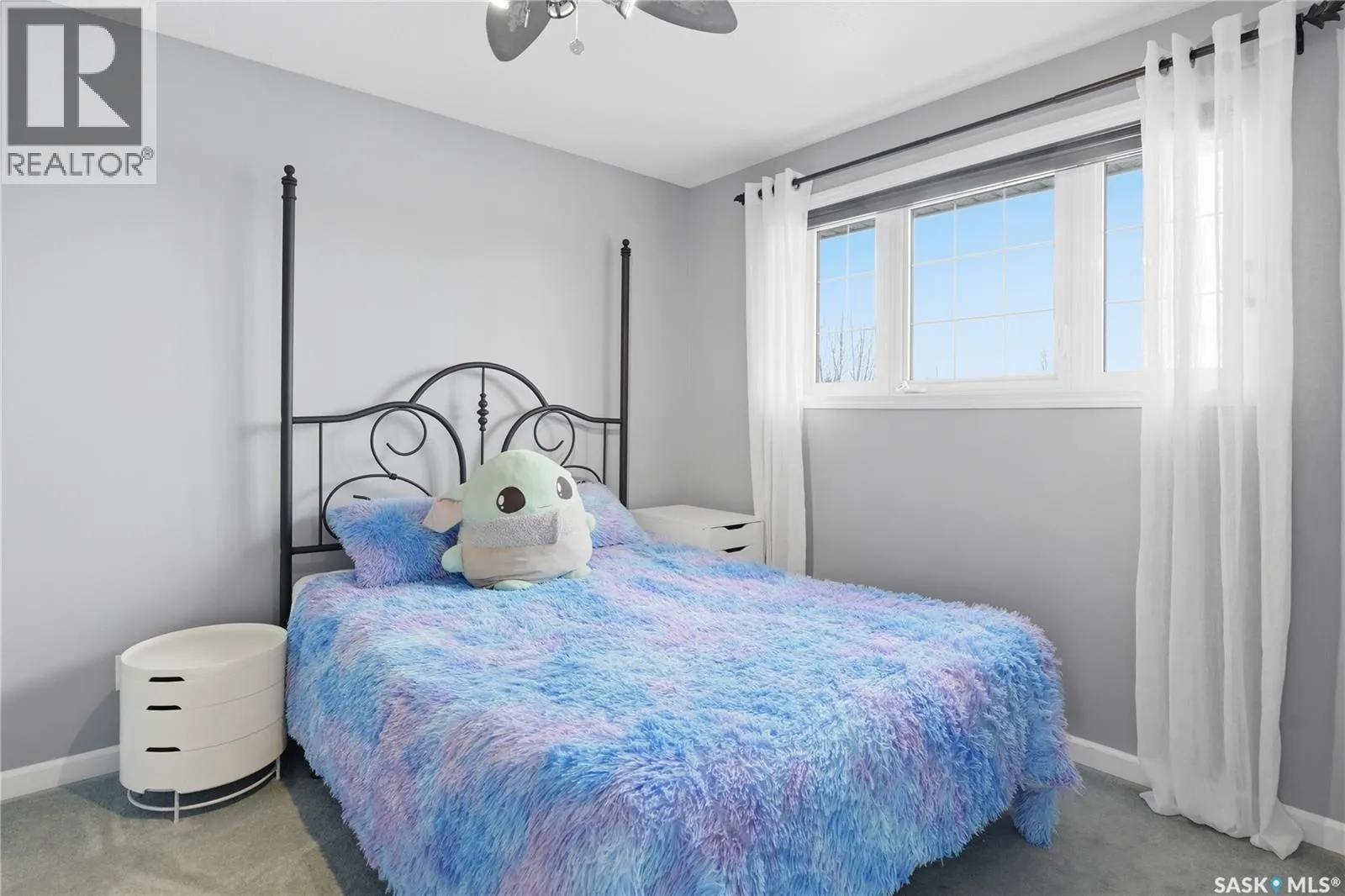 At dawn, the sky above Silverspring turns shades of pink and amber; say good morning to daily sunrises from your future home! (you might need a dedicated album in your photo folder). They say location is everything, and this one is the ultimate forever spot. An arboreal backdrop sits behind this two-storey home. Inside, wide open Euro-inspried living built with the chef and entertainer in mind. The kitchen has really earned its title as the heart of the home; with an over abundance of high-gloss white cabinetry, vaulted ceilings, a not-so-subtle island, tile backsplash, stainless appliances, and a dedicated beverage bar. The living room with decorative built-inâs, gas fireplace, and rear windows that frame the treeline in every season. Main floor laundry and one bedroom tucked away near the three-piece bathroom; perfect for that home office or aging parent. Upstairs, the primary bedroom brings infinite treetop views. The ensuite offers a jetted soaker tub, and a walk-in closet that feels like a boutique. Two more bedrooms and a full bathroom round out the second floor. The basement includes a spacious family room, tiled fitness/games area, an oversized guest bedroom, tranquil three-piece bathroom, and impressive storage. The panoramic yard with mature landscaping, large deck, hot tub and privacy screens; made for evenings with a glass in hand. Beyond the fence, the interconnected Forestry Farm trails wind through the treed landscape. Birdsong and fragrant blooms fill the air. In winter, when the trees go bare, the glow of the Enchanted Forest illuminates the snowy backdrop. 5 bedrooms, 4 bathrooms, heated double attached garage, 1,932 SF, A/C, central vacâ¦oh and did we mention the view? Endless options for walking, including the Meewasin Valley trails, South Saskatchewan River access, 5 minute walk to Silverspring Elementary School, 10 minute walk to the High School, a quick drive to grocery stores, restaurants, Preston Crossing and other amenities. As per the Sellerâs direction, all offers will be presented on 04/02/2026 4:00PM. (id:27476)