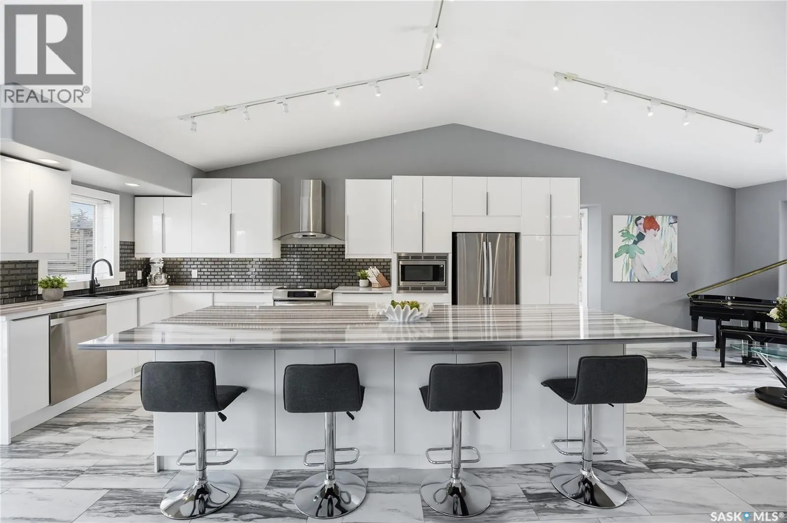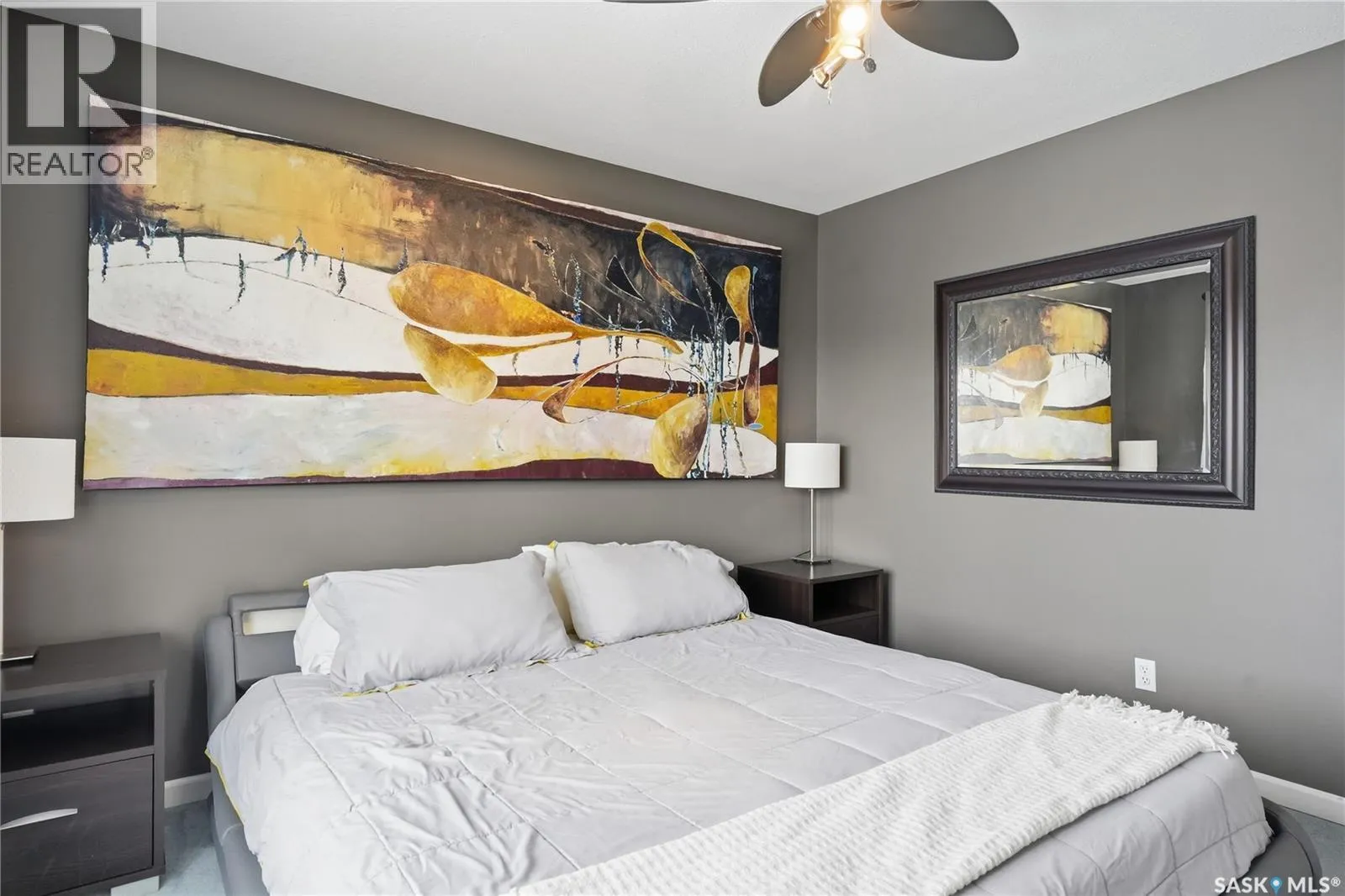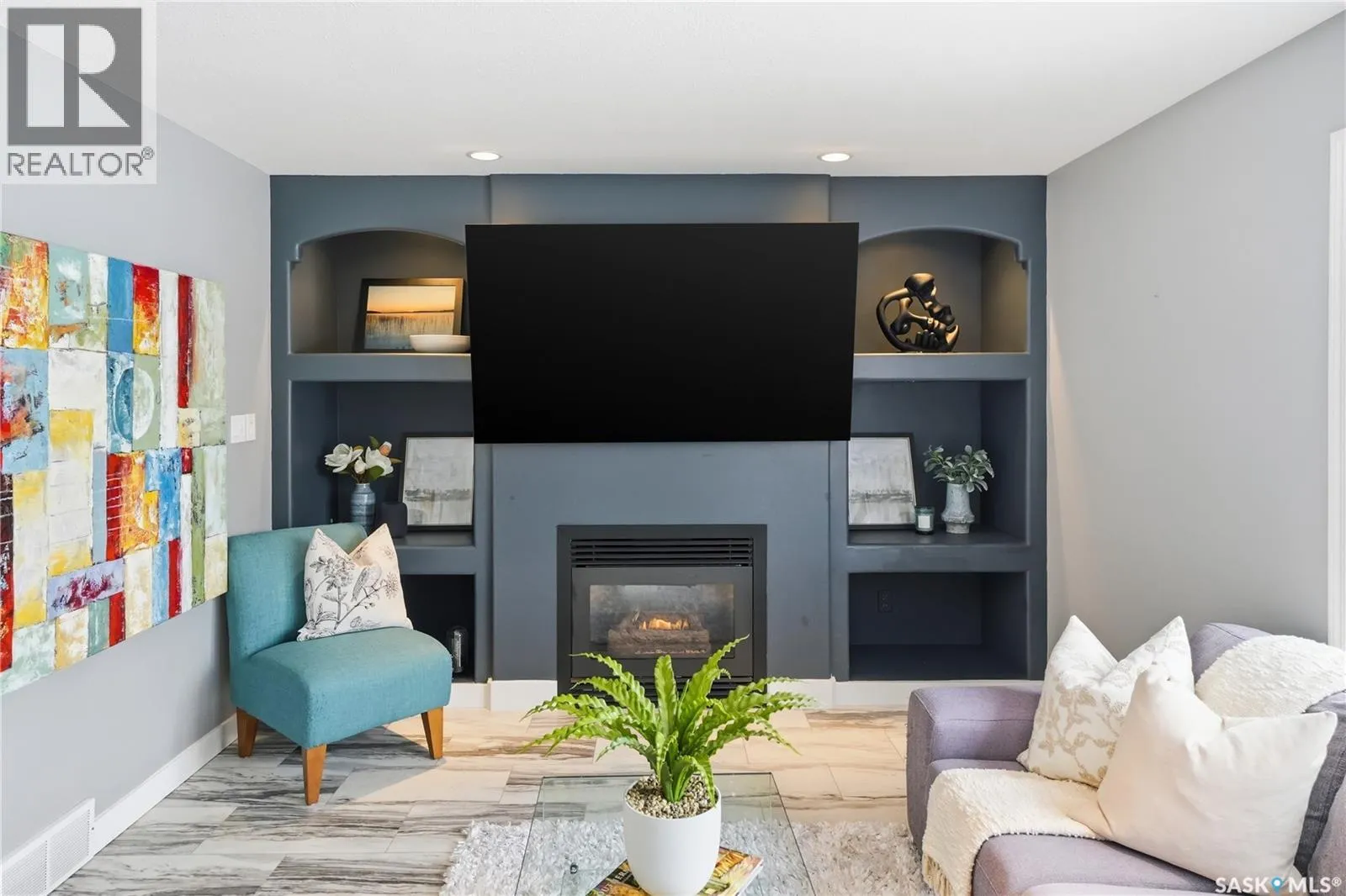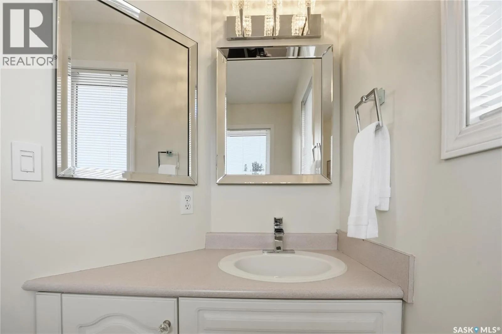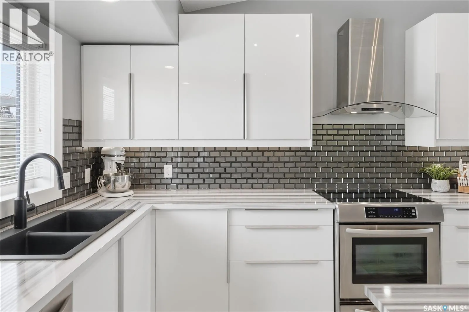 At dawn, the sky above Silverspring turns shades of pink and amber; say good morning to daily sunrises from your future home! (you might need a dedicated album in your photo folder). They say location is everything, and this one is the ultimate forever spot. An arboreal backdrop sits behind this two-storey home. Inside, wide open Euro-inspried living built with the chef and entertainer in mind. The kitchen has really earned its title as the heart of the home; with an over abundance of high-gloss white cabinetry, vaulted ceilings, a not-so-subtle island, tile backsplash, stainless appliances, and a dedicated beverage bar. The living room with decorative built-inâs, gas fireplace, and rear windows that frame the treeline in every season. Main floor laundry and one bedroom tucked away near the three-piece bathroom; perfect for that home office or aging parent. Upstairs, the primary bedroom brings infinite treetop views. The ensuite offers a jetted soaker tub, and a walk-in closet that feels like a boutique. Two more bedrooms and a full bathroom round out the second floor. The basement includes a spacious family room, tiled fitness/games area, an oversized guest bedroom, tranquil three-piece bathroom, and impressive storage. The panoramic yard with mature landscaping, large deck, hot tub and privacy screens; made for evenings with a glass in hand. Beyond the fence, the interconnected Forestry Farm trails wind through the treed landscape. Birdsong and fragrant blooms fill the air. In winter, when the trees go bare, the glow of the Enchanted Forest illuminates the snowy backdrop. 5 bedrooms, 4 bathrooms, heated double attached garage, 1,932 SF, A/C, central vacâ¦oh and did we mention the view? Endless options for walking, including the Meewasin Valley trails, South Saskatchewan River access, 5 minute walk to Silverspring Elementary School, 10 minute walk to the High School, a quick drive to grocery stores, restaurants, Preston Crossing and other amenities. As per the Sellerâs direction, all offers will be presented on 04/02/2026 4:00PM. (id:27476)