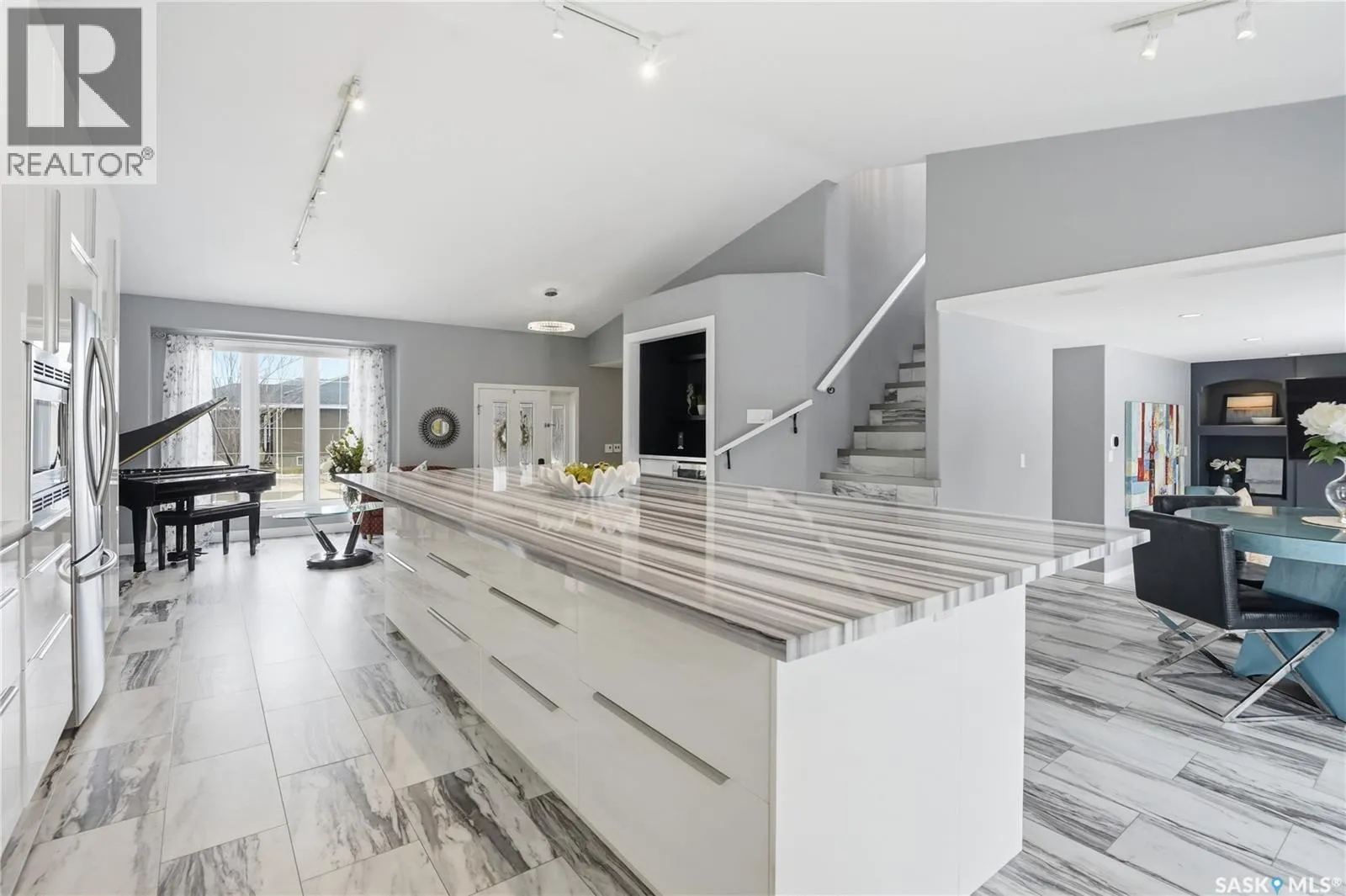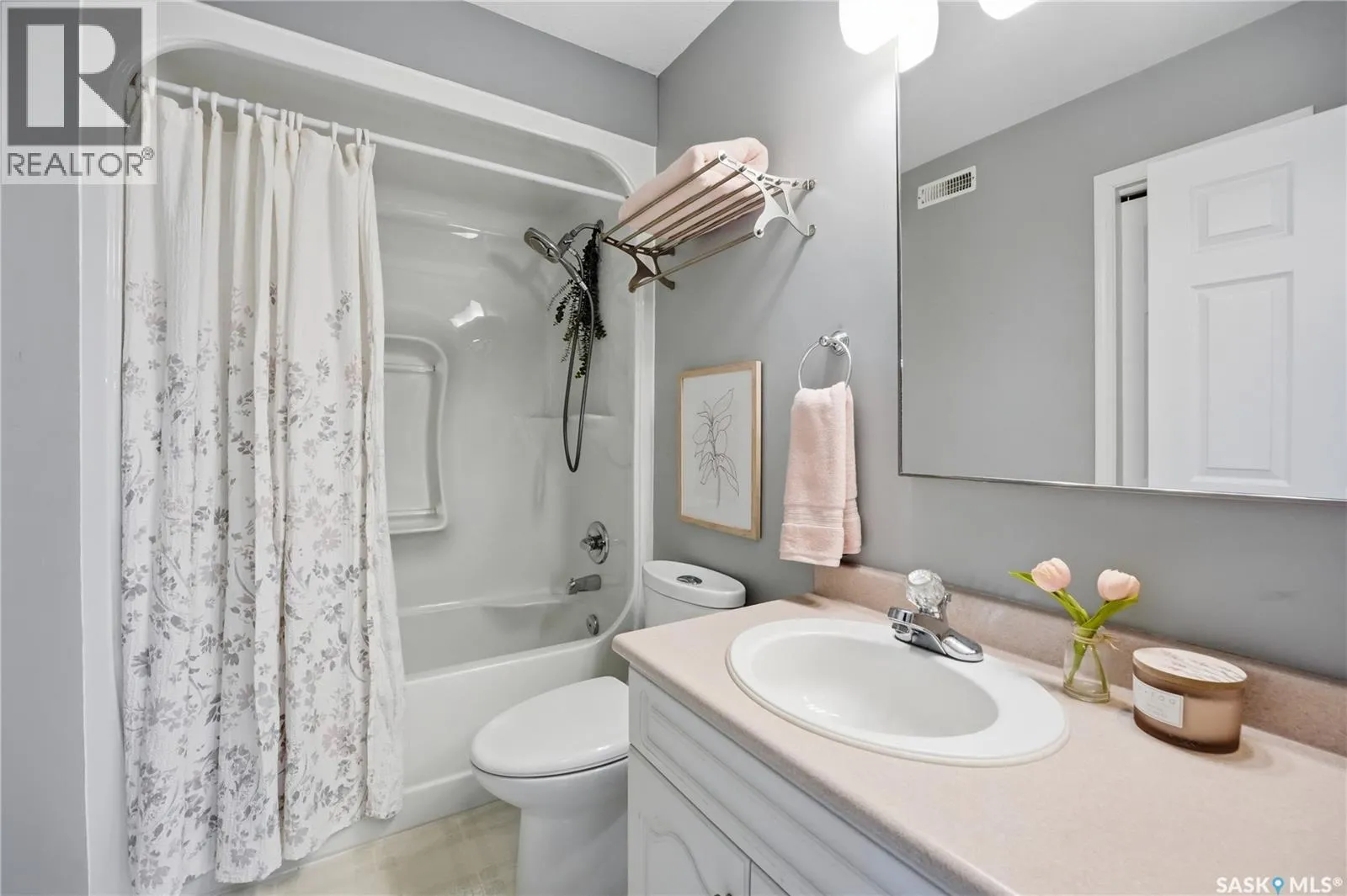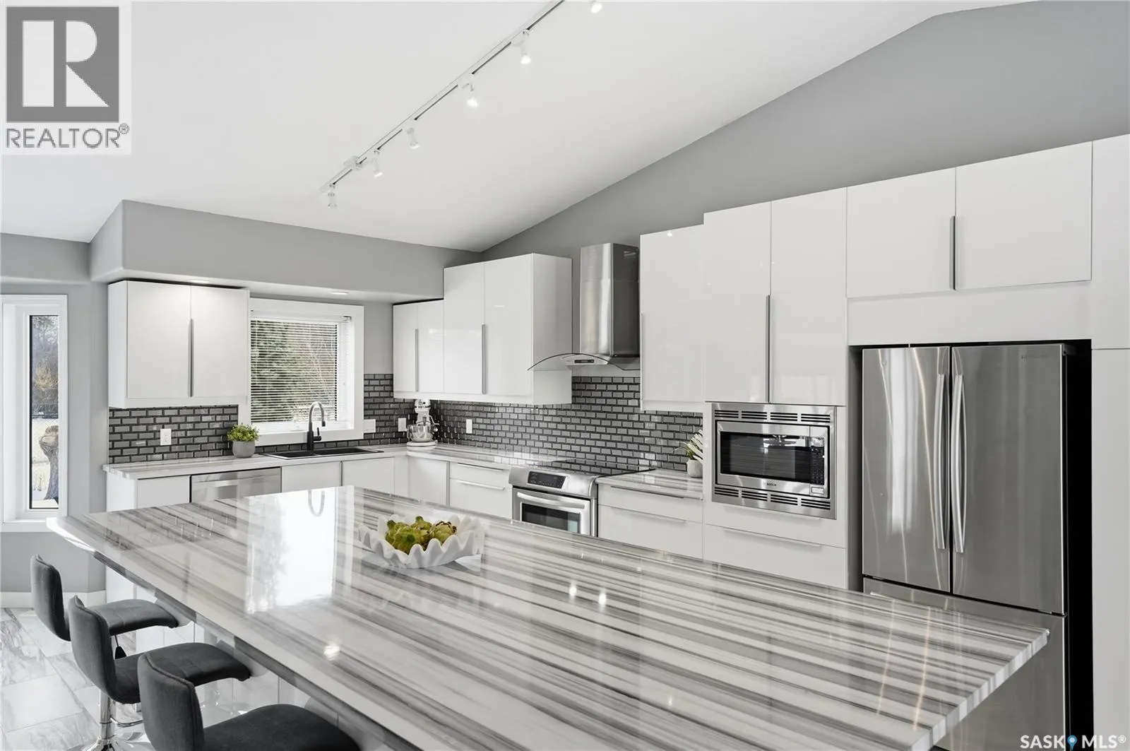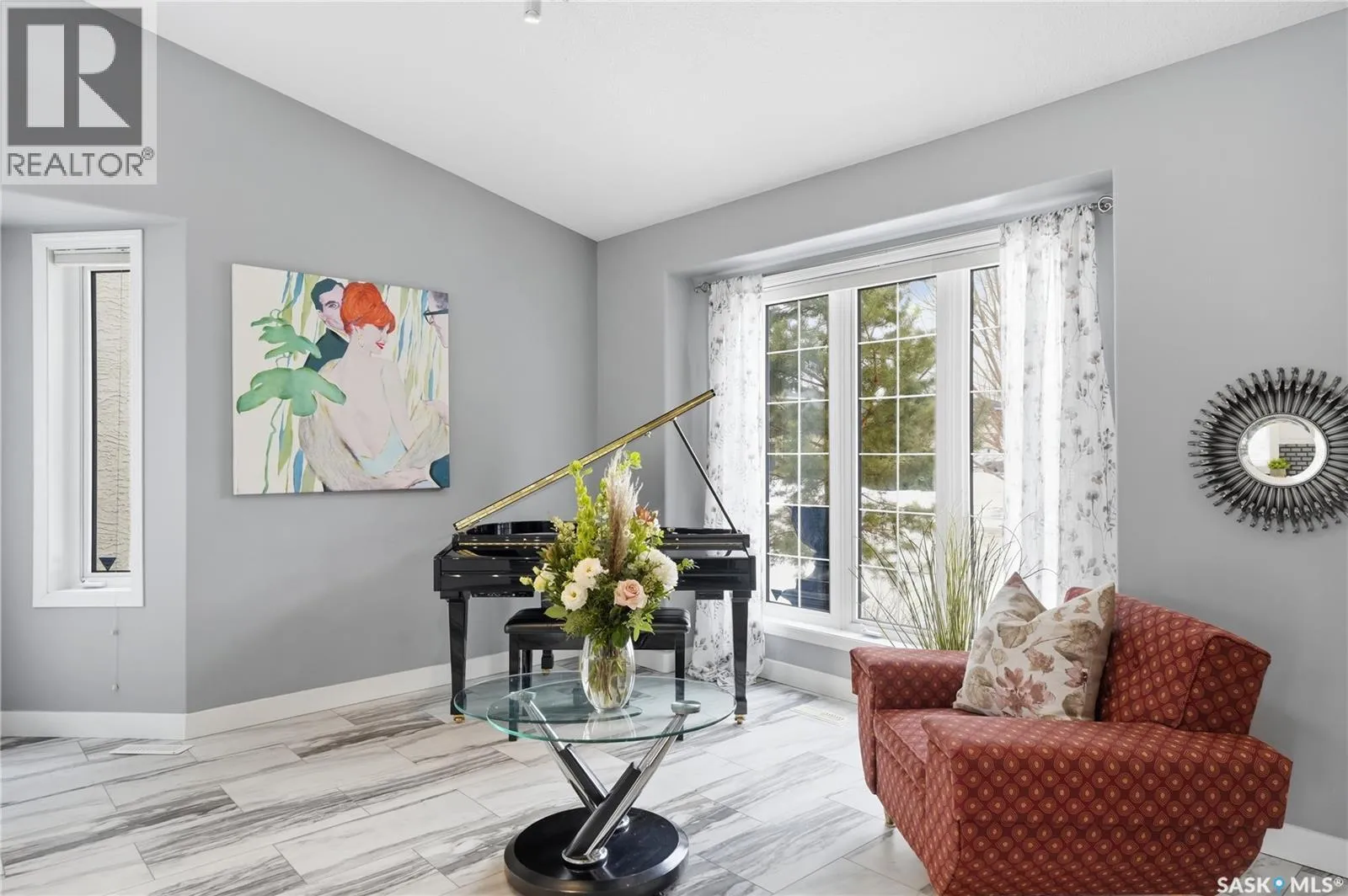 At dawn, the sky above Silverspring turns shades of pink and amber; say good morning to daily sunrises from your future home! (you might need a dedicated album in your photo folder). They say location is everything, and this one is the ultimate forever spot. An arboreal backdrop sits behind this two-storey home. Inside, wide open Euro-inspried living built with the chef and entertainer in mind. The kitchen has really earned its title as the heart of the home; with an over abundance of high-gloss white cabinetry, vaulted ceilings, a not-so-subtle island, tile backsplash, stainless appliances, and a dedicated beverage bar. The living room with decorative built-inâs, gas fireplace, and rear windows that frame the treeline in every season. Main floor laundry and one bedroom tucked away near the three-piece bathroom; perfect for that home office or aging parent. Upstairs, the primary bedroom brings infinite treetop views. The ensuite offers a jetted soaker tub, and a walk-in closet that feels like a boutique. Two more bedrooms and a full bathroom round out the second floor. The basement includes a spacious family room, tiled fitness/games area, an oversized guest bedroom, tranquil three-piece bathroom, and impressive storage. The panoramic yard with mature landscaping, large deck, hot tub and privacy screens; made for evenings with a glass in hand. Beyond the fence, the interconnected Forestry Farm trails wind through the treed landscape. Birdsong and fragrant blooms fill the air. In winter, when the trees go bare, the glow of the Enchanted Forest illuminates the snowy backdrop. 5 bedrooms, 4 bathrooms, heated double attached garage, 1,932 SF, A/C, central vacâ¦oh and did we mention the view? Endless options for walking, including the Meewasin Valley trails, South Saskatchewan River access, 5 minute walk to Silverspring Elementary School, 10 minute walk to the High School, a quick drive to grocery stores, restaurants, Preston Crossing and other amenities. As per the Sellerâs direction, all offers will be presented on 04/02/2026 4:00PM. (id:27476)