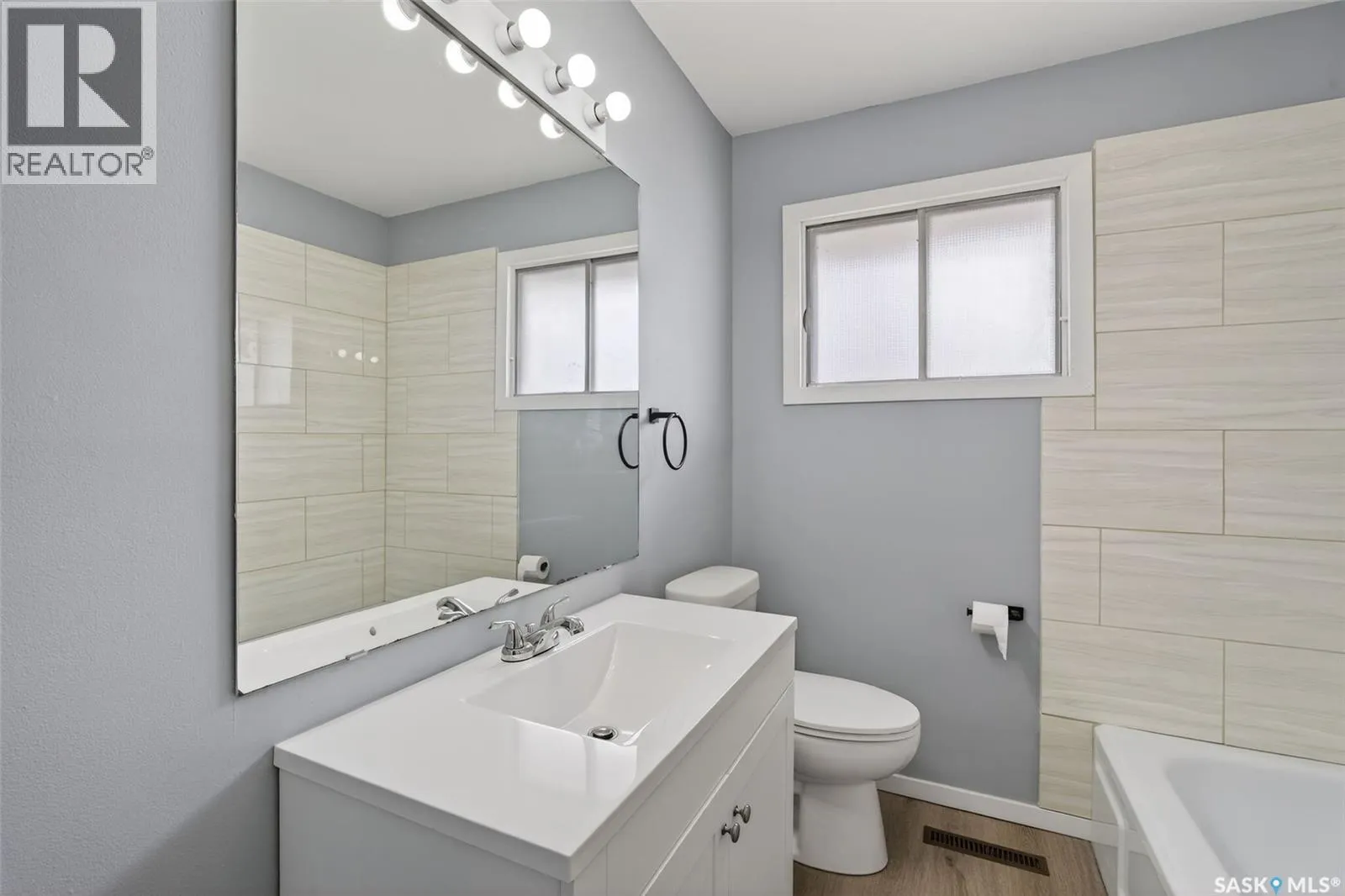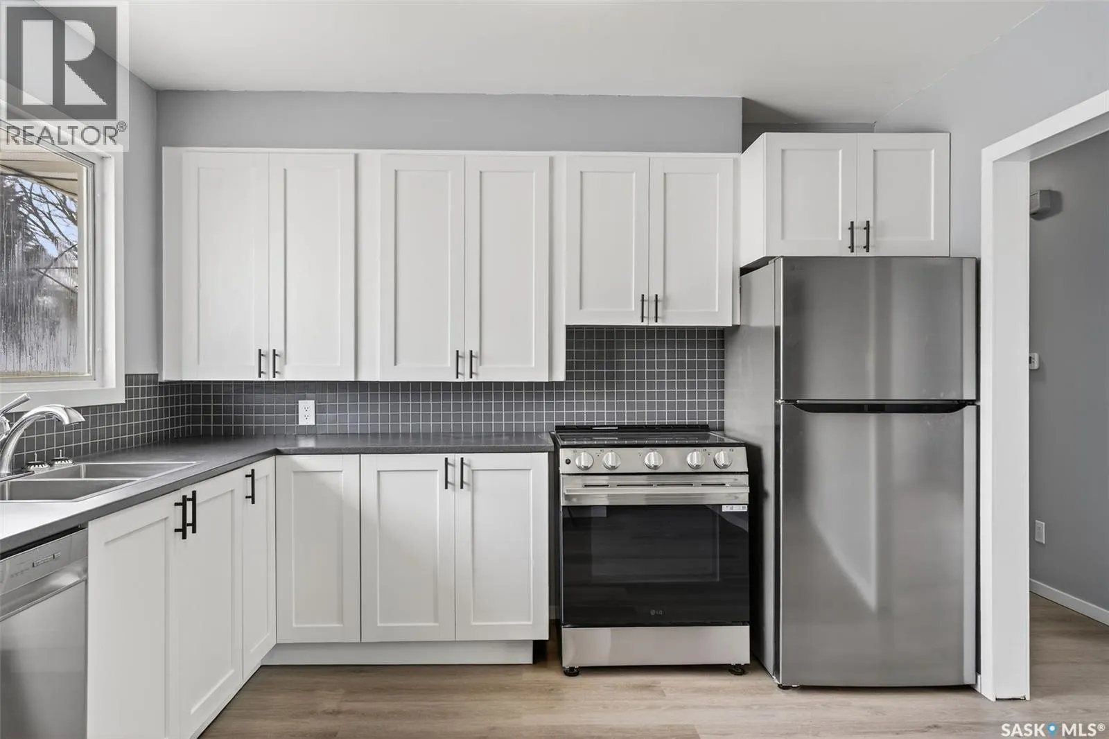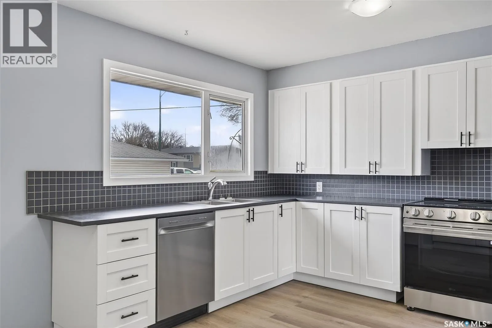 Fully renovated bungalow situated on a spacious triple lot, offering plenty of room both inside and out. The main floor offers a functional layout with three comfortable bedrooms, a full 4-piece bathroom, a bright and inviting living room, and a well-appointed kitchen with adjoining dining space. Downstairs, youâll find a separate entrance leading to a fully developed lower level with two bedrooms, a 3-piece bathroom, a large living area, and an additional kitchen plus dining spaceâmaking it an excellent setup for rental income or extended family living. The beautifully landscaped backyard features a oversized single-car garage and a versatile workshopâperfect for welders, mechanics, or hobbyists. Ideally located close to parks, schools, and a nearby strip mall, with quick and easy access to Circle Drive for convenient commuting. Donât miss this opportunityâcall today to book your private showing! (id:27476)