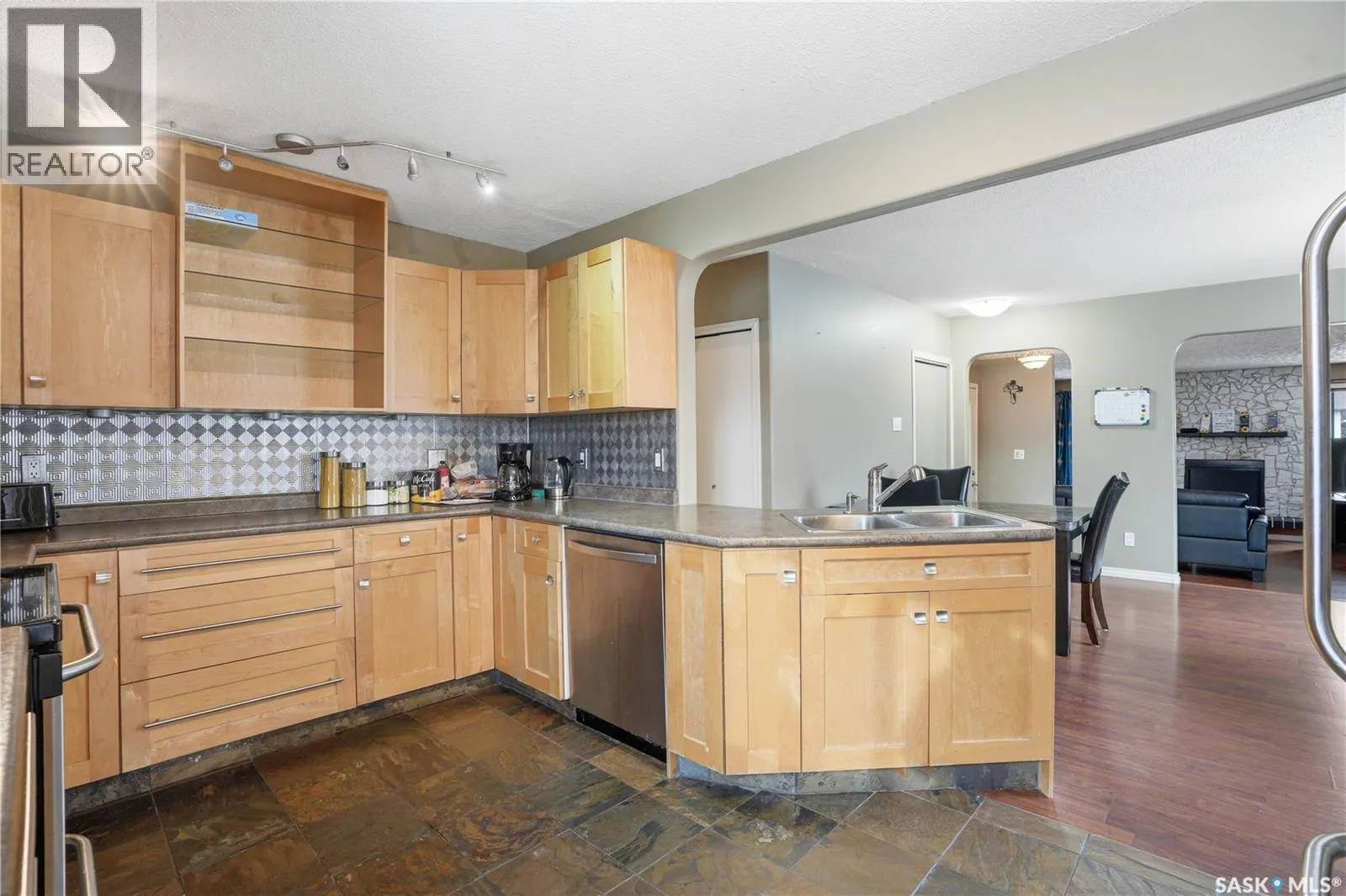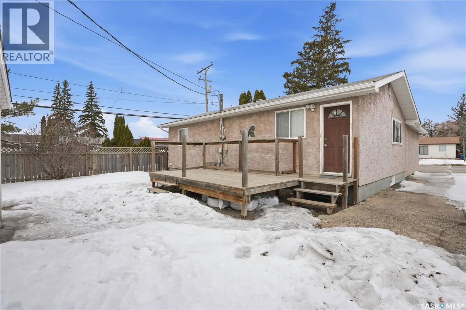Excellent opportunity with this LEGALLY PERMITTED 2 UNIT lane sided bungalow in Forest Grove, with each unit having its own laundry areas. Great proximity to bus routes, Sutherland, U of S & future Sask. Polytechnic campus. Spacious and open main floor layout with large living room & dining area, updated kitchen and pantry, 4-piece bathroom, 3 bedrooms upstairs & dedicated laundry area in basement. The 2 bedroom permitted basement suite has had some recent upgrades and offers excellent investment value. Basement photos taken prior to basement tenant occupancy. Located on a 50' x 120' R2-zoned lot with a large 22' x 26' double detached garage that is heated and insulated. Upgrades include some newer PVC-frame windows, recently-upgraded water heater, underground sprinklers, & landscaping. Great investment whether you're looking for a well-maintained starter home with a mortgage helper, or a valuable addition to your investment portfolio. Offers to be presented at 6:30pm on Tuesday, March 31st. As per the Sellerâs direction, all offers will be presented on 03/31/2026 6:30PM. (id:27476)