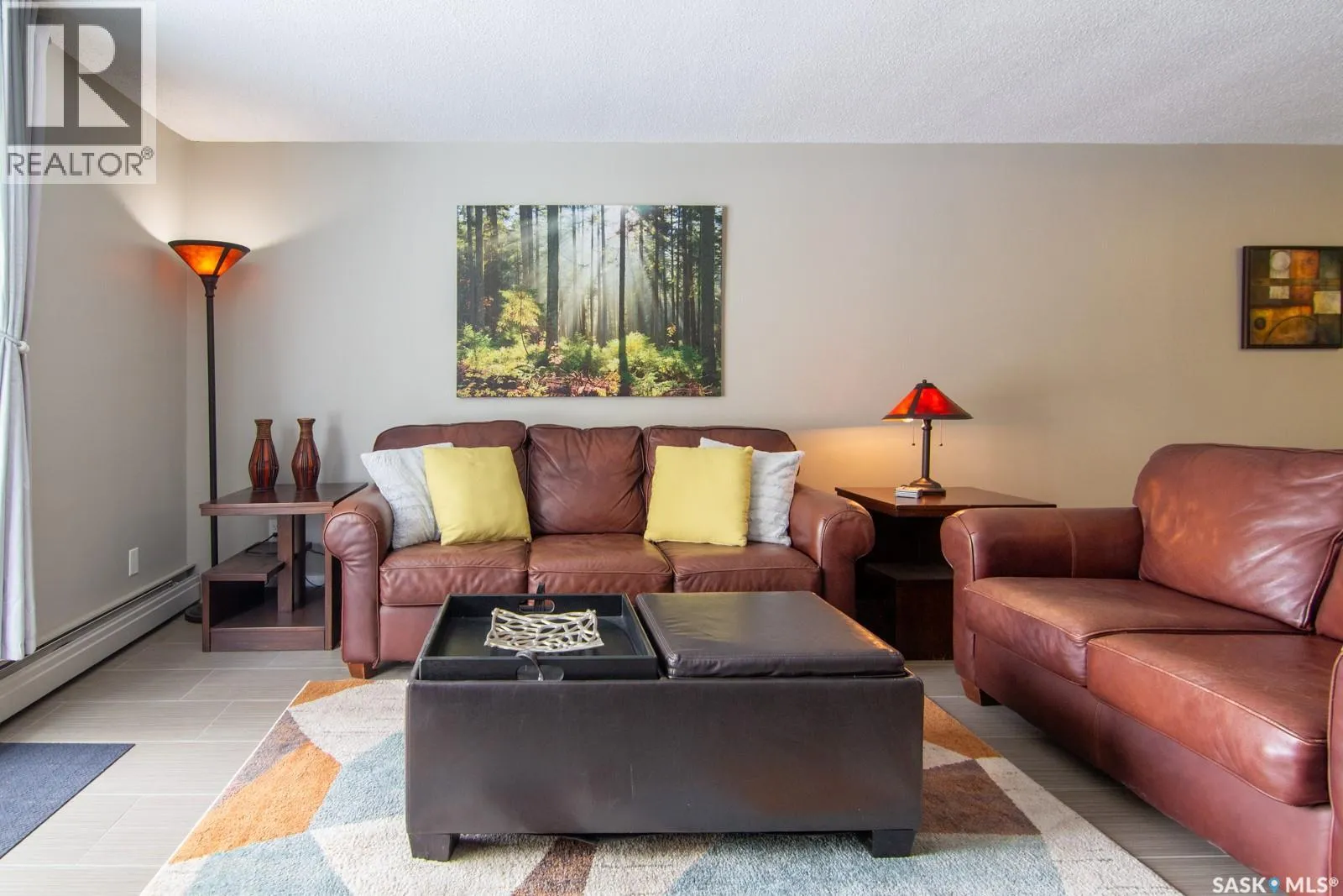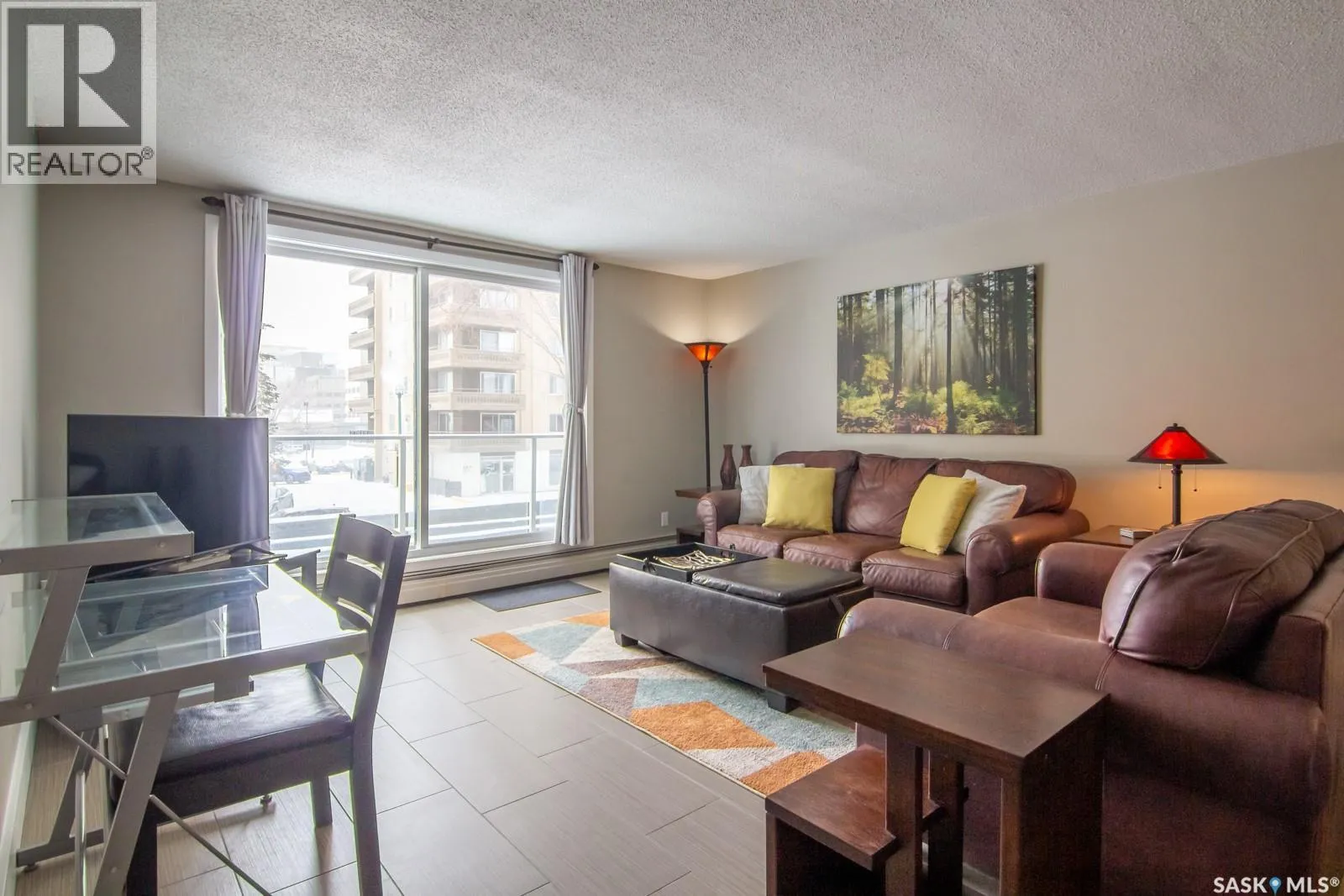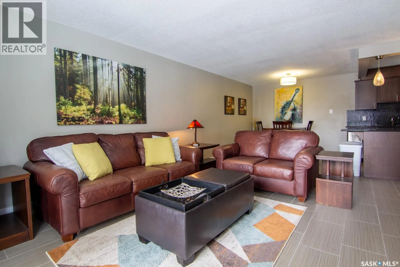 Nicely updated & fully furnished 2-bedroom condo in the heart of downtown Saskatoon! This open-concept home is perfectly situated within walking distance of the University of Saskatchewan, downtown restaurants, Kinsmen Park, Meewasin Trail, and the soon-to-be-completed downtown central library. The concrete building offers excellent amenities, including two rooftop patios with river and downtown views, a renovated fitness center, and an updated amenities room. Unit comes with one surface parking stall, central air, in-suite laundry/ storage, and a large west-facing balcony off the living room. Condo fees cover all utilities, including electricity, heat, water, and sewer. Pets are welcome with board approval. Donât miss this opportunity to own a move-in-ready condo in Saskatoonâs vibrant downtown core! (id:27476)
