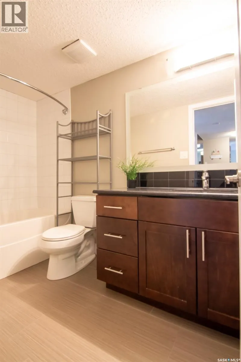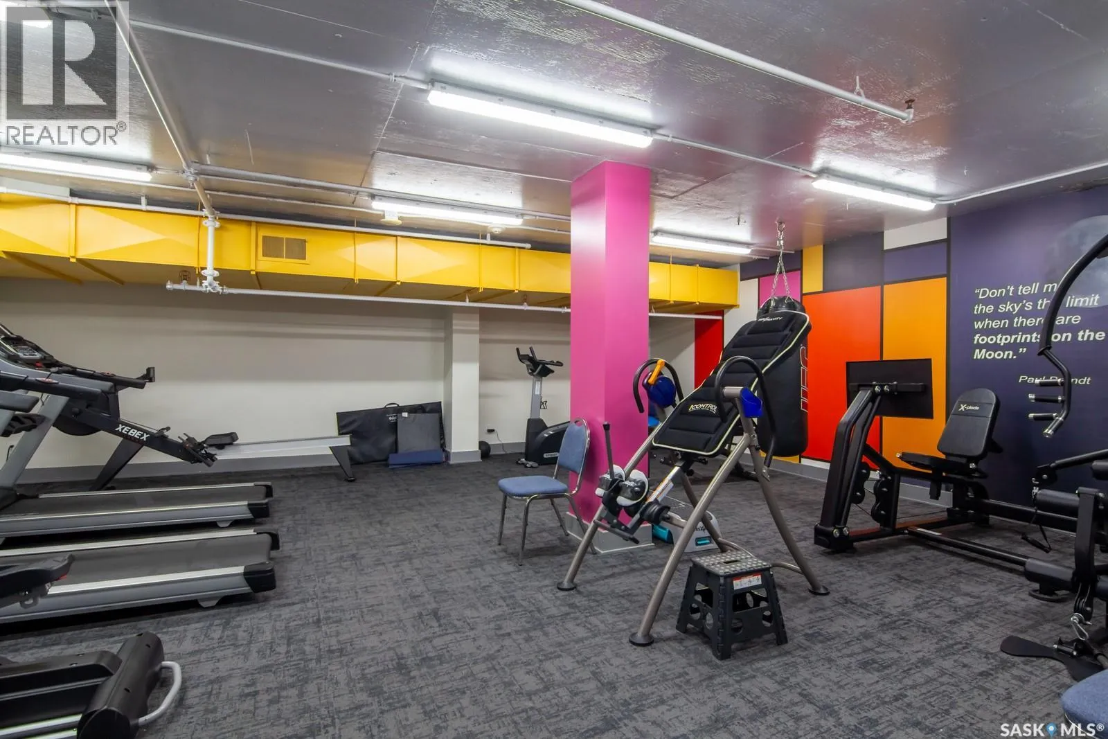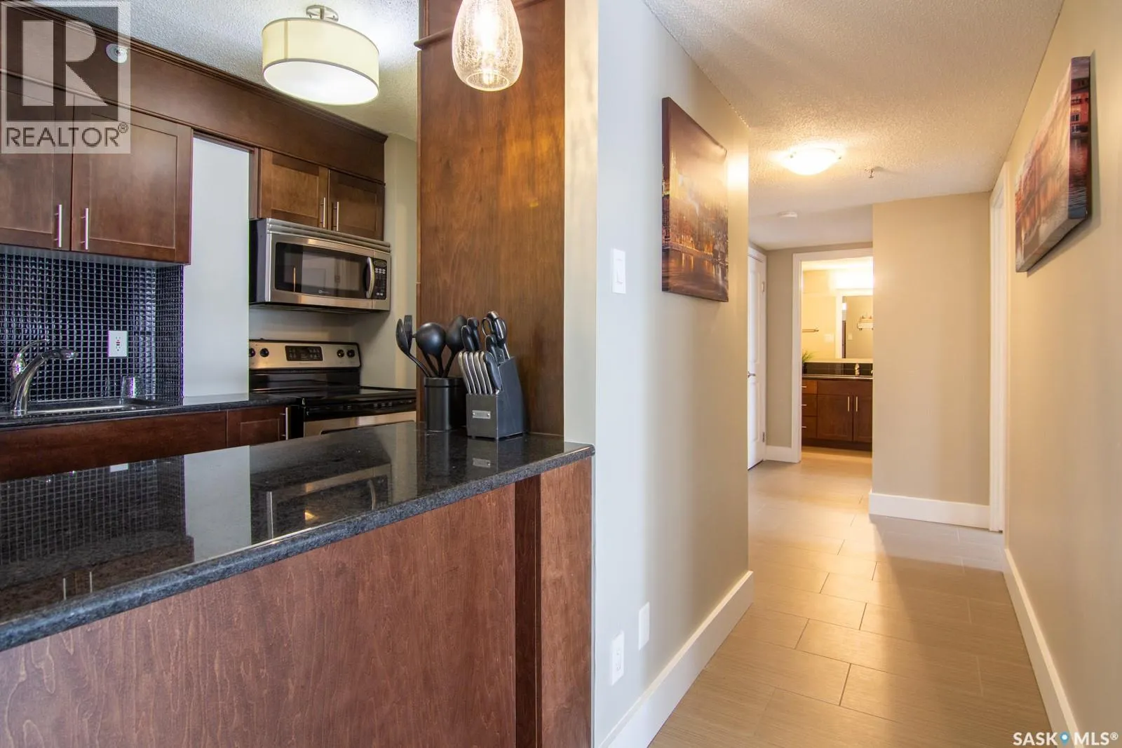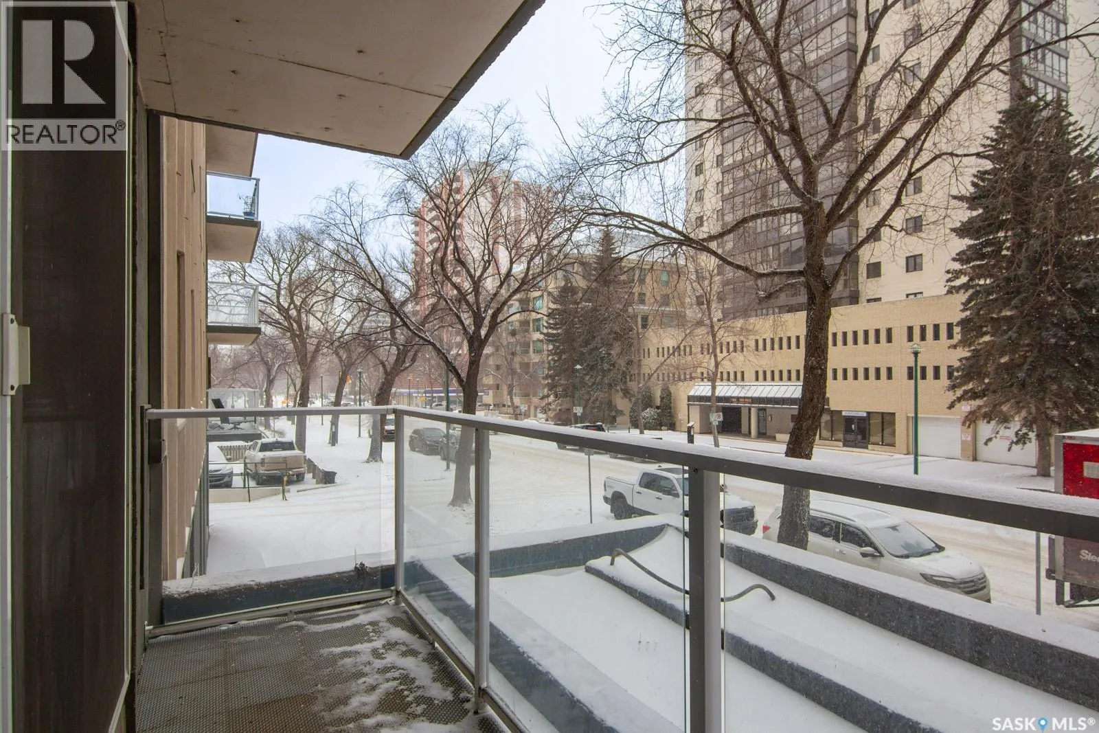Nicely updated & fully furnished 2-bedroom condo in the heart of downtown Saskatoon! This open-concept home is perfectly situated within walking distance of the University of Saskatchewan, downtown restaurants, Kinsmen Park, Meewasin Trail, and the soon-to-be-completed downtown central library. The concrete building offers excellent amenities, including two rooftop patios with river and downtown views, a renovated fitness center, and an updated amenities room. Unit comes with one surface parking stall, central air, in-suite laundry/ storage, and a large west-facing balcony off the living room. Condo fees cover all utilities, including electricity, heat, water, and sewer. Pets are welcome with board approval. Donât miss this opportunity to own a move-in-ready condo in Saskatoonâs vibrant downtown core! (id:27476)