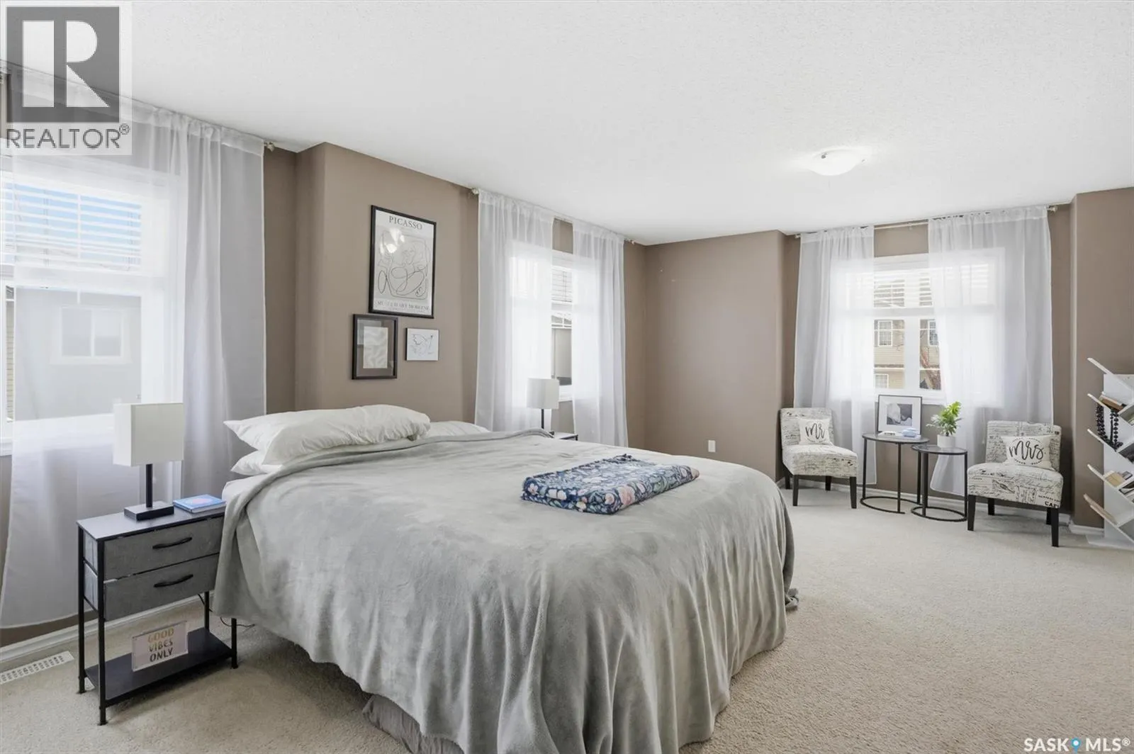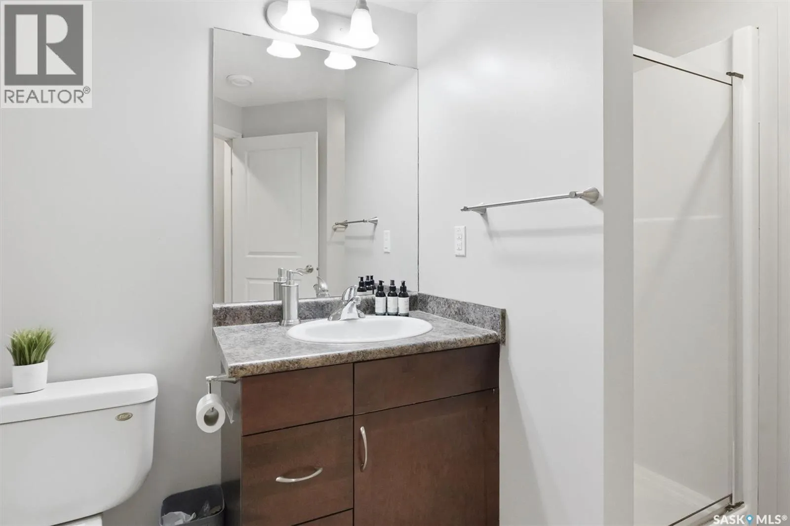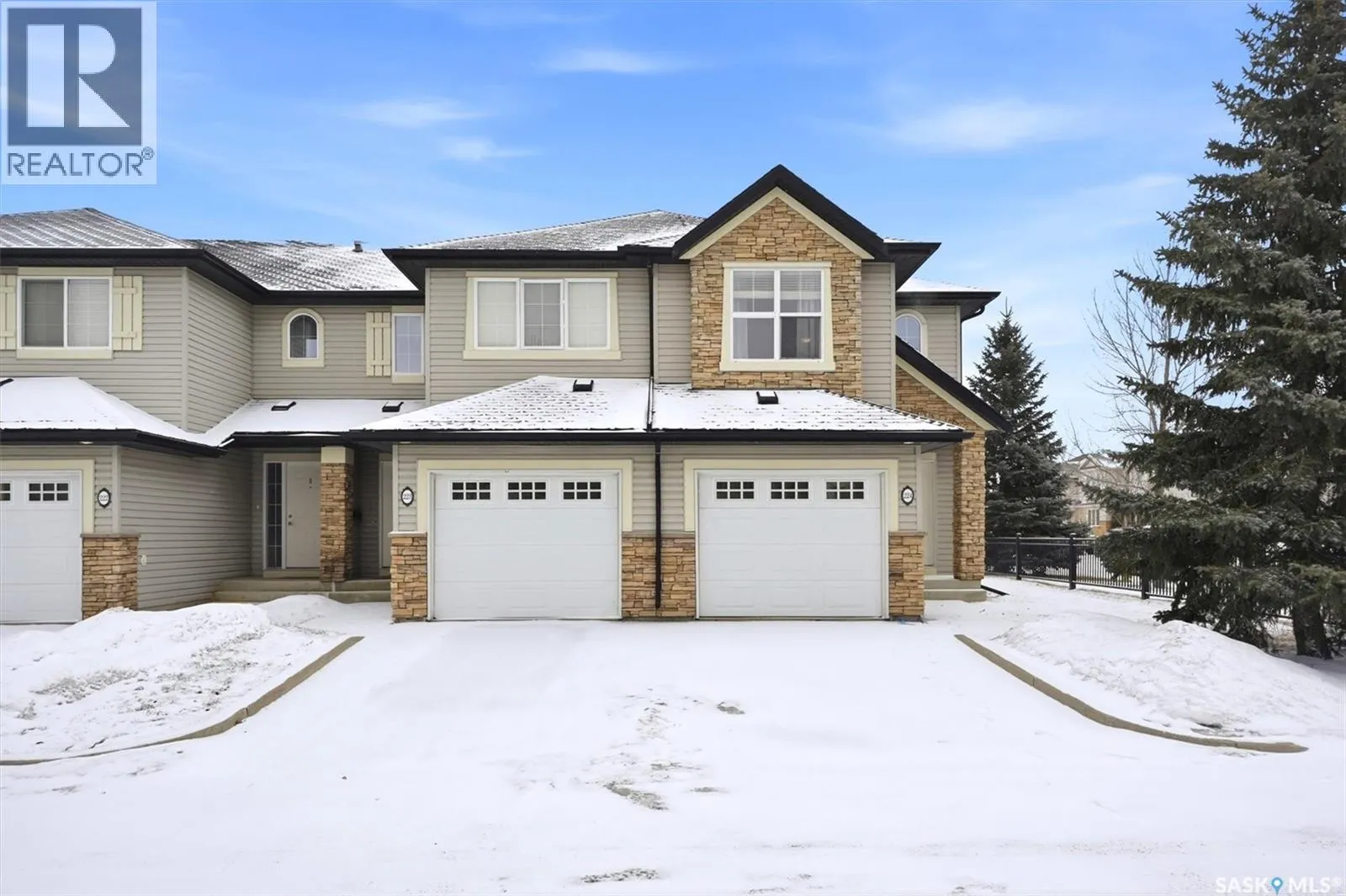 Welcome to this bright and well maintained end-unit townhouse in the sought-after Mirabella complex in Stonebridge. Offering the desirable two-bedroom layout, this home features three bathrooms, an attached garage, and a driveway for additional parking. The open-concept main floor is ideal for entertaining, showcasing granite countertops, maple cabinetry, hardwood and tile flooring, and a convenient powder room. Large windows throughout the unit provide an abundance of natural light. Upstairs, the spacious primary bedroom offers a generous walk-in closet and direct access to a full bathroom, while the second oversized bedroom also features a walk-in closet and provides excellent flexibility for guests, a home office, or additional living space. The fully developed basement adds even more functionality with a cozy family room complete with built-in surround sound, a 3-piece bathroom, laundry area, and ample storage. Additional features include central air conditioning, central vacuum, newer fridge and stove, a furnace updated in 2022, and a water heater replaced in 2020. Step outside to enjoy the private back patio off the dining room garden doors. Ideally located close to parks, schools, street parking, and all Stonebridge amenities, with quick and easy access to Circle Drive. (id:27476)