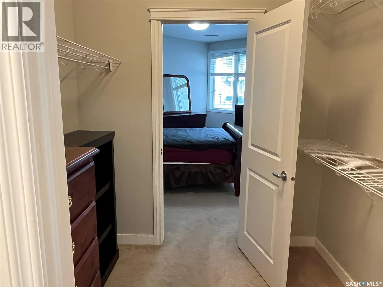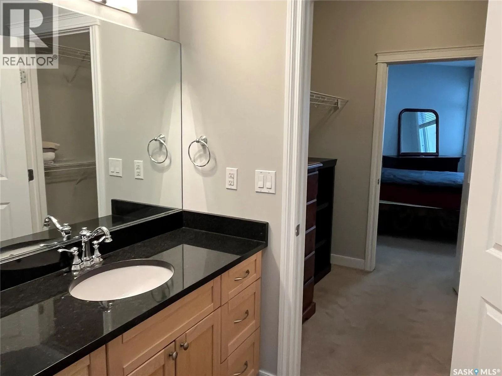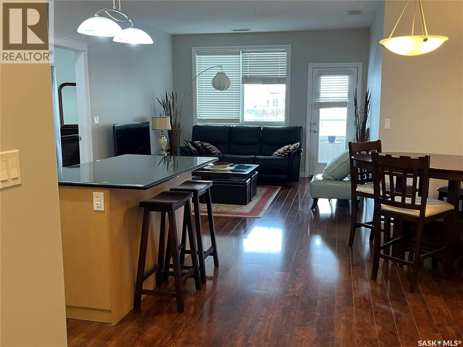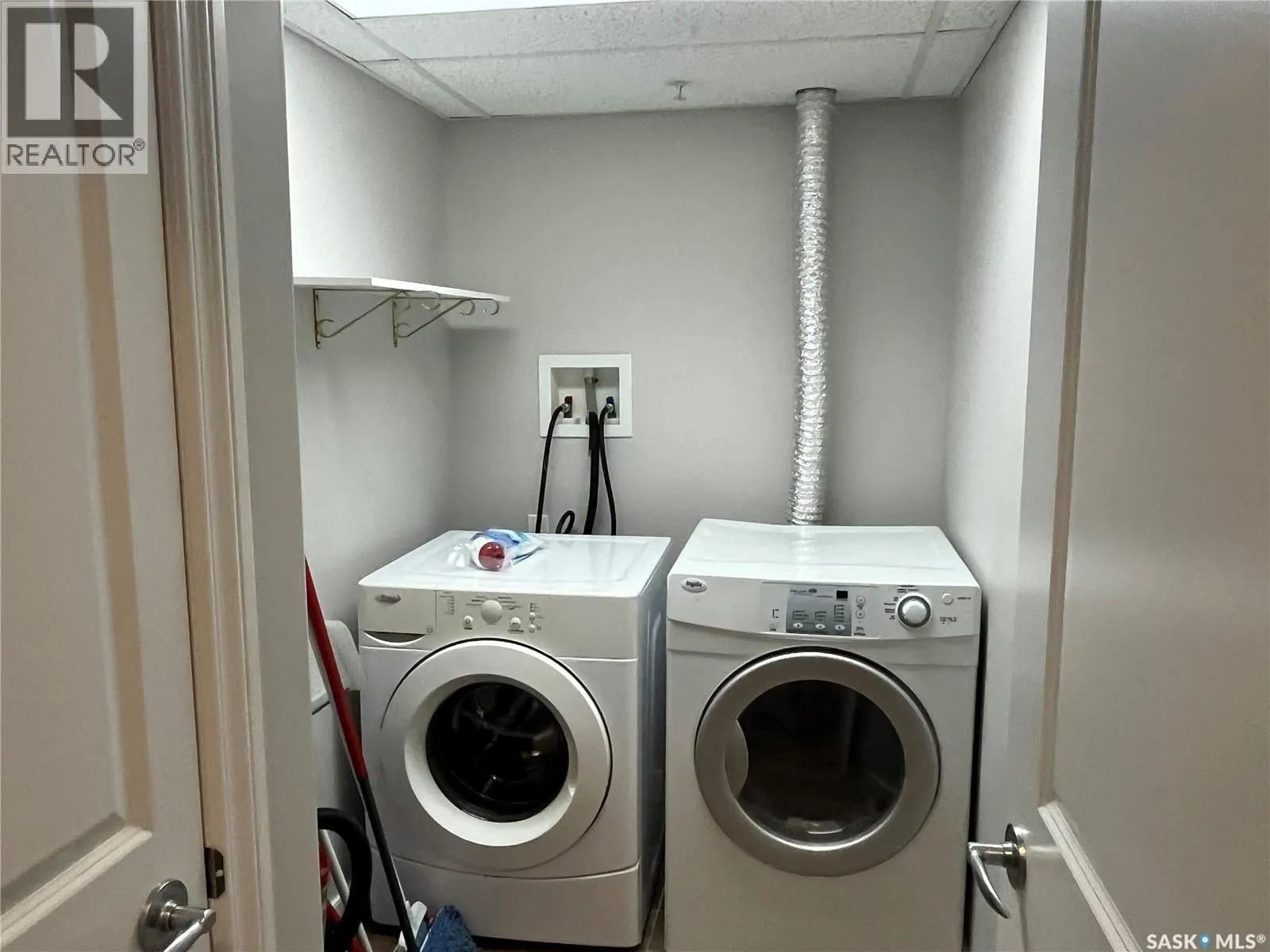 Welcome to this bright and beautifully maintained 1,185 SqFt condo in the highly desirable community of The Willows. Located on the second floor, this westeast facing unit offers abundant natural light and a thoughtfully designed layout. The updated kitchen features elegant granite countertops, a stylish backsplash, upgraded cabinetry, an island with seating and stainless steel appliances. The open concept design flows seamlessly into the dining and living areas. With in floor heating and central air conditioning, youâll stay comfortable no matter the season. This unit offers two spacious bedrooms, including a primary suite with a walk-in closet and a 3 piece ensuite plus a Den can can double as home office Additional highlights include a large laundry room with extra storage, a private balcony with natural gas BBQ hookup, and two parking stalls, one underground and one surface. Enjoy a range of premium amenities, including an exercise room, recreation room, ample visitor parking, and a convenient car wash bay, a bonus you'll love year round. There is also a secure storage room. You'll be just steps away from the Willows Golf & Country Club, making this a perfect home for golf enthusiasts or anyone seeking a serene, upscale environment. Donât miss your chance to own this exceptional and affordable condo in one of Saskatoon's most sought after communities. Book your private showing today! (id:27476)