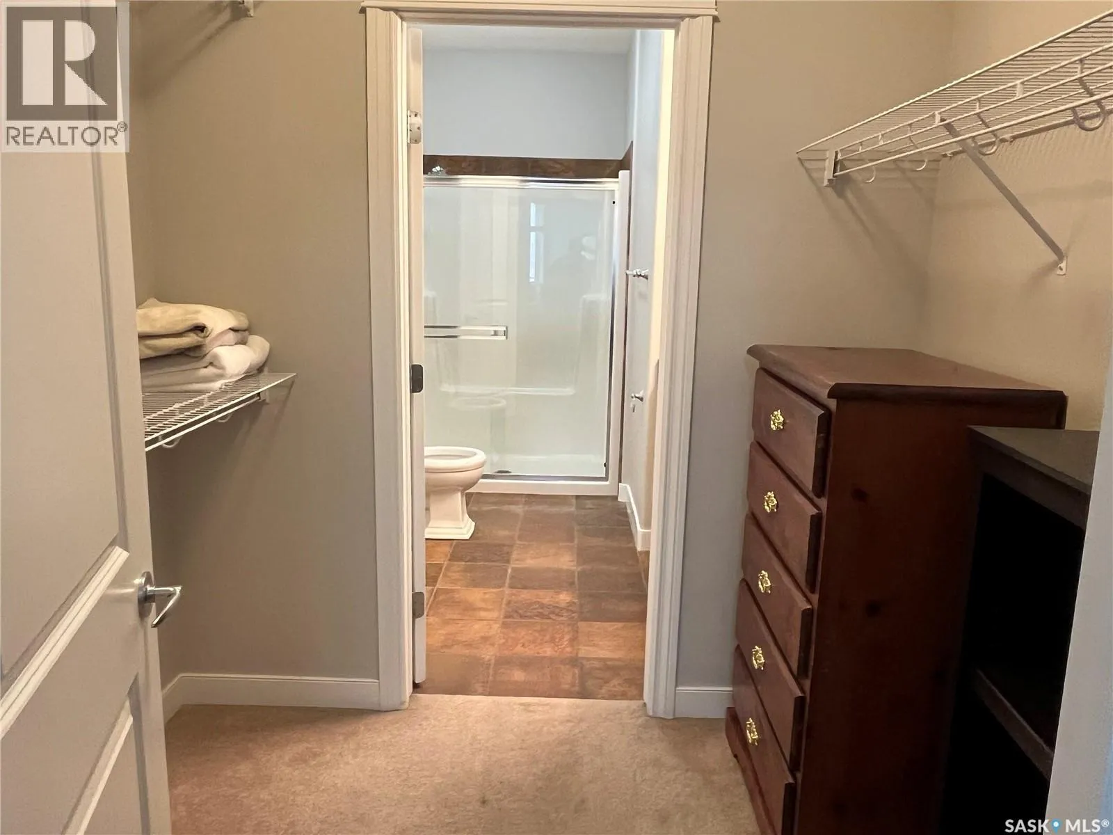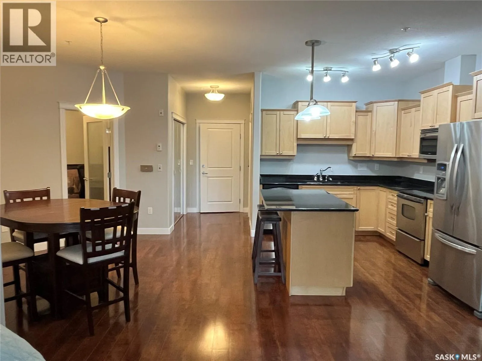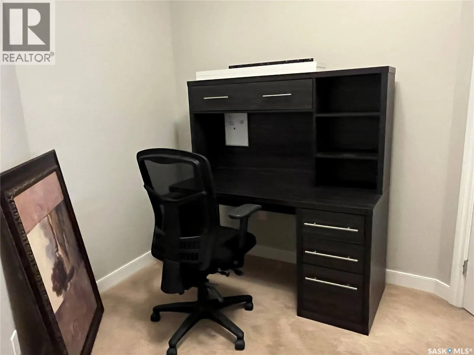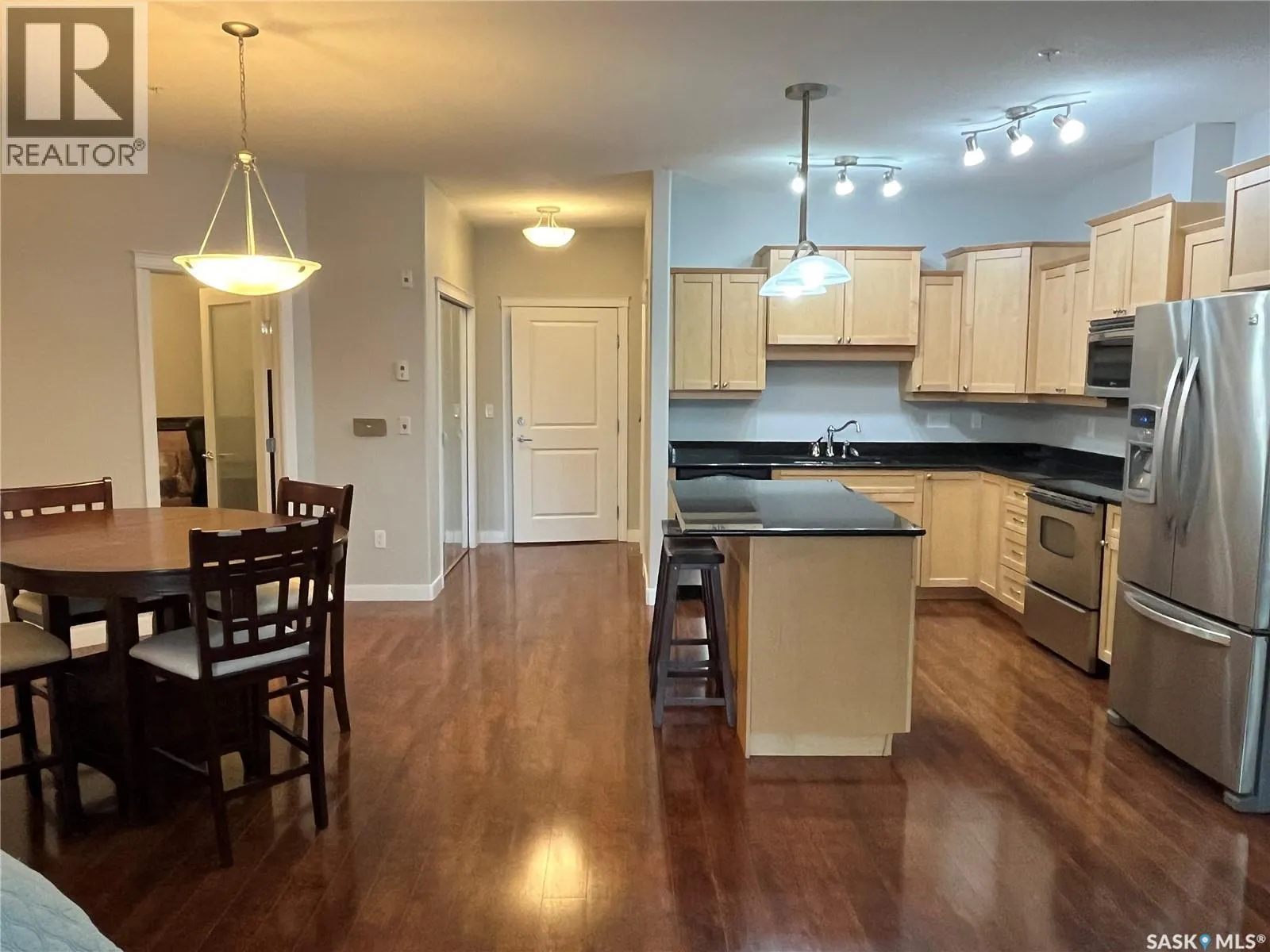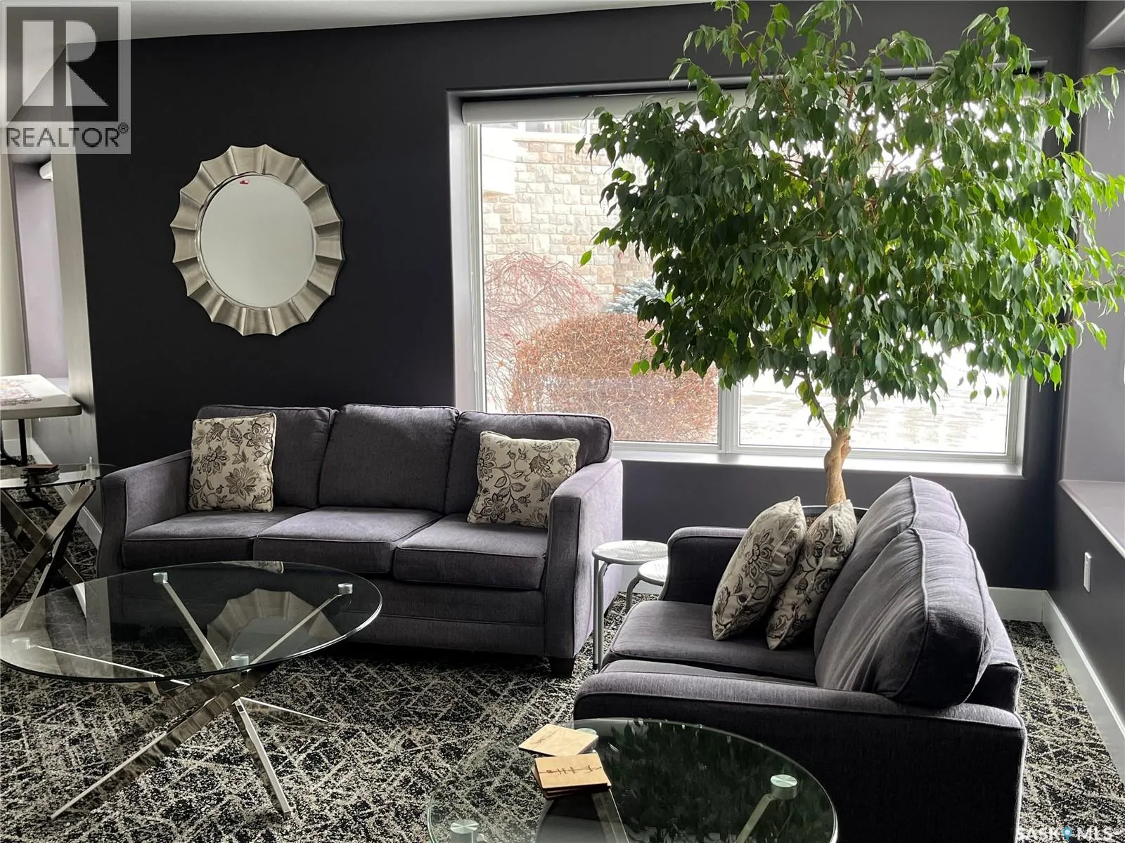 Welcome to this bright and beautifully maintained 1,185 SqFt condo in the highly desirable community of The Willows. Located on the second floor, this westeast facing unit offers abundant natural light and a thoughtfully designed layout. The updated kitchen features elegant granite countertops, a stylish backsplash, upgraded cabinetry, an island with seating and stainless steel appliances. The open concept design flows seamlessly into the dining and living areas. With in floor heating and central air conditioning, youâll stay comfortable no matter the season. This unit offers two spacious bedrooms, including a primary suite with a walk-in closet and a 3 piece ensuite plus a Den can can double as home office Additional highlights include a large laundry room with extra storage, a private balcony with natural gas BBQ hookup, and two parking stalls, one underground and one surface. Enjoy a range of premium amenities, including an exercise room, recreation room, ample visitor parking, and a convenient car wash bay, a bonus you'll love year round. There is also a secure storage room. You'll be just steps away from the Willows Golf & Country Club, making this a perfect home for golf enthusiasts or anyone seeking a serene, upscale environment. Donât miss your chance to own this exceptional and affordable condo in one of Saskatoon's most sought after communities. Book your private showing today! (id:27476)