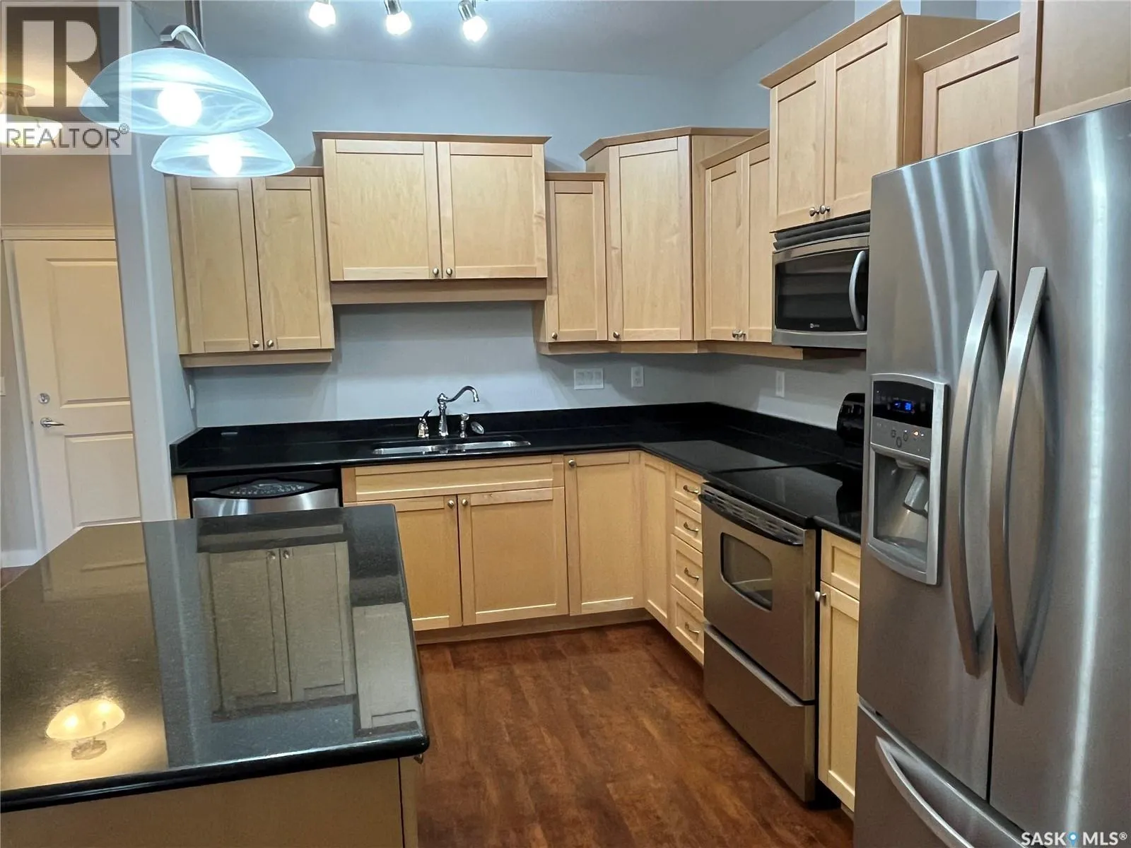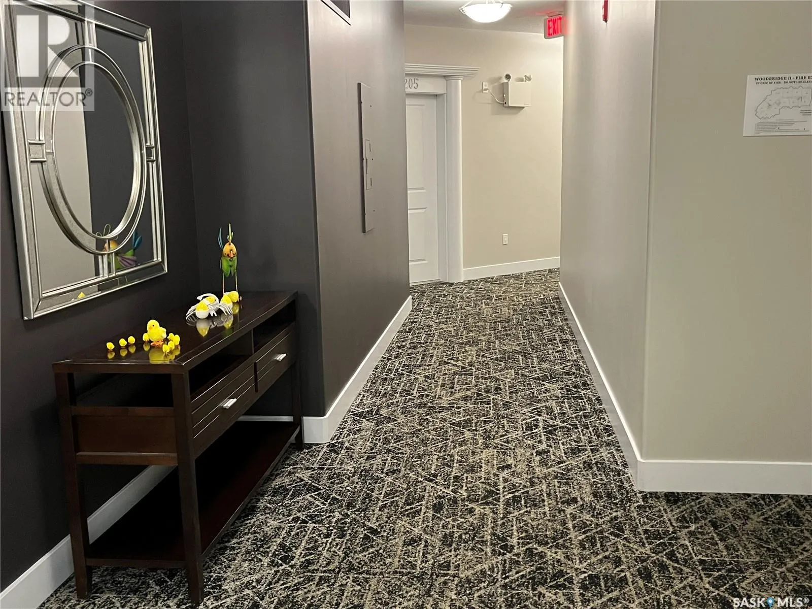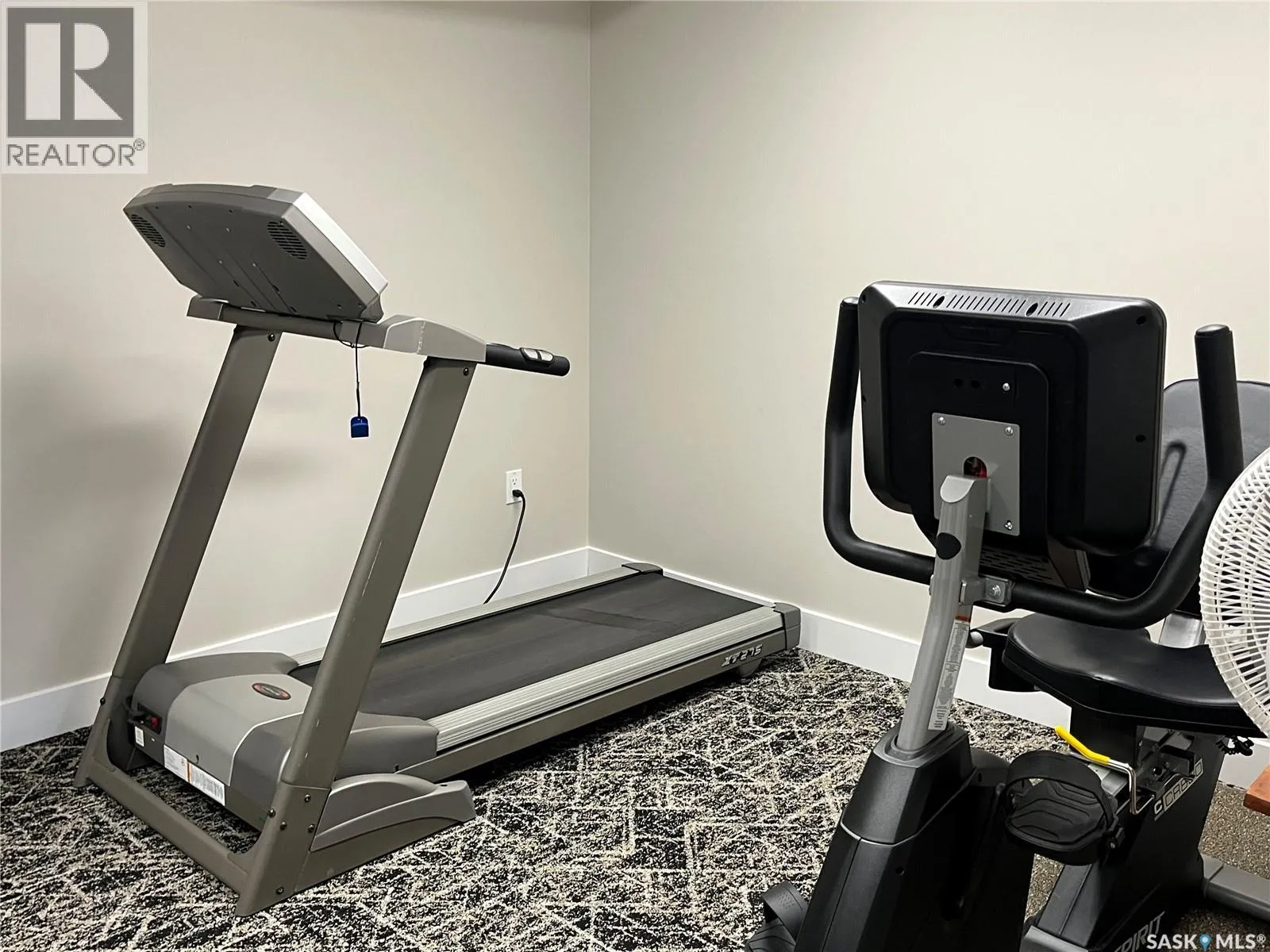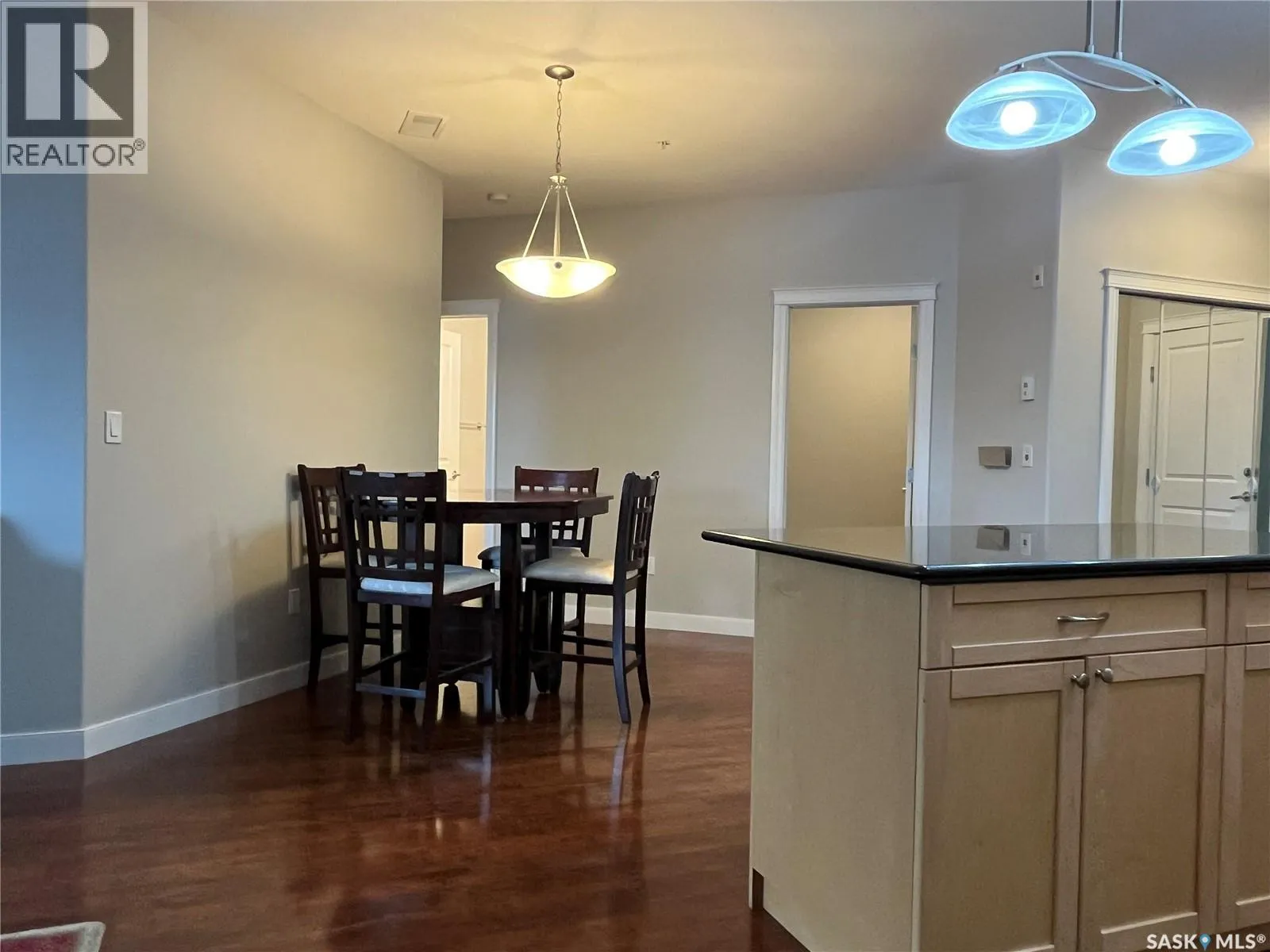 Welcome to this bright and beautifully maintained 1,185 SqFt condo in the highly desirable community of The Willows. Located on the second floor, this westeast facing unit offers abundant natural light and a thoughtfully designed layout. The updated kitchen features elegant granite countertops, a stylish backsplash, upgraded cabinetry, an island with seating and stainless steel appliances. The open concept design flows seamlessly into the dining and living areas. With in floor heating and central air conditioning, youâll stay comfortable no matter the season. This unit offers two spacious bedrooms, including a primary suite with a walk-in closet and a 3 piece ensuite plus a Den can can double as home office Additional highlights include a large laundry room with extra storage, a private balcony with natural gas BBQ hookup, and two parking stalls, one underground and one surface. Enjoy a range of premium amenities, including an exercise room, recreation room, ample visitor parking, and a convenient car wash bay, a bonus you'll love year round. There is also a secure storage room. You'll be just steps away from the Willows Golf & Country Club, making this a perfect home for golf enthusiasts or anyone seeking a serene, upscale environment. Donât miss your chance to own this exceptional and affordable condo in one of Saskatoon's most sought after communities. Book your private showing today! (id:27476)