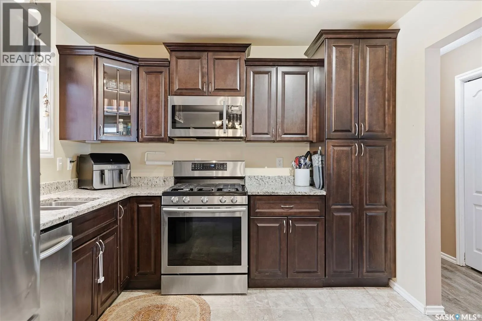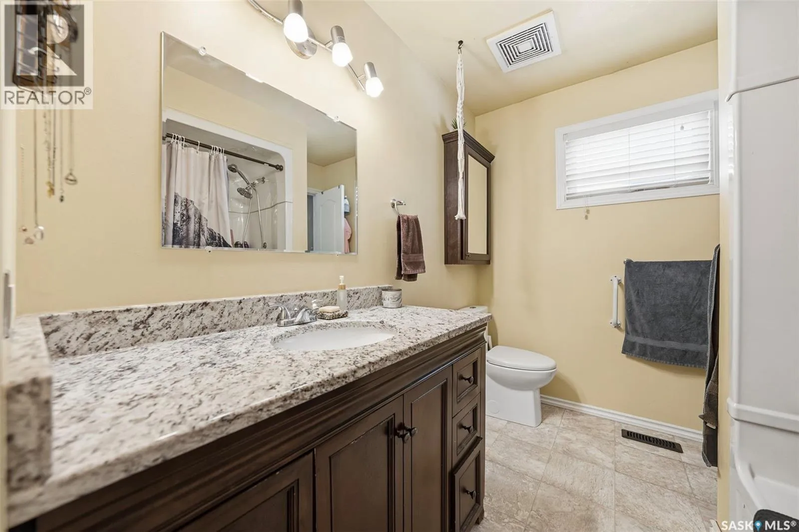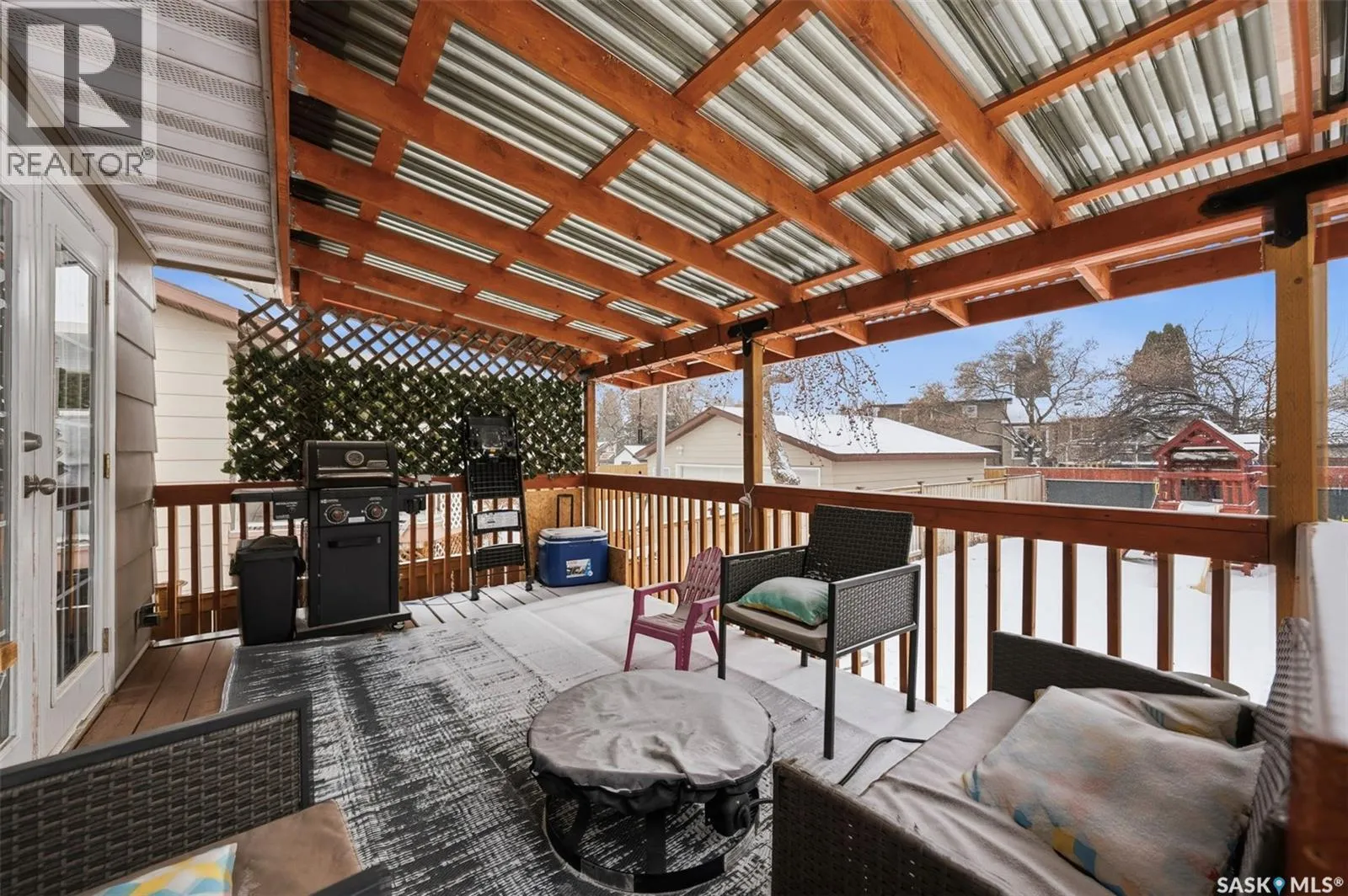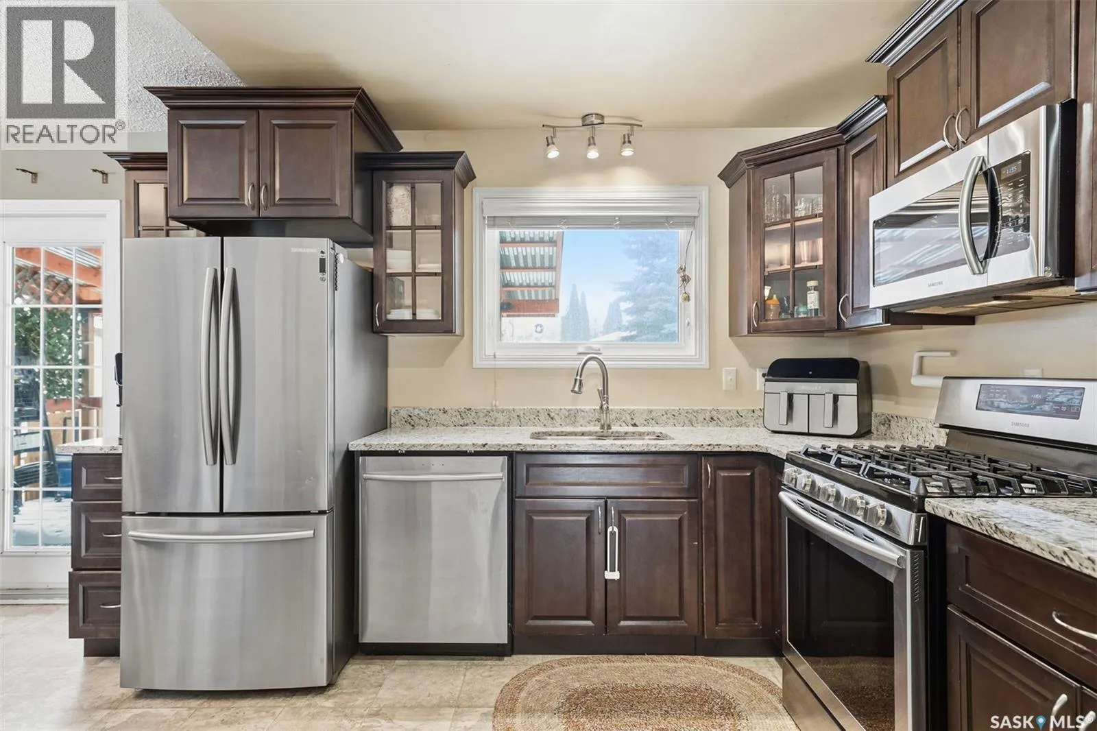 Welcome to one of the best locations in Saskatoon nestled on a quiet court in the highly desirable Lawson Heights neighbourhood. This well maintained 4 bedroom, 2 bathroom bi-level home has been thoughtfully updated throughout. The main floor features a newer kitchen complete with granite countertops and upgraded appliances, including a natural gas stove. Step outside to enjoy a large, peaceful backyard with a cozy deck and covered roof accessed from the dining room. The backyard also offers direct access to a walking path. Direct entry to the home from the attached garage. Major updates provide exceptional peace of mind, including furnace, hot water heater, windows and central air conditioning (2021), shingles (2023), fence (2021), deck (2025), and underground sprinklers updated in 2025. Location is everything, and this home delivers, just blocks from the riverbank and close to a wide range of amenities, including elementary schools, high schools, and Lawson Heights Mall. This is a must-see property in a prime, family-friendly neighbourhood, donât miss your chance to call it home! As per the Sellerâs direction, all offers will be presented on 03/31/2026 6:00PM. (id:27476)