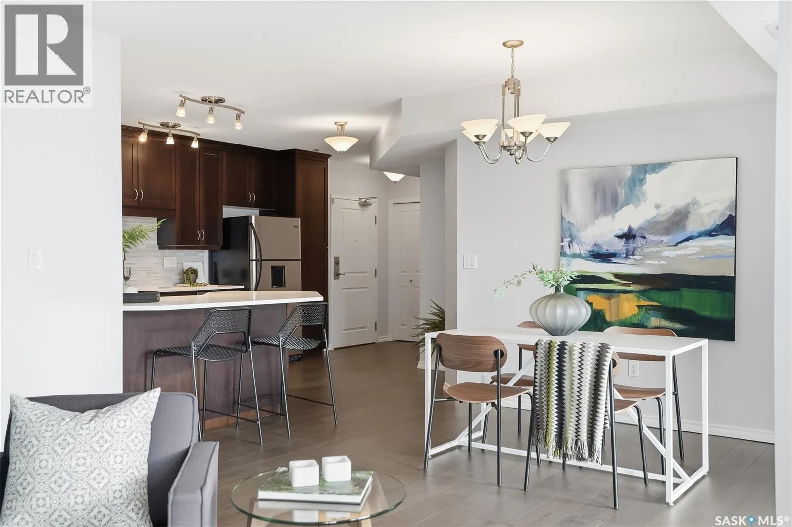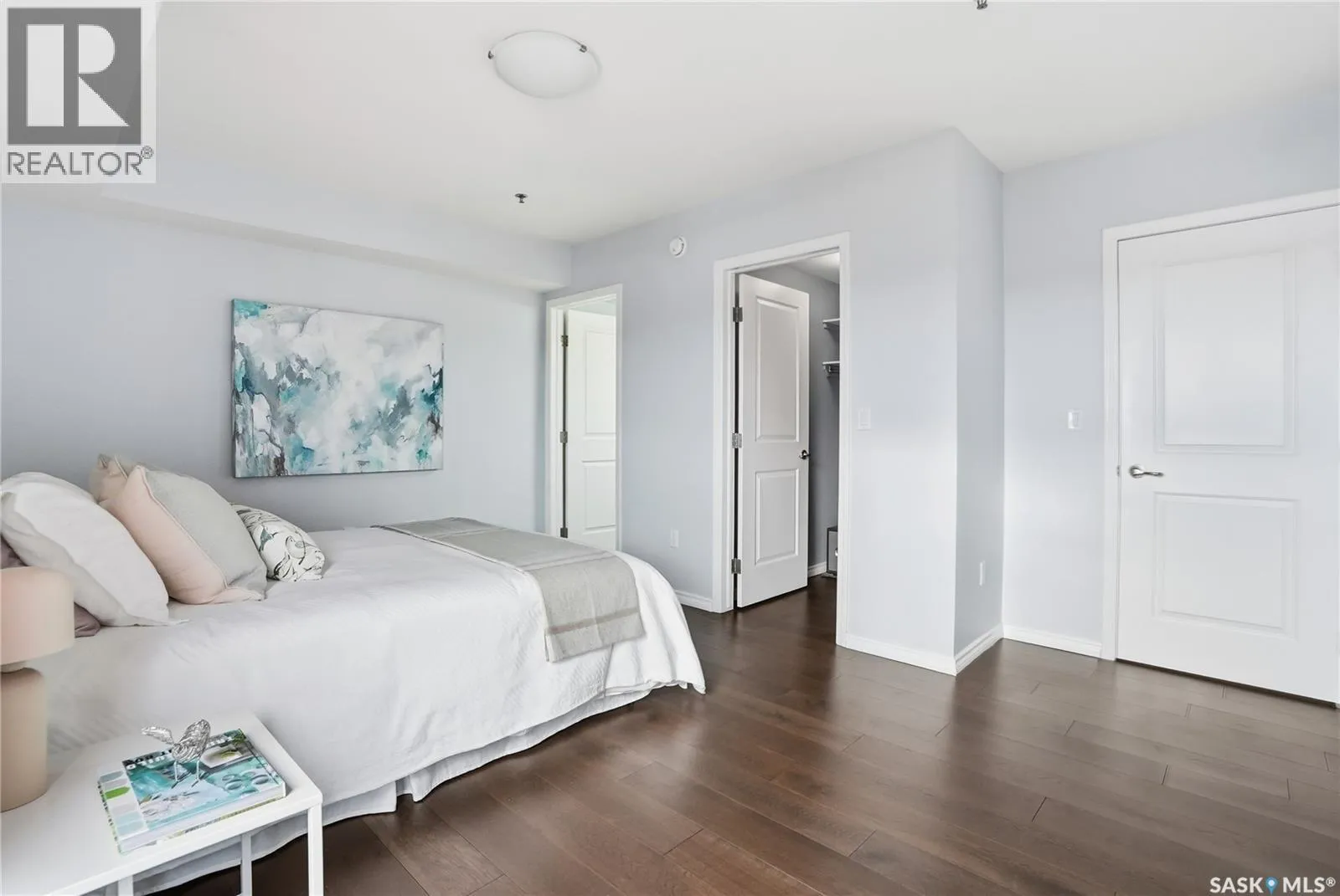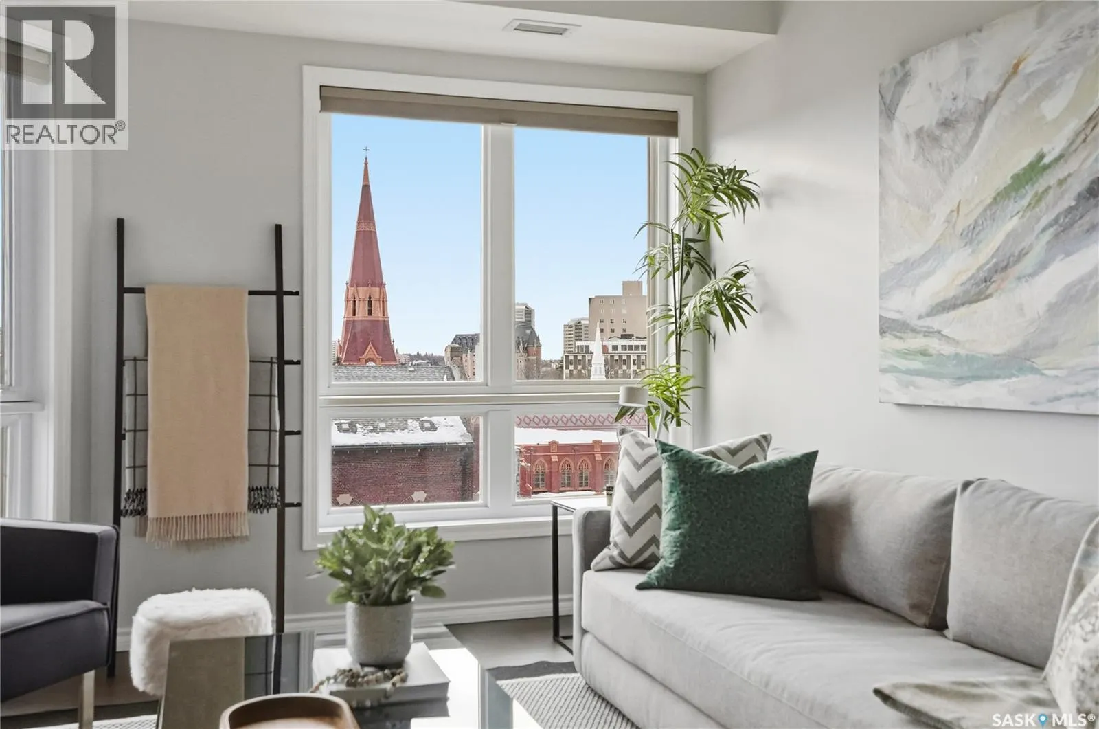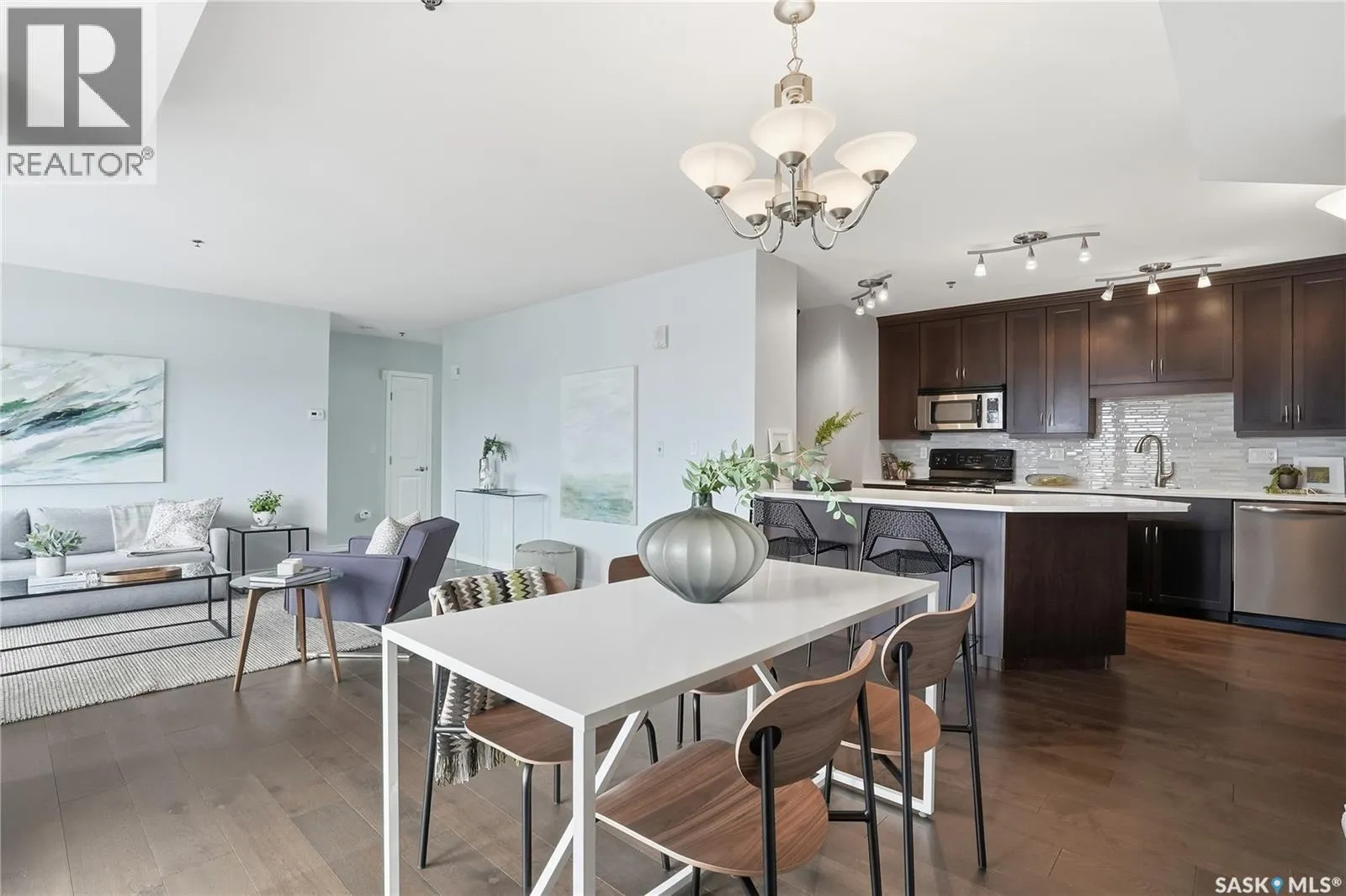 Experience riverfront living in this IMPECCABLE southeast-facing LUX condo in the heart of downtown Saskatoon. Offering 1,155 sq ft, this 2-bedroom, 2-bath unit features an UPDATED bright, open floor plan designed to take full advantage of the natural light and breathtaking river views. The kitchen is beautifully finished and underwent recent updates with modern cabinetry, newer gleaming quartz countertops, tile backsplash, and stainless steel appliances, and a peninsula opening to a spacious open concept living and dining area with oversize windows spanning the entire space, plus a large balcony that captures river and city views including the Meewasin park and the Cathedralâs tower! The entire space boasts newer (high end, recently installed) engineered hardwood flooring. Two spacious bedrooms, 2 full baths, and a primary walk-in closet, plus an in-suite storage/laundry room complete this lovely floor plan. Enjoy relaxing or entertaining on the private balcony with a natural gas BBQ hookup, overlooking not only the river, but also The Bessborough and Broadway Bridge. This unit includes 1 heated underground parking stall and a heated storage unit for added convenience. The building offers fantastic amenities, including a fitness room, a meeting room, and two guest suites. Ideally located along the Meewasin River Trail and park and steps from downtown restaurants, shops, and entertainment- the best of what our city offers!! (id:27476)