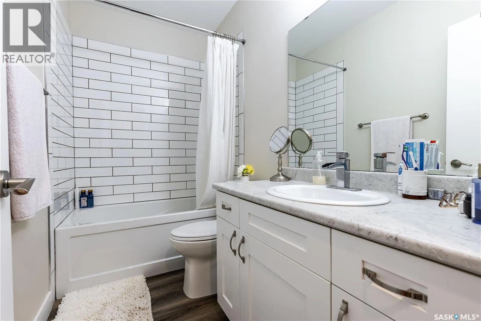 Welcome to 1037 7th Street East â a thoughtfully designed modern infill with a layout that just makes sense. The main floor offers a spacious, functional flow anchored by a large kitchen with ample cabinetry and a generous island, perfect for everyday living. A cozy fireplace adds warmth to the living area, while both front and rear entryways provide practical space with room for storage. A separate stairwell to the mechanical room is a smart touch you donât often see. Upstairs, the primary suite is a standout, featuring a walk-in closet and a well-appointed ensuite with a freestanding tub, tiled shower, and dual sinks. Two additional bedrooms are nicely sized, and second-floor laundry adds everyday convenience. The legal one-bedroom basement suite is bright, well laid out, and ideal for added income or extended living. The current tenant would be happy to stay, offering a seamless option for buyers looking for a mortgage helper. Outside, the home carries a clean, modern aesthetic with board and batten siding. Enjoy your morning coffee on the private balcony off the primary bedroom overlooking a mature, tree-lined street, or relax on the back deck. A double detached garage is complemented by a front concrete driveway for additional parking. A well-rounded home in a great location â ready for its next owner. (id:27476)
