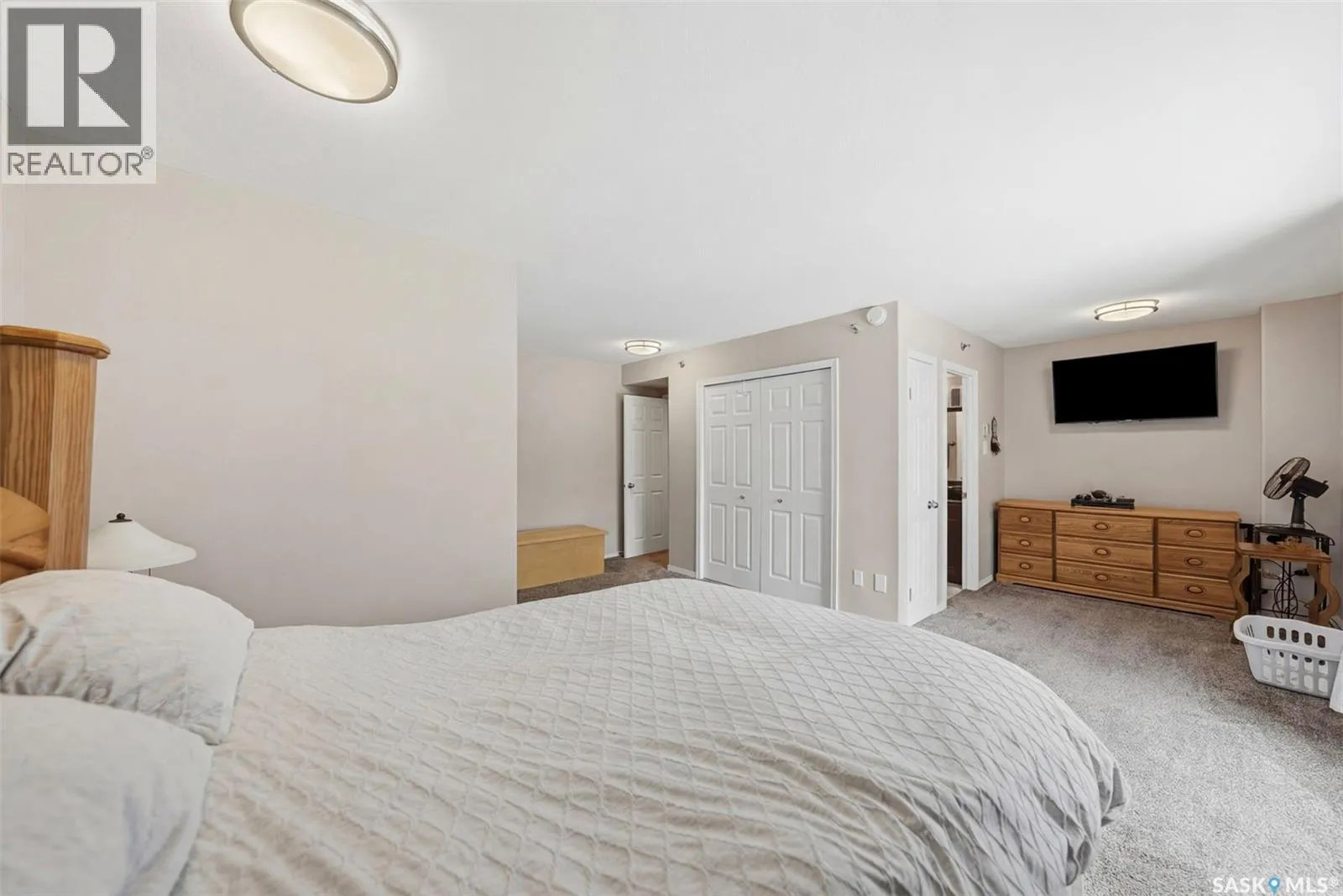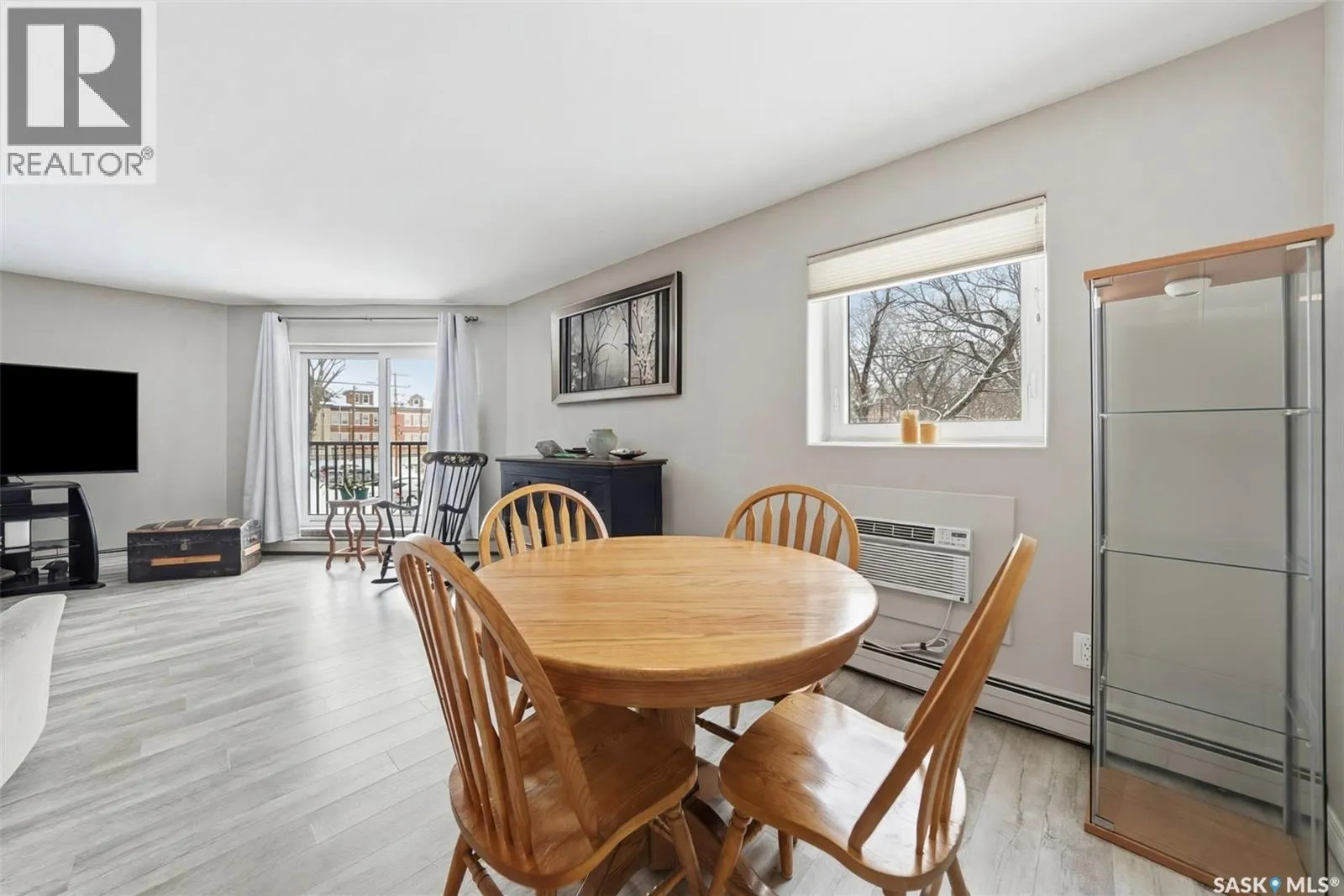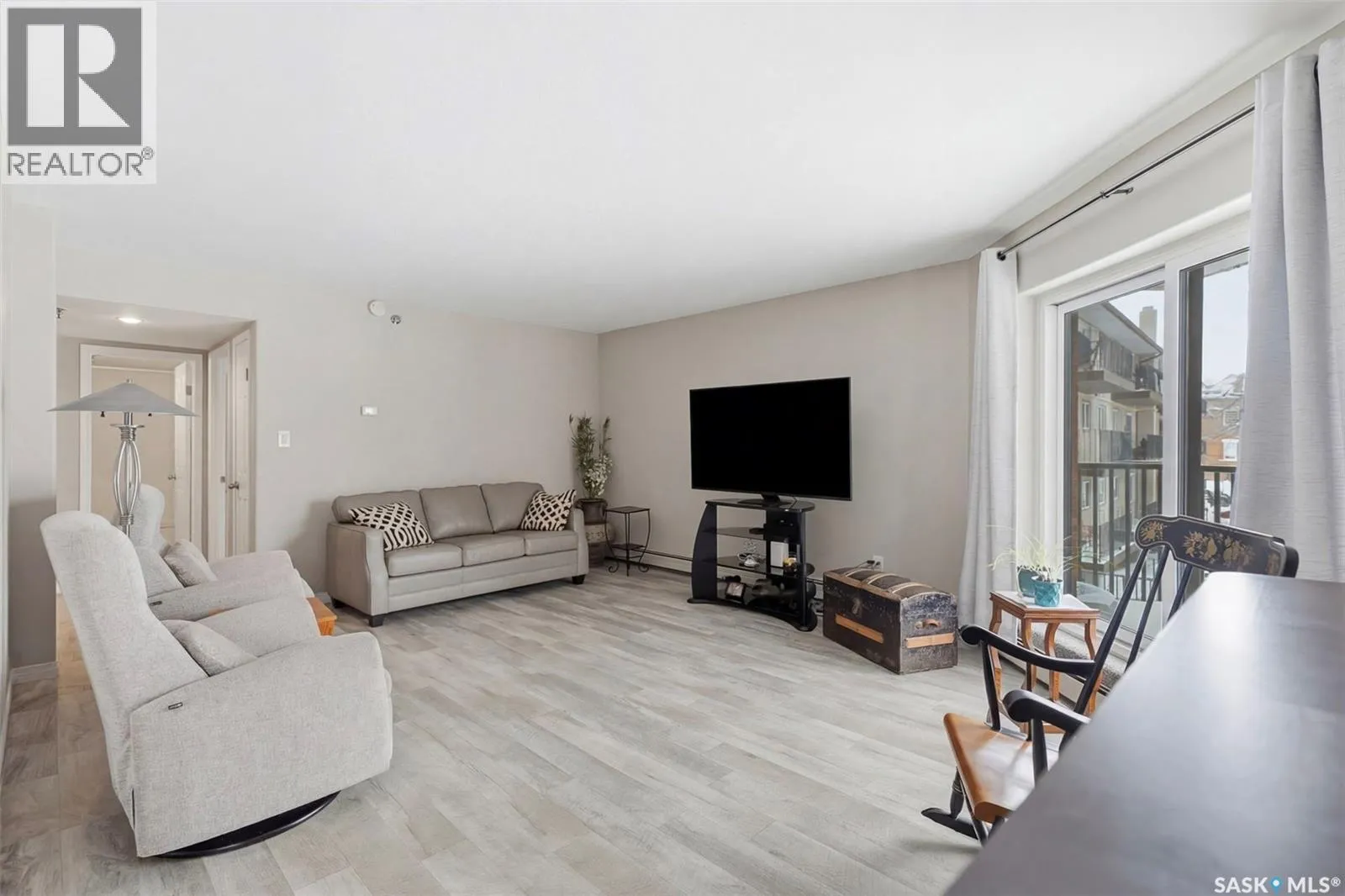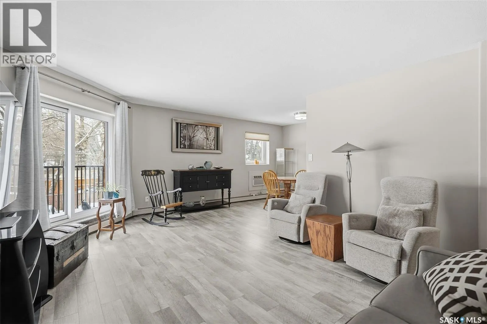 Amazing location on this fully renovated 2-bedroom, 2-bathroom condo in the heart of Nutana! This move-in-ready unit boasts two private balconies and two parking stalls for convenience and outdoor space. This unit has been updated in meticulous detail, including upgraded vinyl flooring and carpet throughout, refreshed lighting, trim, paint, baseboards, and doors. The kitchen has been completely redone with white cabinetry, a modern backsplash, upgraded countertops, and stainless steel appliances. The kitchen flows seamlessly into the dining area and living area. The large living room flows to the east facing deck, perfect for relaxing or entertaining. The primary bedroom is generously sized and includes double closets and a 4-piece en-suite, and its own private deck, while the secondary bedroom is also spacious and adjacent to the full main bathroom. A large laundry and storage room provide practical space for everyday living. Upgraded windows, doors, and blinds enhance the bright, open feel of the home, while a newer wall-mounted air conditioning unit keeps the space comfortable year-round. Residents enjoy building amenities such as a meeting room, gym, and sauna. The quiet, concrete building offers both privacy and durability. This building features recently replaced elevators and a redone entry and foyer. Ideally located just steps from the South Saskatchewan River, this condo is also close to restaurants, local shops, and the University of Saskatchewan. Perfect for those seeking a stylish, turn-key home in a vibrant, convenient neighborhood, this fully renovated Nutana condo is ready for you to move in and enjoy. Donât miss this opportunity to own a modern, updated condo in one of Saskatoonâs most desirable areas! (id:27476)