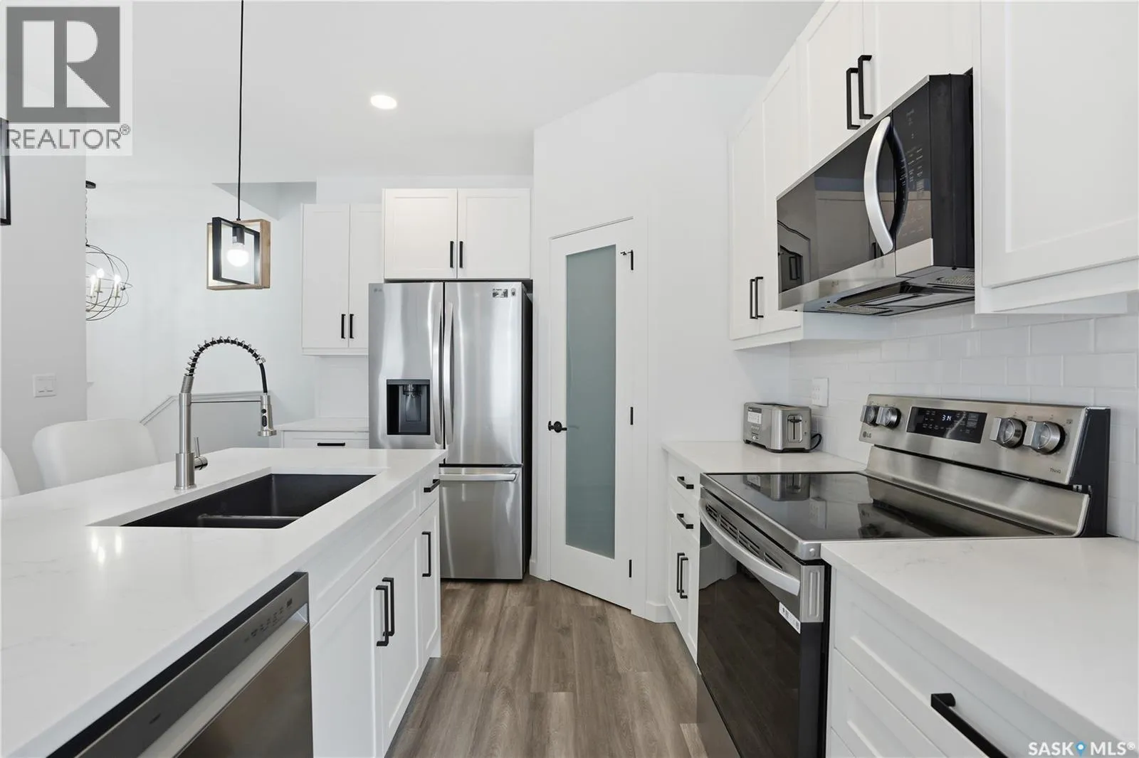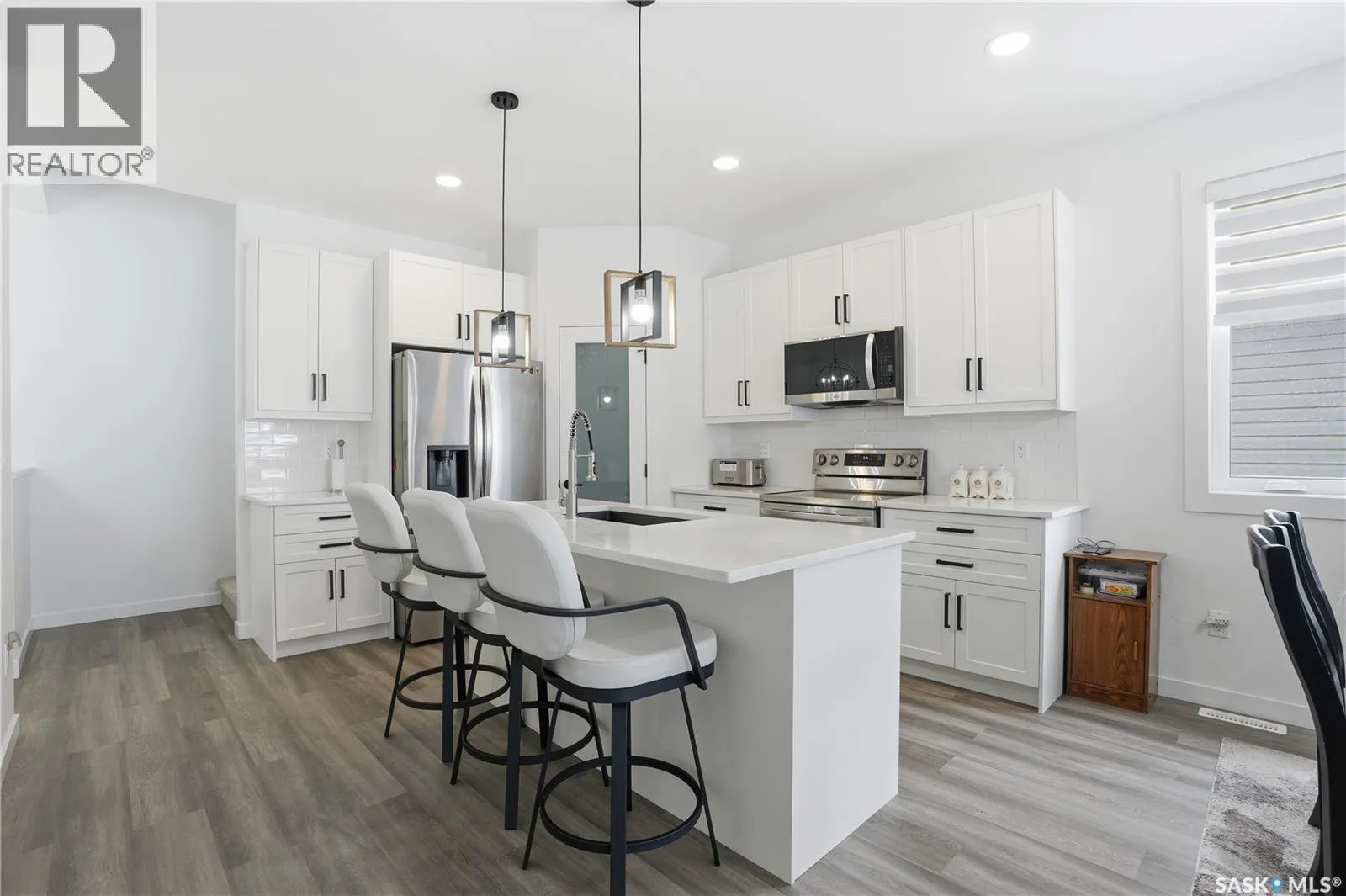 An Exceptional Modified Bi-level and a Legal 2-bedroom basement suiteâperfectly blending luxury, functionality, and income potential. From the moment you enter, youâre welcomed by an impressive, light-filled foyer that sets the tone for the homeâs bright and airy aesthetic. The main living space features vinyl plank flooring and a seamless open-concept layout, ideal for both everyday living and entertaining. At the heart of the home is a beautifully appointed kitchen, complete with a striking island, abundant cabinetry, a corner pantry, and sleek stainless steel appliances. Two well-sized bedrooms and a stylish full bathroom complete the main level. Privately situated on the upper level, the primary bedroom features a spacious walk-in closet, a lovely ensuite with a large shower, and the added convenience of nearby laundry. The lower level is thoughtfully designed with ample storage and direct access to the legal 2-bedroom suite. Bright and inviting, the suite offers its own private outside entrance, contemporary finishes, an open-concept living and kitchen area, two bedrooms, a full bathroom, and in-suite laundryâperfect for extended family or revenue opportunities. A double driveway and a fully finished 23â x 20â heated garage with gas furnace. This remarkable home is complete with custom blinds throughout and showcases quality, style, and versatility at every turn. (id:27476)