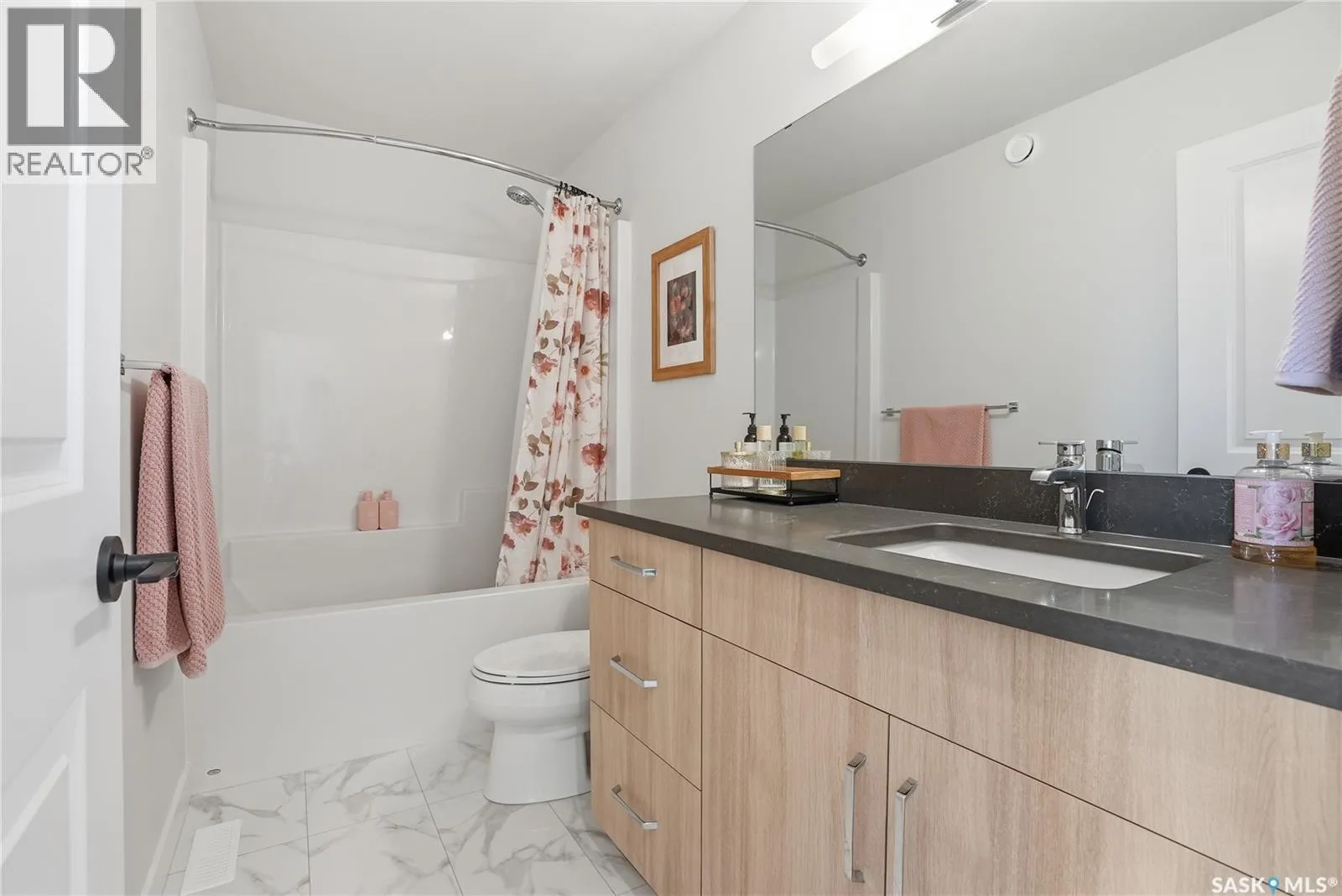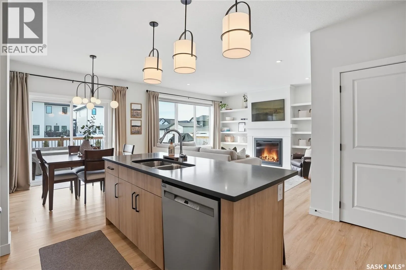 Located in the vibrant community of Brighton, this beautifully designed two-storey offers over 2,100 sq ft of thoughtfully planned living space. Blending style and function, this move-in ready home is perfectly suited for modern family living. The main floor is bright and inviting, featuring 9 ft ceilings and an open-concept layout ideal for everyday life and entertaining. A cozy gas fireplace anchors the living space, while a main-floor office adds flexibility for working from home or study space. The kitchen stands out with its two-tone cabinetry, quartz countertops, pantry, and direct-vent exhaust. Large windows bring in plenty of natural light, enhancing the homeâs warm and welcoming feel. Upstairs, youâll find 4 bedrooms, a spacious bonus room, 2 full bathrooms, and convenient second-floor laundry, offering both comfort and practicality for busy households. Additional highlights include a double attached garage and a fully finished exterior with a large treated deck and vinyl fencing, creating a great outdoor space for relaxing or entertaining. Ideally located with easy access in and out of the neighbourhood and close to amenities, this is a fantastic opportunity to own a well-appointed home in one of Saskatoonâs most sought-after communities. (id:27476)