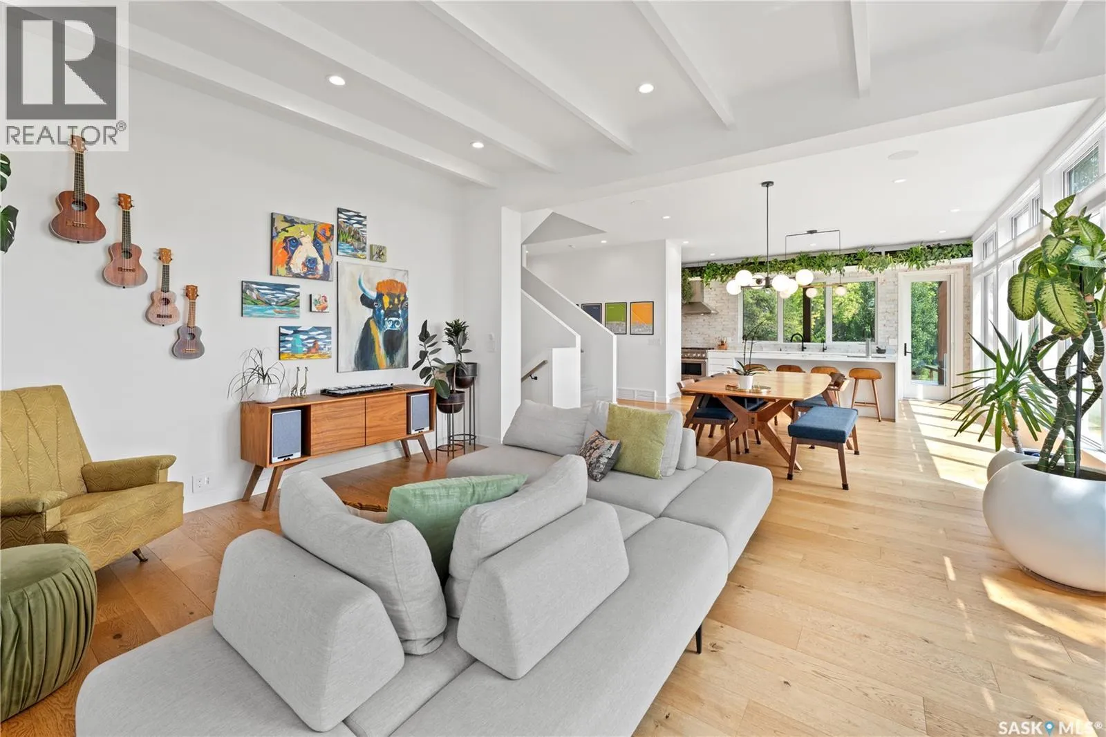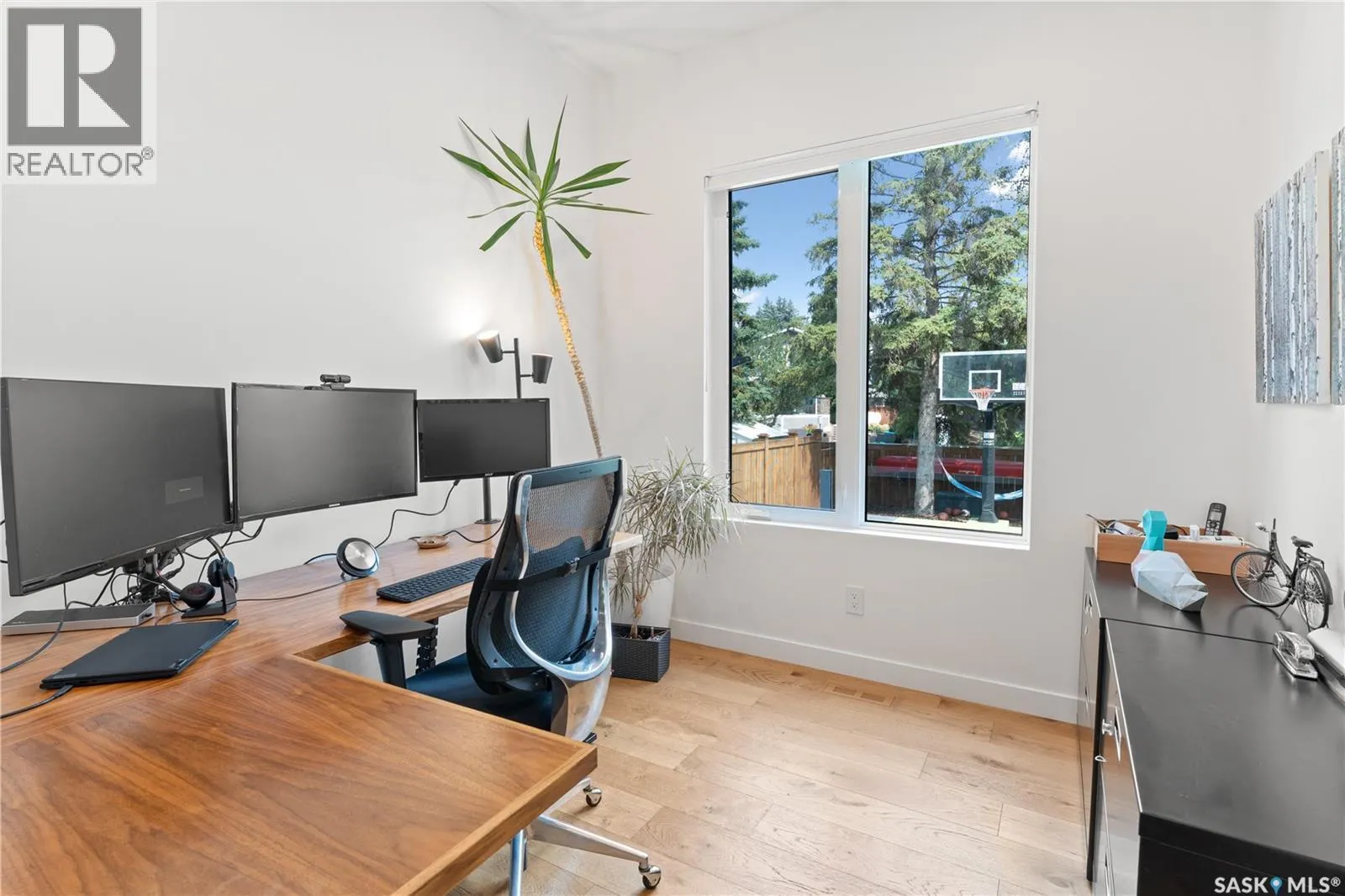 Parcel(s) 119067903 Unrivaled Masterpiece in River Heights! Experience a rare alignment of luxury and location. This custom-built MAISON home (2020) offers a front-row seat to the Meewasin Valley Park, boasting panoramic 180 degree river & park views and doorstep access to the best of Saskatoon's outdoor recreation. Immaculate and fully finished, this home offers a level of turn-key detail that is impossible to find in today's market. An intuitive layout and countless interior features are designed for both large social gatherings and quiet family moments. Oversized windows on all three floors flood the home with natural light and park vistas. Outside, the transition is seamless: enjoy the concrete-pad sport court, a dream garage, mature professional landscaping and expansive heated decks nestled under a private tree canopy. Skip the multi-year design and construction process. This is a rare opportunity to acquire a "better-than-new" architectural infill in an incomparable location at a value that defies todayâs rising build costs. This home MUST BE VIEWED to discover the many features and appreciate the peaceful ,serene setting! PUBLIC OPEN HOUSES-FRIDAY April 3rd 2-4pm,SATURDAY April 4th 2-4pm and SUNDAY April 5th 2-4pm.CLICK VIDEO(Multimedia) BUTTON ON REALTOR.ca for Detailed Feature Sheet,Floor Plans & 130+ pics. As per the Sellerâs direction, all offers will be presented on 04/12/2026 4:00PM. (id:27476)