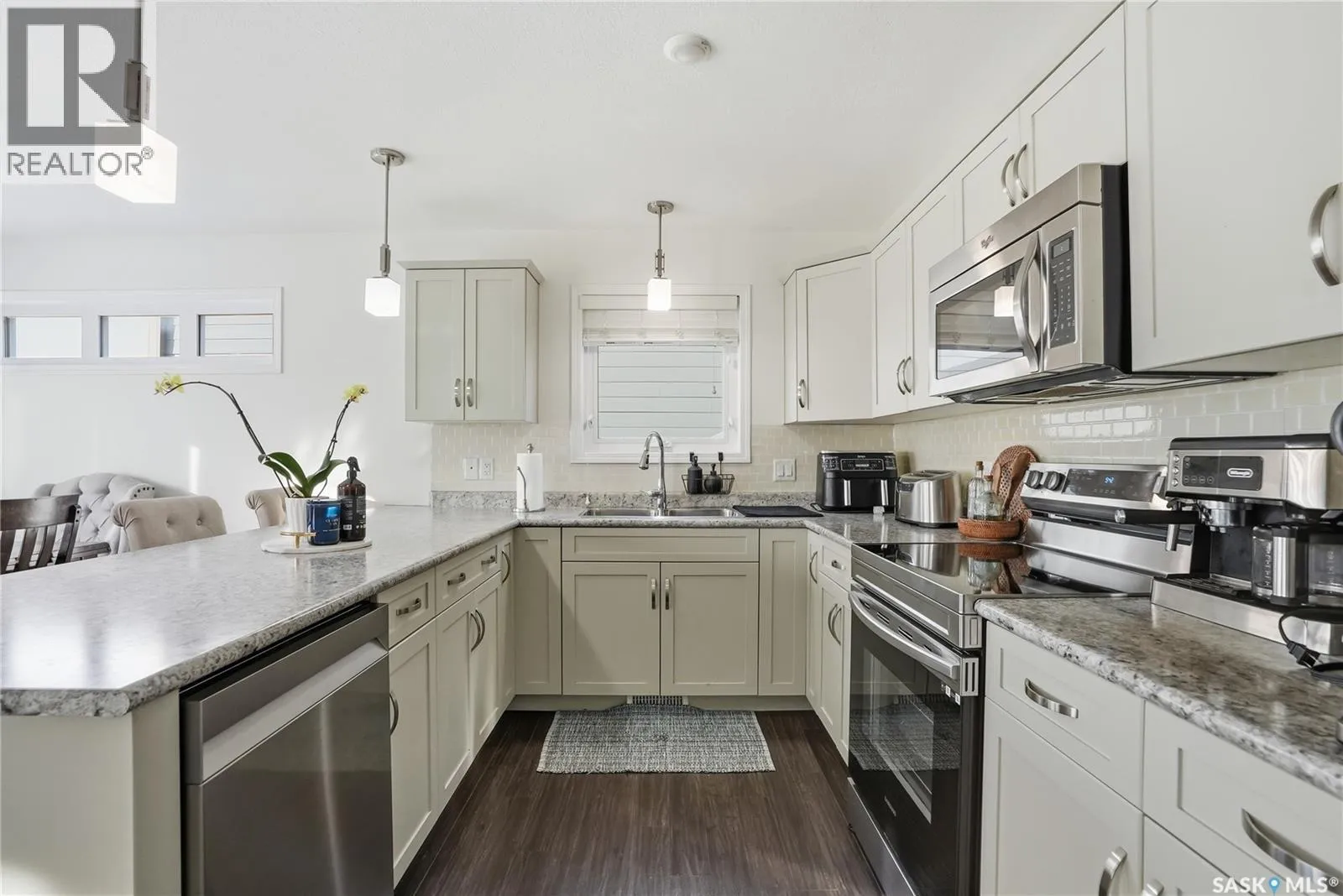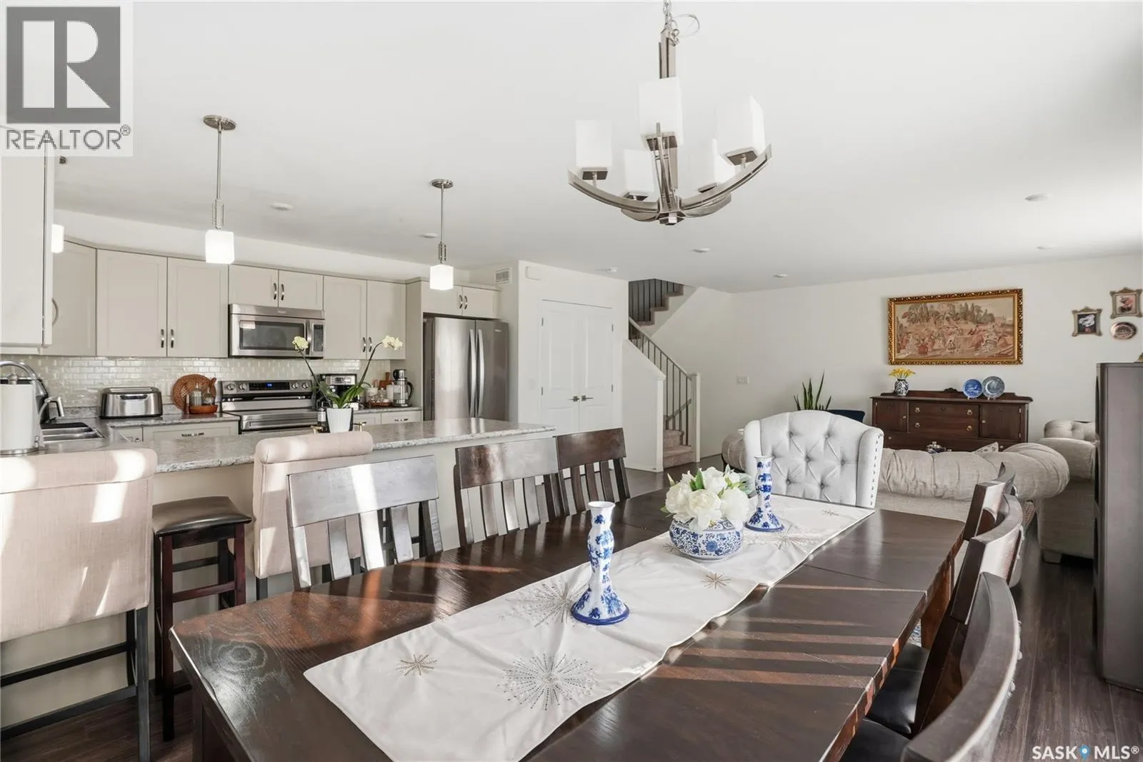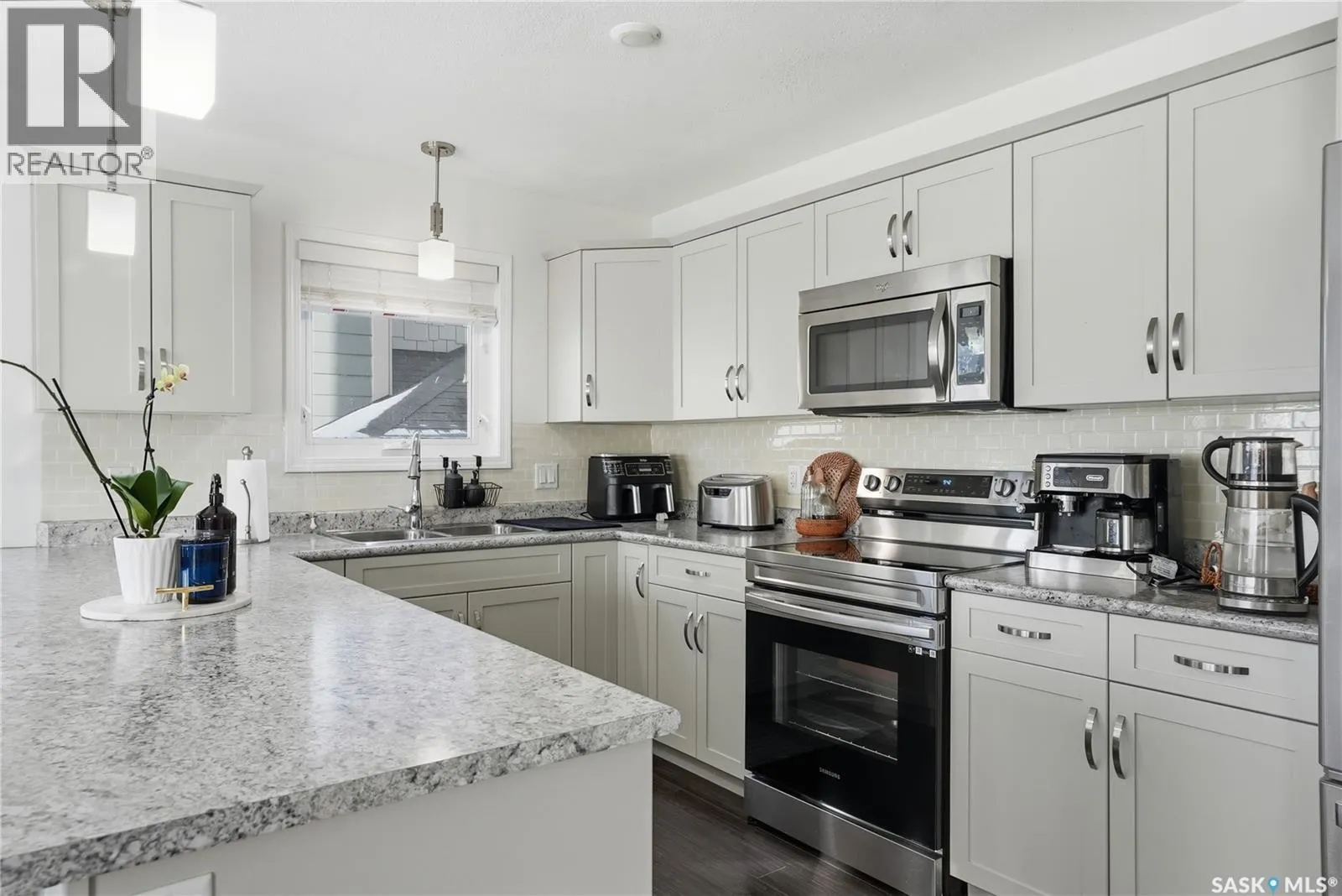 Welcome to 223 Eaton Crescent, a stunning North Prairieâbuilt 1,581 sq. ft. split level in the heart of the Meadows. This home is designed for modern living, with bright, open spaces and thoughtful finishes throughout. Step into the spacious foyer and head upstairs to your main living area, where natural light pours in through large windows. The open-concept design makes entertaining effortless, with a stylish kitchen featuring a generous peninsula, stainless steel appliances, and a walk-in pantry. Upstairs, the huge primary suite offers a private retreat with a walk-in closet and a spa-like 4-piece ensuite. A convenient half bath is tucked into the stairwell area, while the third floor boasts a versatile bonus room, two additional bedrooms, another 4-piece bathroom, and a large walk-in laundry closet. The fully developed basement expands your living space with a massive family room and a half bath (with potential to convert to a full bath). Outside, enjoy a finished backyard complete with deck, fencing, landscaping, driveway, and a front sprinkler system for easy lawn careâeverything move-in ready. This home truly has it all: space, style, and comfort in one of Saskatoonâs most desirable communities. Donât miss your chance to make it yours! As per the Sellerâs direction, all offers will be presented on 04/05/2026 12:01AM. (id:27476)