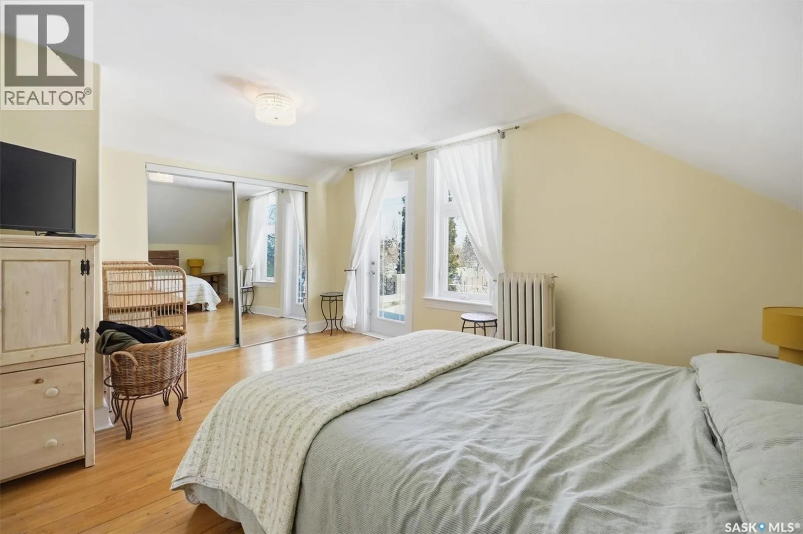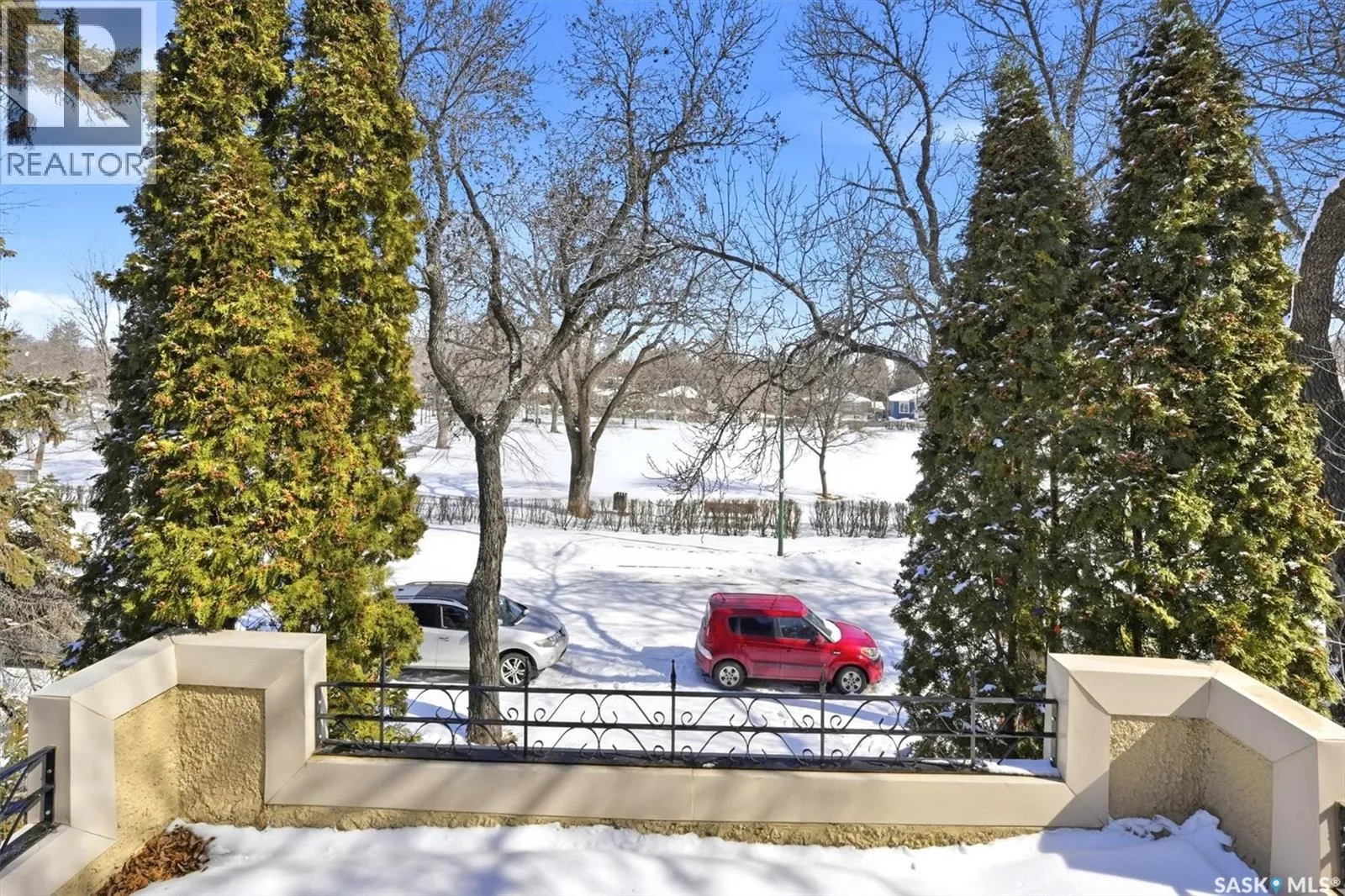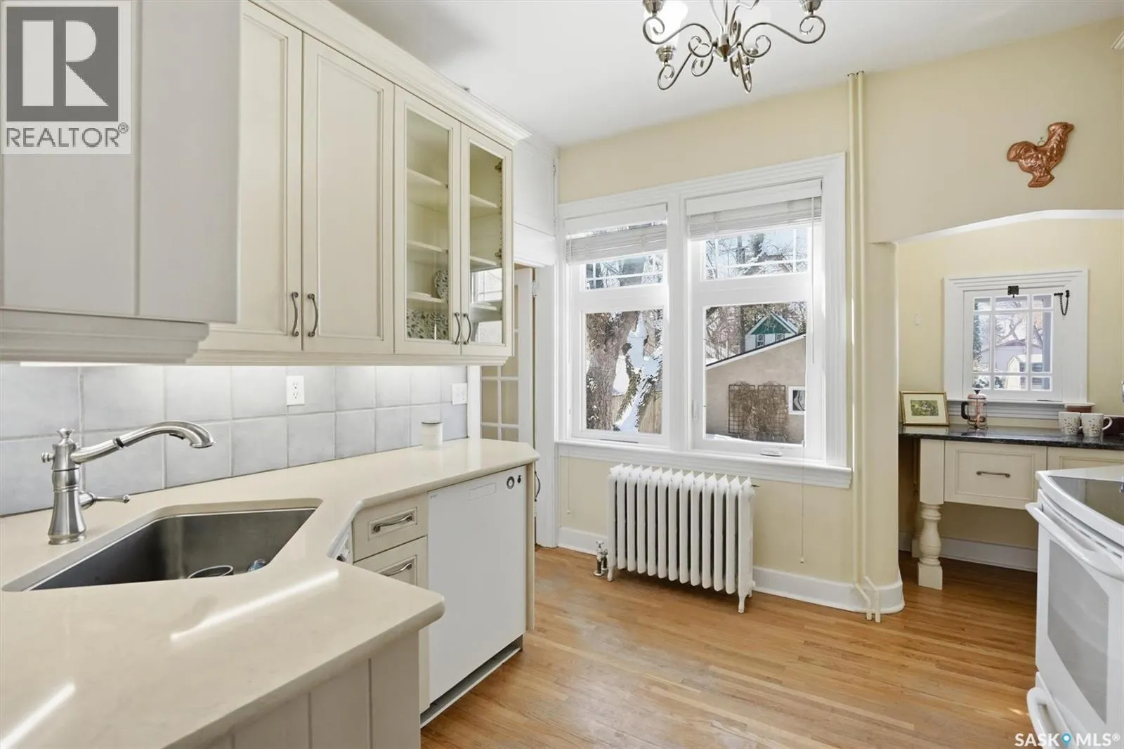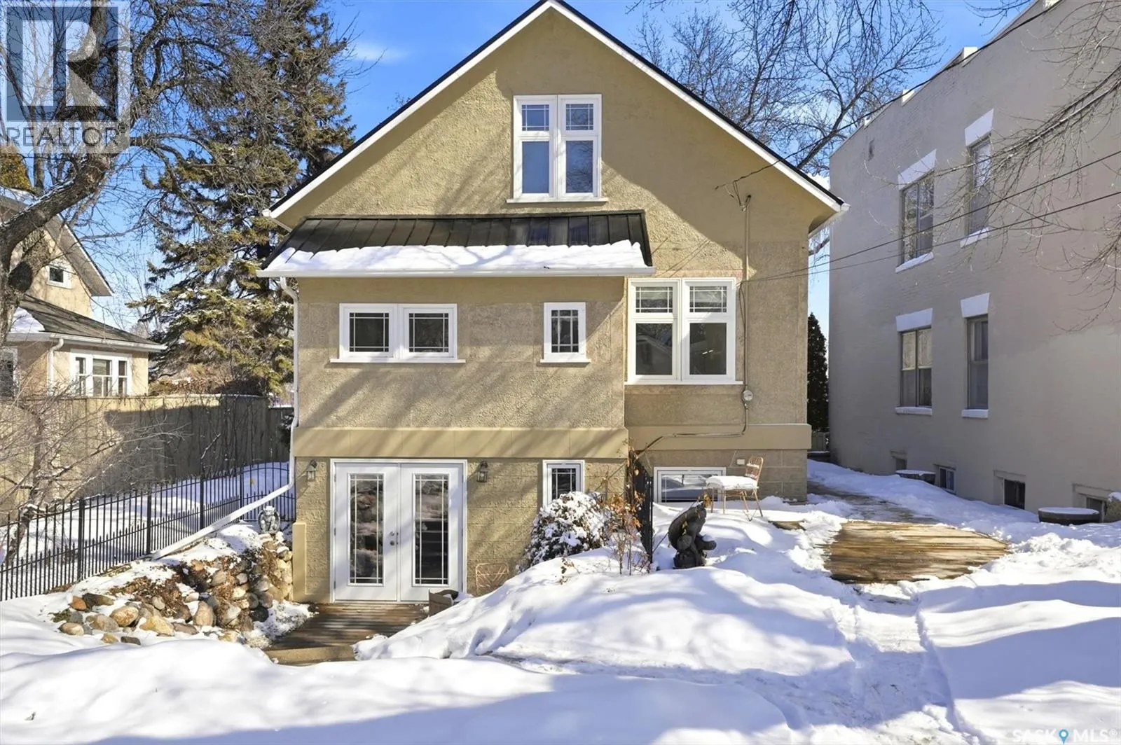 A truly rare home where timeless character, crown mouldings, archways, and a bright walkout basement come together in a way you donât often see. Set on a 50 x 134 ft. lot across from Wilson Park and just steps to the river, this property immediately stands out for its craftsmanship and attention to detail. The spacious front foyer offers flexibility as a sitting area or office and leads into a warm, inviting living room with a wood-burning fireplace. The living and dining spaces are truly special, featuring detailed ceilings, crown mouldings, and stunning archways that create a seamless, elegant flow throughout. The kitchen is both functional and thoughtfully updated with high-quality Redl cabinetry, quartz countertops, and a dedicated coffee bar or prep space with granite in the nook. The main floor includes a versatile bedroom or office and a full four-piece bathroom with stained glass windows and a claw foot tub. Upstairs, the primary bedroom features a private balcony overlooking the park, along with a second bedroom and a three-piece bathroom. The walkout basement is a standout bright, open, and beautifully finished with in-floor heating. The spacious family room is filled with natural light and opens directly to the backyard through garden doors. This level also offers an additional bedroom, a three-piece bathroom with walk-in shower, and a generous laundry area. Wet bar rough-in provides excellent potential for entertaining or a future suite. The backyard feels private and established with mature greenery, patio space, garden boxes, and a shed. Additional features include a heated double detached garage, on-demand hot water, and extensive upgrades to mechanical, plumbing, electrical, along with metal roofing and fiberglass fascia on both the house and garage. Located minutes to City Park Elementary, City Hospital, and quick access to main routes, this is a rare opportunity to own a character home where pride of ownership shines throughout. (id:27476)