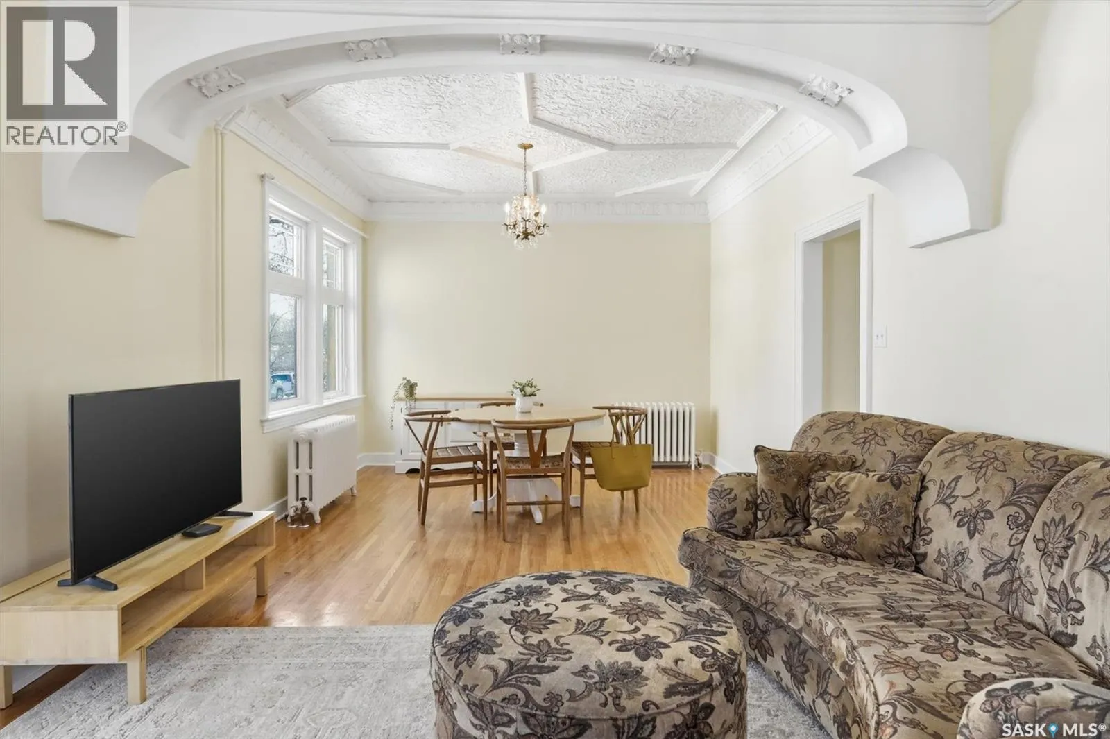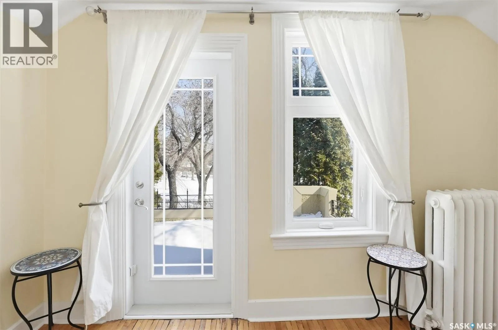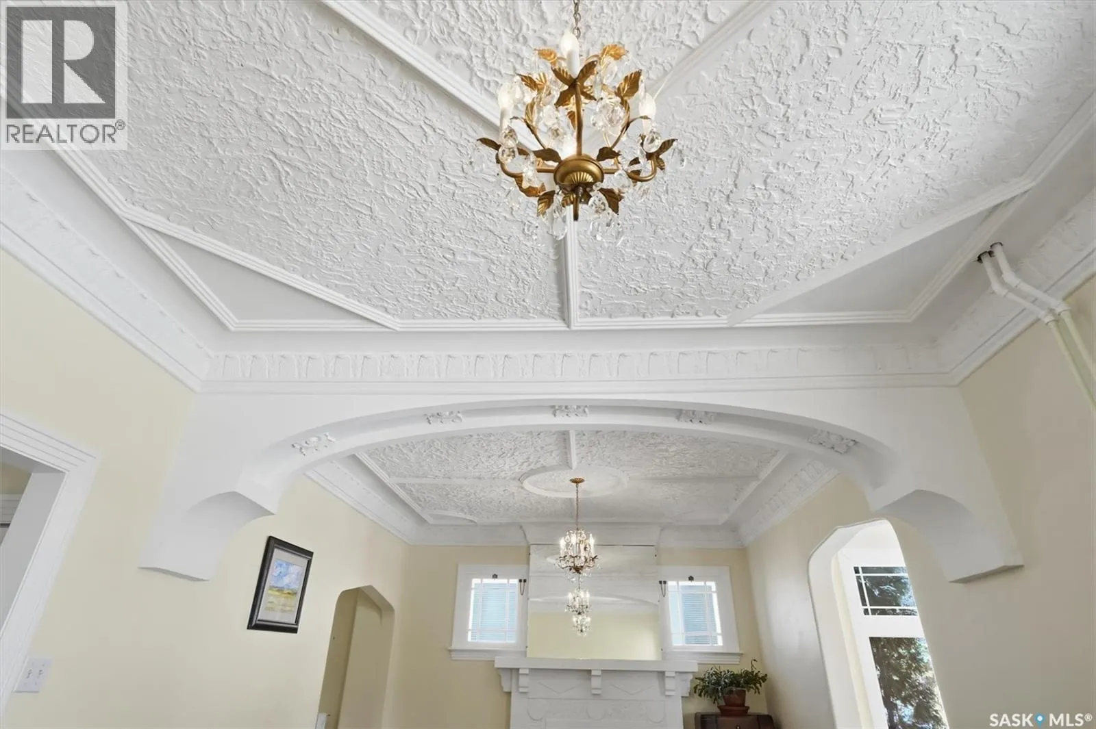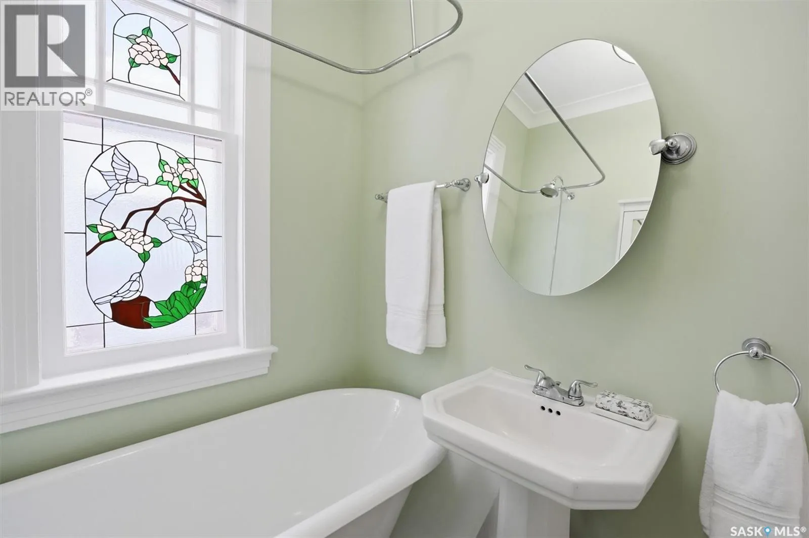 A truly rare home where timeless character, crown mouldings, archways, and a bright walkout basement come together in a way you donât often see. Set on a 50 x 134 ft. lot across from Wilson Park and just steps to the river, this property immediately stands out for its craftsmanship and attention to detail. The spacious front foyer offers flexibility as a sitting area or office and leads into a warm, inviting living room with a wood-burning fireplace. The living and dining spaces are truly special, featuring detailed ceilings, crown mouldings, and stunning archways that create a seamless, elegant flow throughout. The kitchen is both functional and thoughtfully updated with high-quality Redl cabinetry, quartz countertops, and a dedicated coffee bar or prep space with granite in the nook. The main floor includes a versatile bedroom or office and a full four-piece bathroom with stained glass windows and a claw foot tub. Upstairs, the primary bedroom features a private balcony overlooking the park, along with a second bedroom and a three-piece bathroom. The walkout basement is a standout bright, open, and beautifully finished with in-floor heating. The spacious family room is filled with natural light and opens directly to the backyard through garden doors. This level also offers an additional bedroom, a three-piece bathroom with walk-in shower, and a generous laundry area. Wet bar rough-in provides excellent potential for entertaining or a future suite. The backyard feels private and established with mature greenery, patio space, garden boxes, and a shed. Additional features include a heated double detached garage, on-demand hot water, and extensive upgrades to mechanical, plumbing, electrical, along with metal roofing and fiberglass fascia on both the house and garage. Located minutes to City Park Elementary, City Hospital, and quick access to main routes, this is a rare opportunity to own a character home where pride of ownership shines throughout. (id:27476)