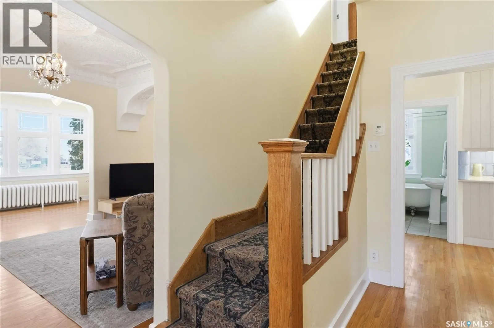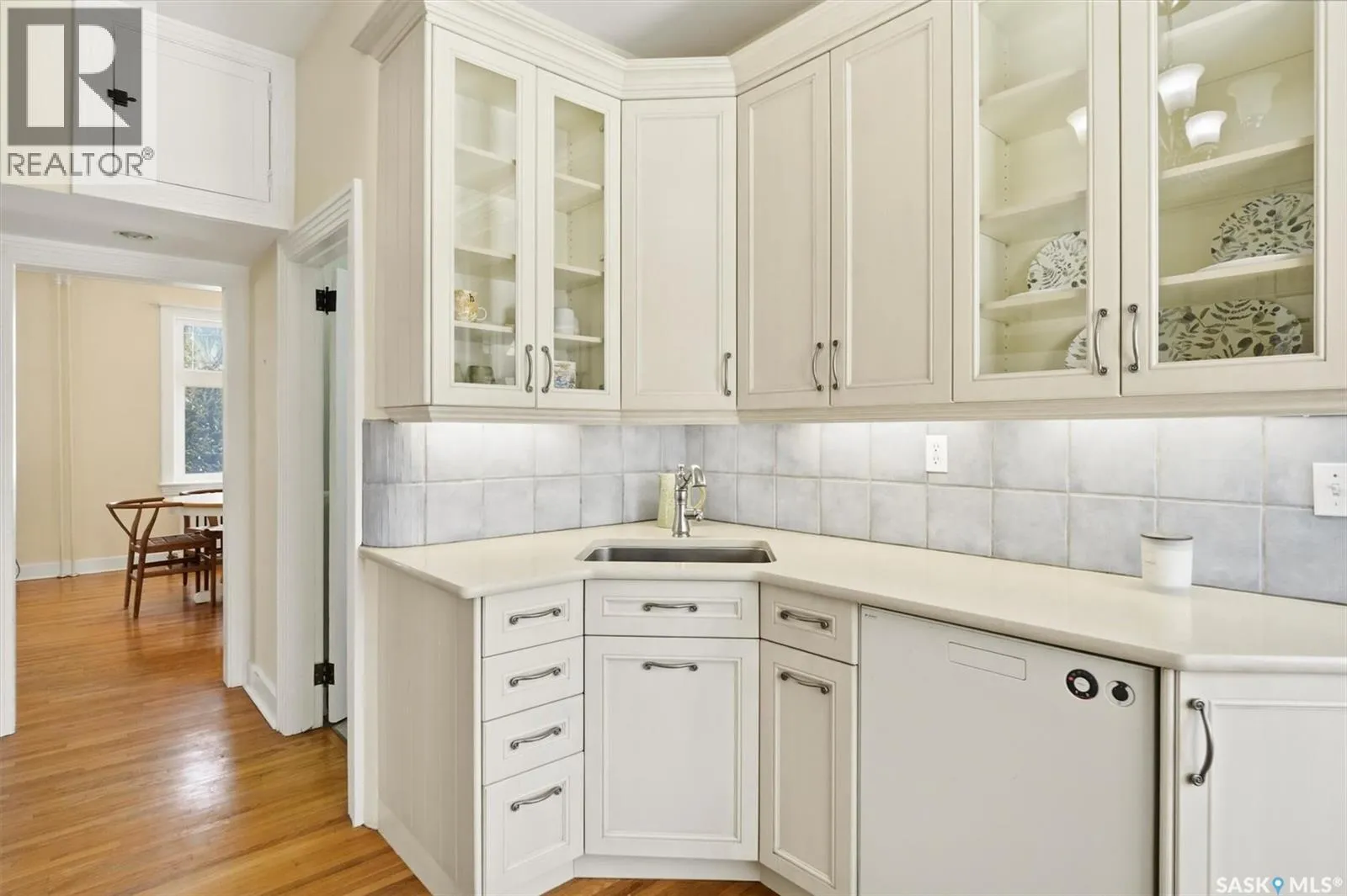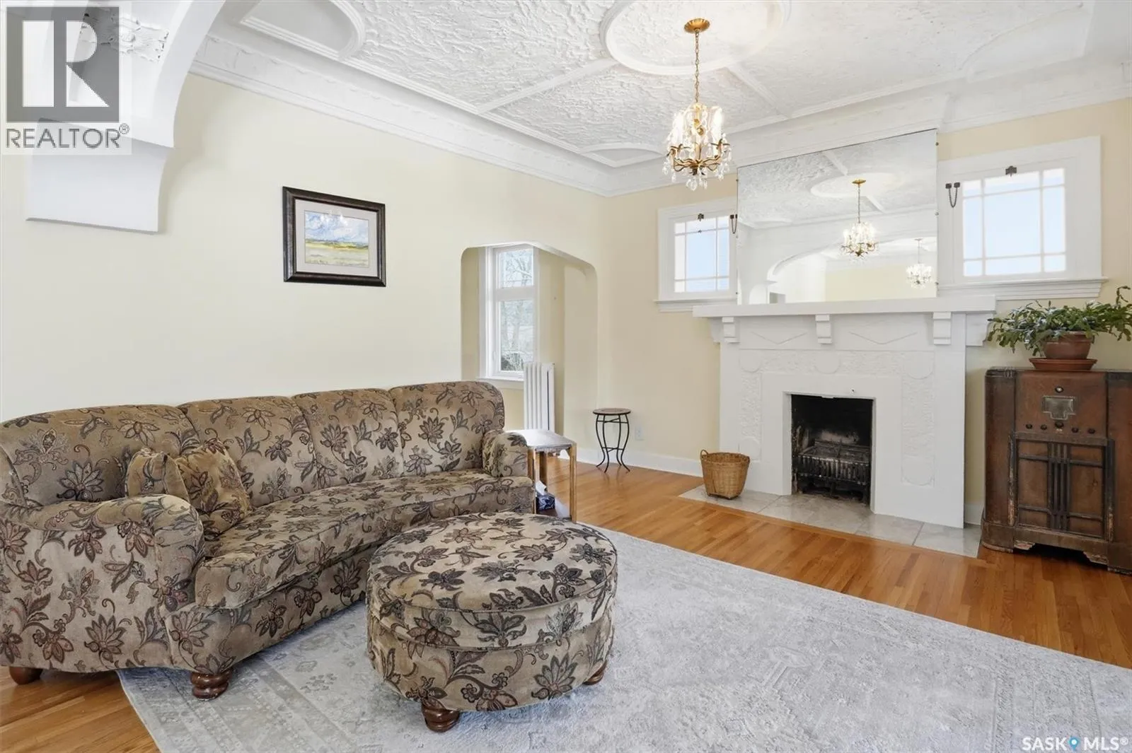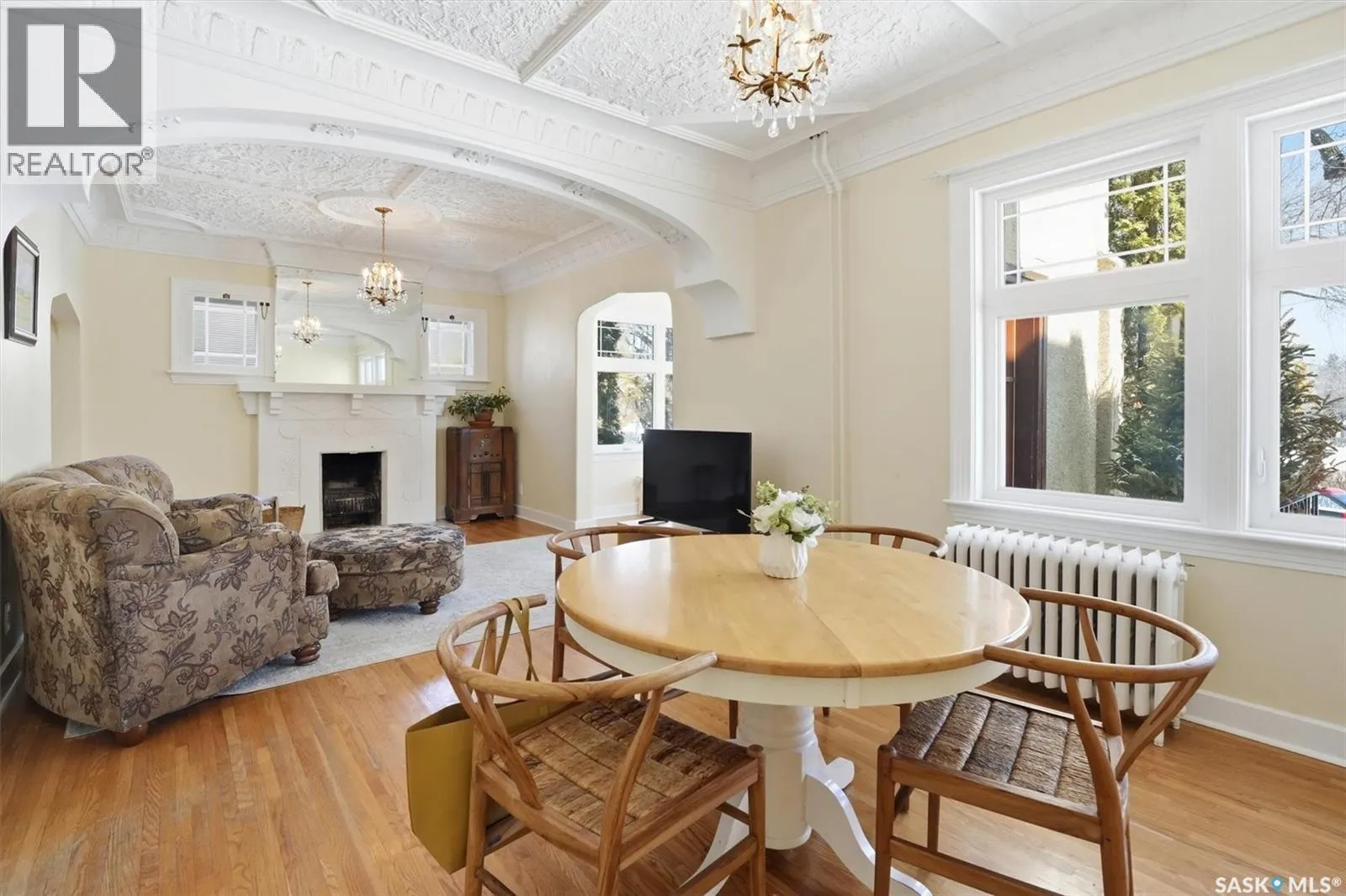 A truly rare home where timeless character, crown mouldings, archways, and a bright walkout basement come together in a way you donât often see. Set on a 50 x 134 ft. lot across from Wilson Park and just steps to the river, this property immediately stands out for its craftsmanship and attention to detail. The spacious front foyer offers flexibility as a sitting area or office and leads into a warm, inviting living room with a wood-burning fireplace. The living and dining spaces are truly special, featuring detailed ceilings, crown mouldings, and stunning archways that create a seamless, elegant flow throughout. The kitchen is both functional and thoughtfully updated with high-quality Redl cabinetry, quartz countertops, and a dedicated coffee bar or prep space with granite in the nook. The main floor includes a versatile bedroom or office and a full four-piece bathroom with stained glass windows and a claw foot tub. Upstairs, the primary bedroom features a private balcony overlooking the park, along with a second bedroom and a three-piece bathroom. The walkout basement is a standout bright, open, and beautifully finished with in-floor heating. The spacious family room is filled with natural light and opens directly to the backyard through garden doors. This level also offers an additional bedroom, a three-piece bathroom with walk-in shower, and a generous laundry area. Wet bar rough-in provides excellent potential for entertaining or a future suite. The backyard feels private and established with mature greenery, patio space, garden boxes, and a shed. Additional features include a heated double detached garage, on-demand hot water, and extensive upgrades to mechanical, plumbing, electrical, along with metal roofing and fiberglass fascia on both the house and garage. Located minutes to City Park Elementary, City Hospital, and quick access to main routes, this is a rare opportunity to own a character home where pride of ownership shines throughout. (id:27476)