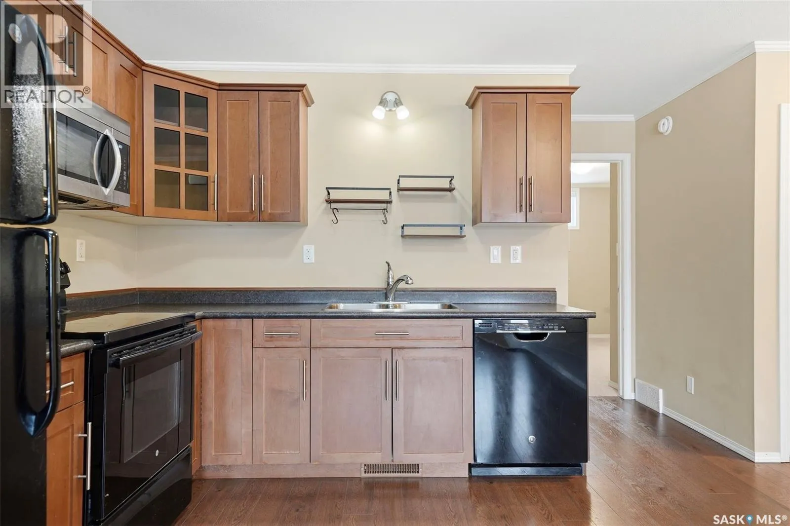 Welcome to 103â275 Pringle Lane, ideally located in the highly sought-after community of Stonebridge. This bright and inviting 2-bedroom property is well-suited for families, downsizers, or students alike. Enjoy a sunny, south-facing front yard overlooking a quiet residential street. The space is partially fenced and features a patioâperfect for relaxing and making the most of long summer days. The well-maintained lawn is cared for by the complex, offering a great outdoor area for children to play. This stylish and well-kept home features two generously sized bedrooms and a spacious 4-piece bathroom. The open-concept layout includes a large living area filled with natural light, ideal for both everyday living and entertaining. The modern kitchen is equipped with maple cabinetry and a dedicated dining area. Upgrades include high-quality laminate flooring throughout the main living space, 3-inch crown moulding, in-suite front-loading washer and dryer, and a custom blinds package. This home offers enhanced comfort and efficiency with triple-pane windows, a high-performance front door, upgraded insulation, and soundproofing. Additional updates include a newer on-demand hot water system, along with a recently replaced water heater (2021), washer and dryer (2024), and microwave (2024). Ample storage is available in the crawl space beneath the unit, perfect for seasonal items. The unit includes one electrified surface parking stall, with plenty of visitor and street parking available. A standout feature of this home is its quiet street-facing location, offering both privacy and tranquility.Contact today to schedule a private showing of this exceptional condo. (id:27476)