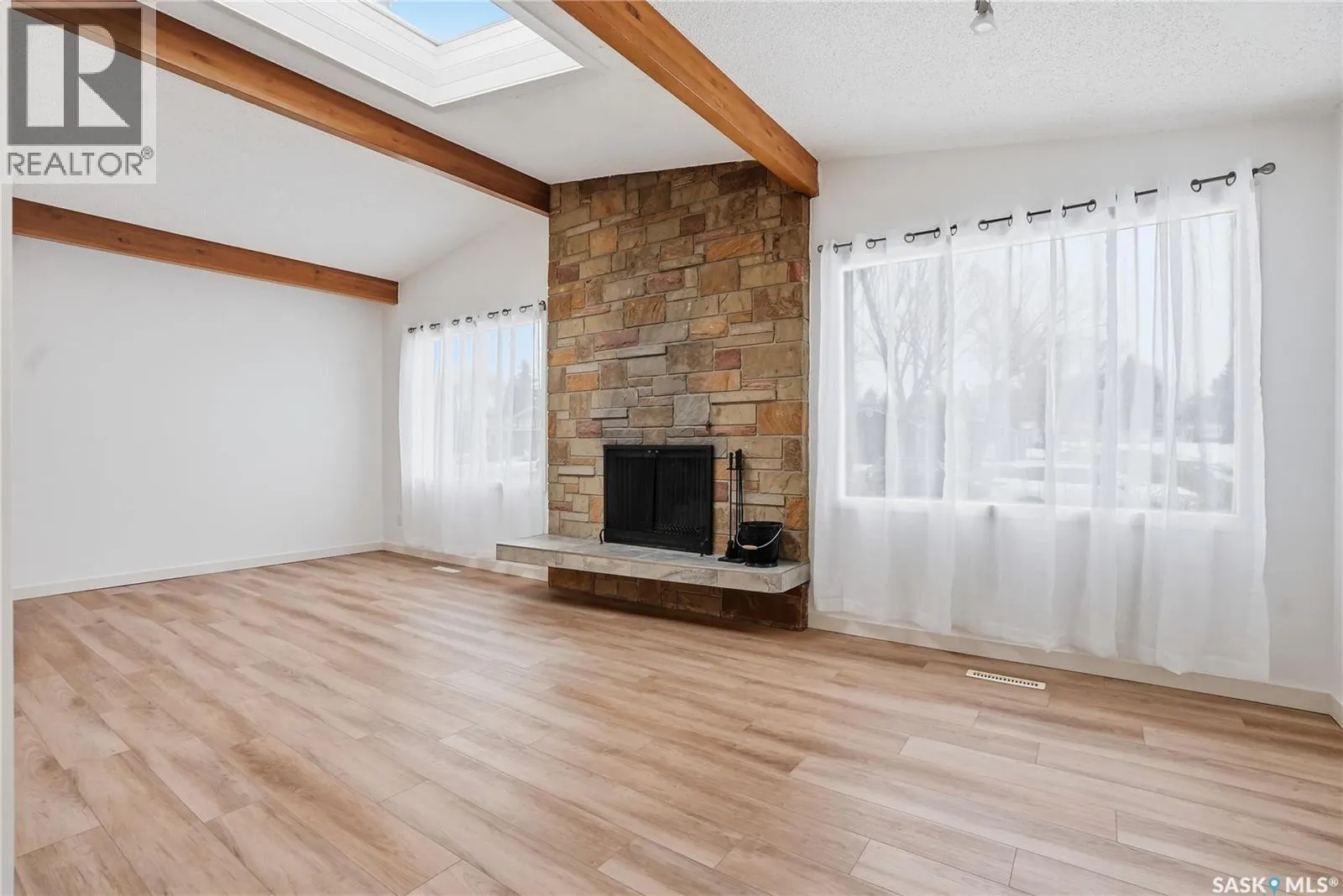 Beautiful mid-century modern bungalow in the highly sought-after Brevoort Park neighbourhood - an unbeatable location close to everything. This home has that classic mid-century feel with vaulted ceilings, skylights, and a cozy wood-burning fireplace that really anchors the space. There are two large skylights letting in natural sunlight along with all the large windows! The main floor features durable vinyl plank flooring throughout, giving it a clean, updated look while still tying into the homeâs original character. Youâll also find a recently refreshed kitchen, plus a renovated 4-piece bathroom on the main. The main floor easily can have another bedroom added - you'll have to come over and have a look. Downstairs offers plenty of extra living space with a large family room, an additional bedroom, and a convenient 2-piece bathroom - perfect for guests or a growing family. Outside, thereâs a large yard and plenty of space for parking. The location really sets it apart - walking distance to schools and a huge park with a paddling pool, skating rink, sledding hill, and walking paths. Quick access to Circle Drive and 8th Street makes commuting anywhere in the city simple. A great mix of mid-century style, smart updates, and one of Saskatoonâs most desirable neighbourhoods. (id:27476)