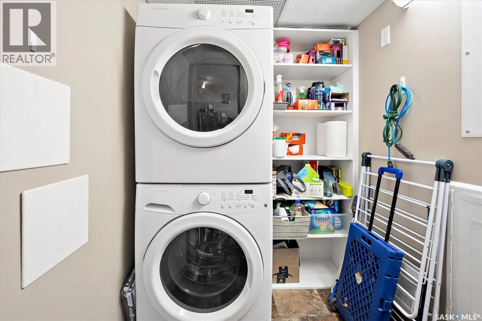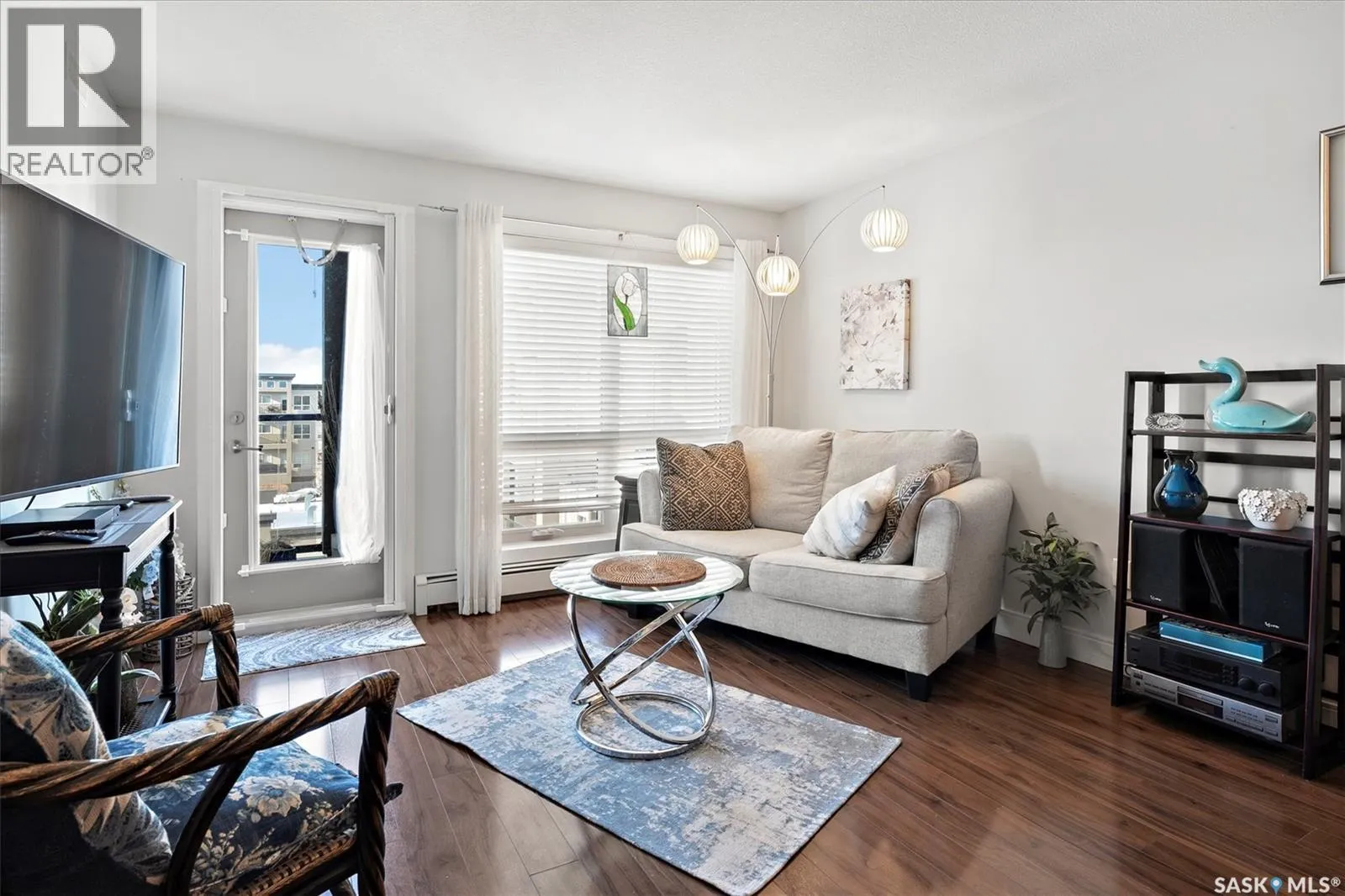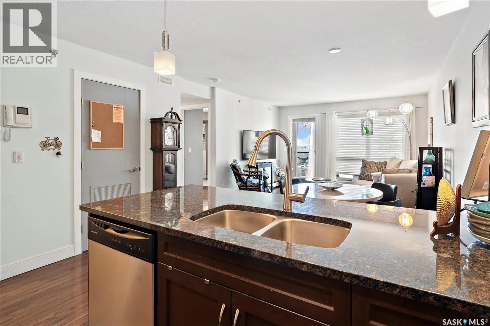 Welcome to Willowgrove Suites, built by Riverbend Developments. This 776 sq. ft. top-floor unit features two bedrooms, a spacious main bathroom, a large laundry/storage room, and an open-concept living area. The living space is highlighted by granite countertops, maple cabinetry, laminate flooring, stainless steel kitchen appliances, and in-suite washer and dryer. Enjoy the covered balcony with south and west exposure, complete with a natural gas BBQ hookupâperfect for relaxing or entertaining. This unit also includes underground parking and a storage locker. The building is well-maintained and offers access to a large multipurpose facility shared with the neighboring building. Flexible possession is available, and the unit shows beautifully. (id:27476)