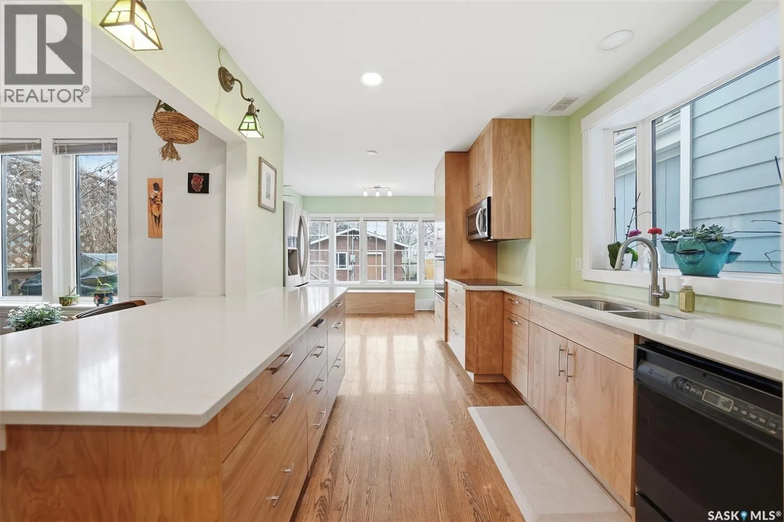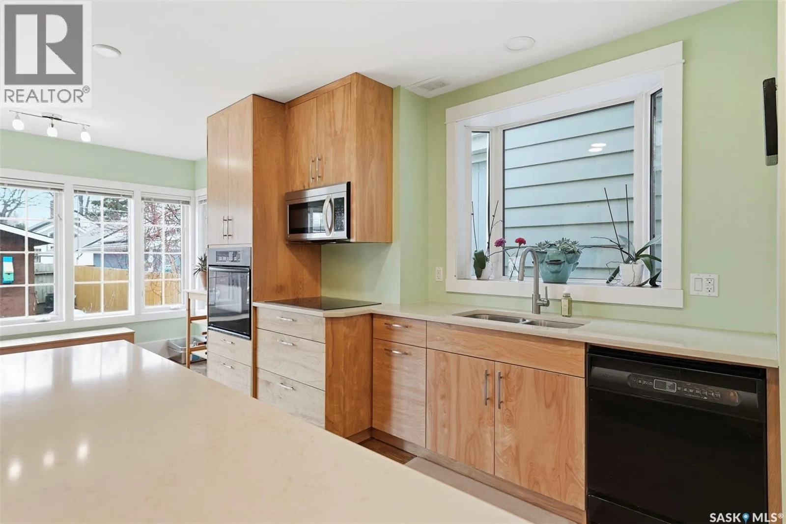 Beautiful Buena Vista! Welcome to this charming 2½-storey character home in one of Saskatoonâs most sought-after neighbourhoods. This must-see property offers 6 bedrooms, 3 bathrooms, all thoughtfully updated over the years while preserving its original charm and character. The main floor is sure to impress, featuring new hardwood flooring throughout, a stylish new 2-piece bathroom, and a stunning kitchen complete with new cabinetry and quartz countertops. Relax in the sun room, unwind on the extended back deck (2022), or head upstairs to the second floor where youâll find three spacious bedrooms, a beautifully updated 4-piece bathroom, and a large rear-facing balconyâperfect for your own private oasis. And thereâs moreâhead up to the third floor and prepare to be amazed. This fully remodelled space (2025) features two additional bedrooms, new laminate flooring, fresh paint, an expanded closet, and a ceiling fan, offering both comfort and style. The fully finished basement, with its own separate side entrance, provides even more living space, including an additional bedroom, bathroom, and a renovated bonus room. Notable upgrades include an updated electrical panel, triple pane windows, furnace (2018), and brand-new sewer and water service lines (2025). This lovingly maintained home in the heart of Buena Vista showcases pride of ownership throughout. Just minutes from downtown, this is Saskatoon living at its finestâdonât miss your opportunity to view this exceptional property before itâs gone! As per the Sellerâs direction, all offers will be presented on 04/21/2026 5:00PM. (id:27476)
