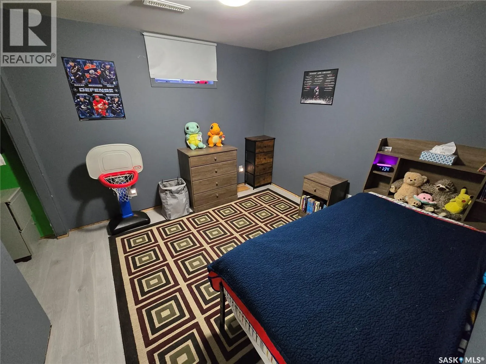Welcome to 420 Martin Crescent in Sedley, Saskatchewan, a friendly prairie community located between Regina and Weyburn, offering great local amenities including a Kâ8 school, hockey rink, daycare, and active community atmosphere. This stylish 1,210 sq. ft. bungalow sits on a spacious double+ lot and offers plenty of room for family living both inside and out. The home features five bedrooms, two bathrooms, a heated single attached garage, durable brick and siding exterior, and a large covered back deck overlooking the yard and chain-link dog run. Entry through the garage welcomes you into a practical mud room complete with extensive closet and cabinet storage, main floor laundry, and direct access to the covered deck and backyard. To the right of the entry is a well-sized kitchen equipped with a full set of appliances and ample workspace. Adjacent to the kitchen is a comfortable dining area that flows nicely through the main living spaces. At the far end of the home, the large living room offers abundant natural light through oversized windows and provides a perfect space for entertaining or relaxing. The main floor also includes a 4-piece bathroom, a guest/childrenâs bedroom, and the primary bedroom featuring matching closets. Downstairs opens to a renovated family room ideal for movie nights or a play area for kids. Off the family room are two additional bedrooms and a second bathroom with custom shower and heated floors. A fifth bedroom is framed and boarded with two windows and ready for finishing. The basement also includes a utility room (with storage) plus a second storage space. Storage is a key feature of this home, with additional space in the garage entry nook, mud room cabinets, hallway closets, and basement areas. Outside, the double+ lot provides plenty of green space for kids and pets. With space, functionality, and small-town charm, this home is ready for its next familyâschedule your viewing today and see all that 420 Martin Crescent has to offer. (id:27476)