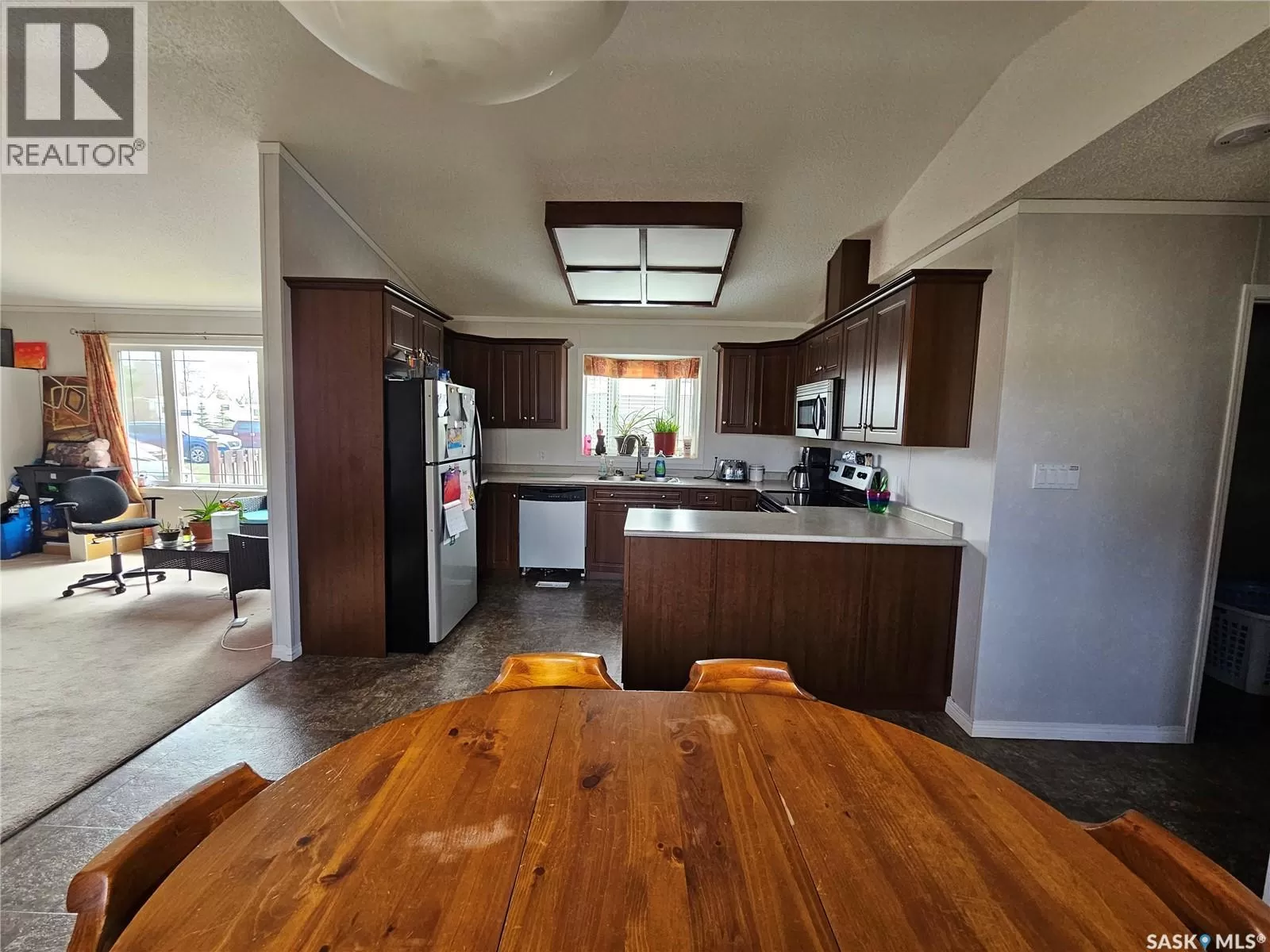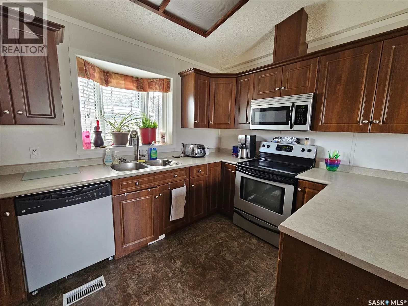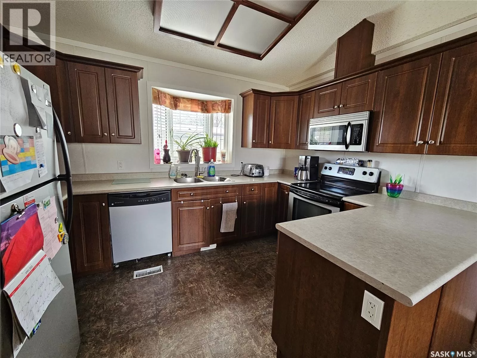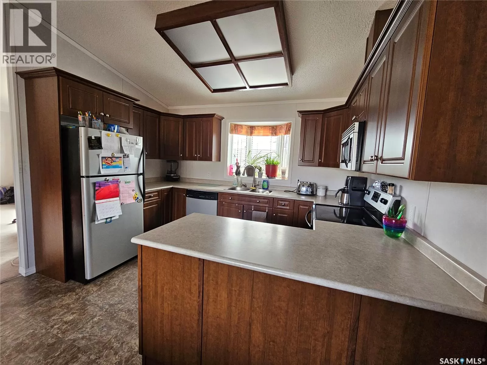 Looking for a comfortable and spacious home in the heart of Shaunavon? Look no further than this charming 2008 mobile home, boasting 1520 square feet of living space and offering everything you need to enjoy a comfortable and convenient lifestyle. Featuring 3 bedrooms and 2 bathrooms, this home is perfect for families of all sizes. The main suite comes complete with its own private ensuite and a walk-in closet, while the other rooms are well-appointed and spacious, providing plenty of room for relaxation and rest. In addition to its bedrooms and bathrooms, this home also boasts a second living space/bonus room, providing plenty of room for entertaining, gaming, or simply relaxing with family and friends. And with its open floor plan and ample natural light, this home is the perfect place to unwind and recharge after a long day. So if you're looking for a beautiful and spacious mobile home in one of Shaunavon's most desirable locations, look no further than this stunning 2008 property. With its comfortable living spaces, convenient location, and plenty of room for entertaining and relaxation, this home is sure to impress even the most discerning of buyers. The best part, this could be easily moved as the hitch is still available for a quick move! Don't wait - schedule your showing today! No taxes, but there is a quarterly levy of 185.70/quarter, Lot rent is 310$/mo (id:27476)