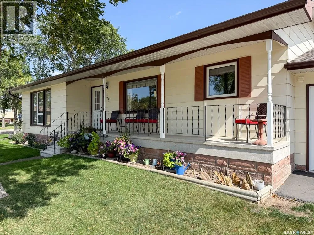 Welcome to 568 Poplar Crescent in the vibrant community of Shaunavon! This 1,328 sqft bungalow offers a welcoming layout and fantastic entertaining spaces. Step onto the covered front porch â the perfect spot for a peaceful morning coffee. Straight through the front door, you'll find 3 of the 4 main-floor bedrooms, all well-sized and conveniently located next to the updated 4-piece bathroom. To the left of the entry is the sunny living room with large windows that bring in an abundance of natural light, while to the right is the dining area and kitchen, where youâll appreciate the functional layout and easy flow of space. Just off the kitchen is the 4th bedroom or home office â featuring its own 2-piece ensuite and garden doors that lead to a backyard deck ideal for summer BBQs or evening drinks. Downstairs, the fully developed basement is ready for entertaining, offering a spacious rec room with a show-stopping wet bar at one end and a cozy wood-burning fireplace at the other. One additional bedroom, a 3-piece bathroom, a den/storage room, laundry/utility room round out the lower level. The backyard is fully fenced and thoughtfully designed with a deck, 8x8 shed, garden area, and underground sprinklers in the front and side yard. The home also includes a single attached garage, a well-maintained furnace with regular servicing, a 100-amp panel, and a water heater from 2019. Located in a friendly, welcoming town with schools, parks, shops, and recreation close by, Shaunavon offers small-town charm with all the essentials. Whether you're starting out, growing your family, or looking for a move-in ready place with room to breathe â this is a home that delivers. (id:27476)