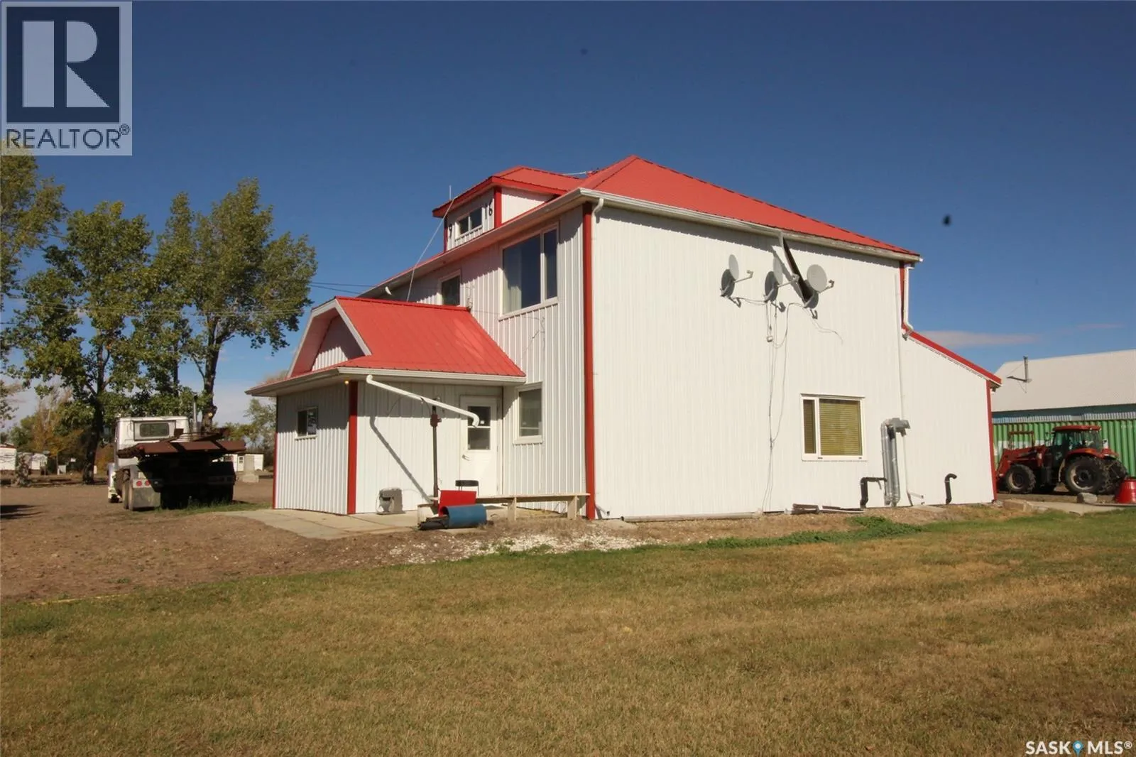 East Side of Shaunavon, on Range Road 3184 by water tower Discover the perfect blend of country living and business potential with this exceptional 9.96-acre property located adjacent to the town of Shaunavon. Designed to accommodate both family life and entrepreneurial ventures, this acreage offers a rare combination of comfort, space, and functionality. The 1916 two-storey character home exudes timeless charm while offering all the modern conveniences. The well-appointed kitchen features abundant cabinetry, a built-in dishwasher, microwave hood fan, and French door refrigerator. Just off the kitchen, a custom oak office with built-in cabinetry and desk provides the ideal space for working from home. The living room is warm and inviting, with a vaulted ceiling and hardwood floors. The main floor also includes two spacious bedrooms, a full 4-piece bathroom, and a dedicated laundry area with storage. Upstairs, the second floor is set up as a self-contained revenue suite, featuring a galley-style kitchen and dining area, a large living room with sweeping views of the town, two bedrooms, a full bath, and a laundry room with additional storage. The lower level of the home is designed for relaxation and entertainment with a massive games room, a den complete with a full wet bar, a 4-piece bath, and extensive workspace and storage areas. For those seeking business-ready facilities, the outbuildings are exceptional. The main shop measures 66â x 100â, including an 81â x 48â heated bay with floor drains, welding and workbench areas, and a separate radiator repair room. The shop is fully equipped with hot and cold running water, sewer service, multiple 30- and 50-amp electrical plugs, two bathrooms, and a break room. A mezzanine level provides additional office and parts storage space. The 55â x 31â north addition houses a used-oil burner system that operates the in-floor radiant heat for the buildings. Two additional cold storage buildings offer more versatility. (id:27476)