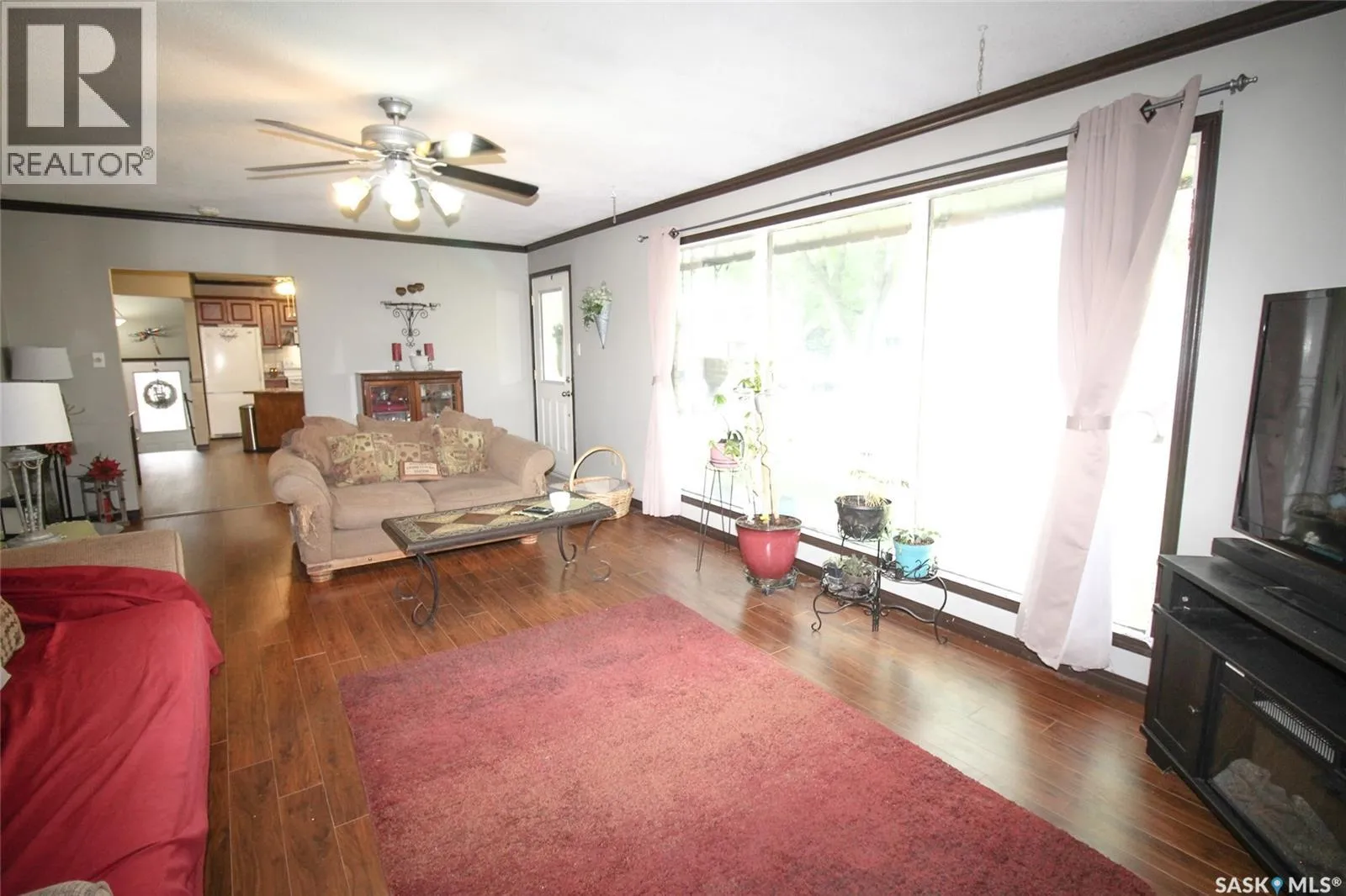This home is just pretty as a picture! The curb appeal with the sturdy brick exterior, cottage style roof and bright blue doors makes heads turn on this block. The home is located close to the hospital and school and backs on to open prairie, the dog park and the walking trail in Shaunavon. Through the front door, you enter into a huge living space with floor to ceiling windows for brilliant natural light. The kitchen and dining room are just to the right and allows your guests to flow from one room to the next. The kitchen is designed with ample cabinetry, an island for prep or buffet, and room for at least two cooks! The home has three bedrooms on the main and a large updated 4pc bath with a luxurious soaker tub. The lower level is fully developed with a massive family room that features built in cabinets, and a wet bar. Part of the family room is carpeted and set up with a space for an electric fireplace. A fourth bedroom is located in the basement and has a large walk in closet. There is a separate laundry room, storage/work room and a full 3pc bath. The home has an EE furnace, central air and natural gas hot water heater. The back yard of the home is fully fenced with a large patio space, mature grass and even an apple tree. The single detached garage is accessed from the back lane and is extra long for storage and workspace. One of the best deals in Shaunavon today, in an amazing neighborhood. (id:27476)