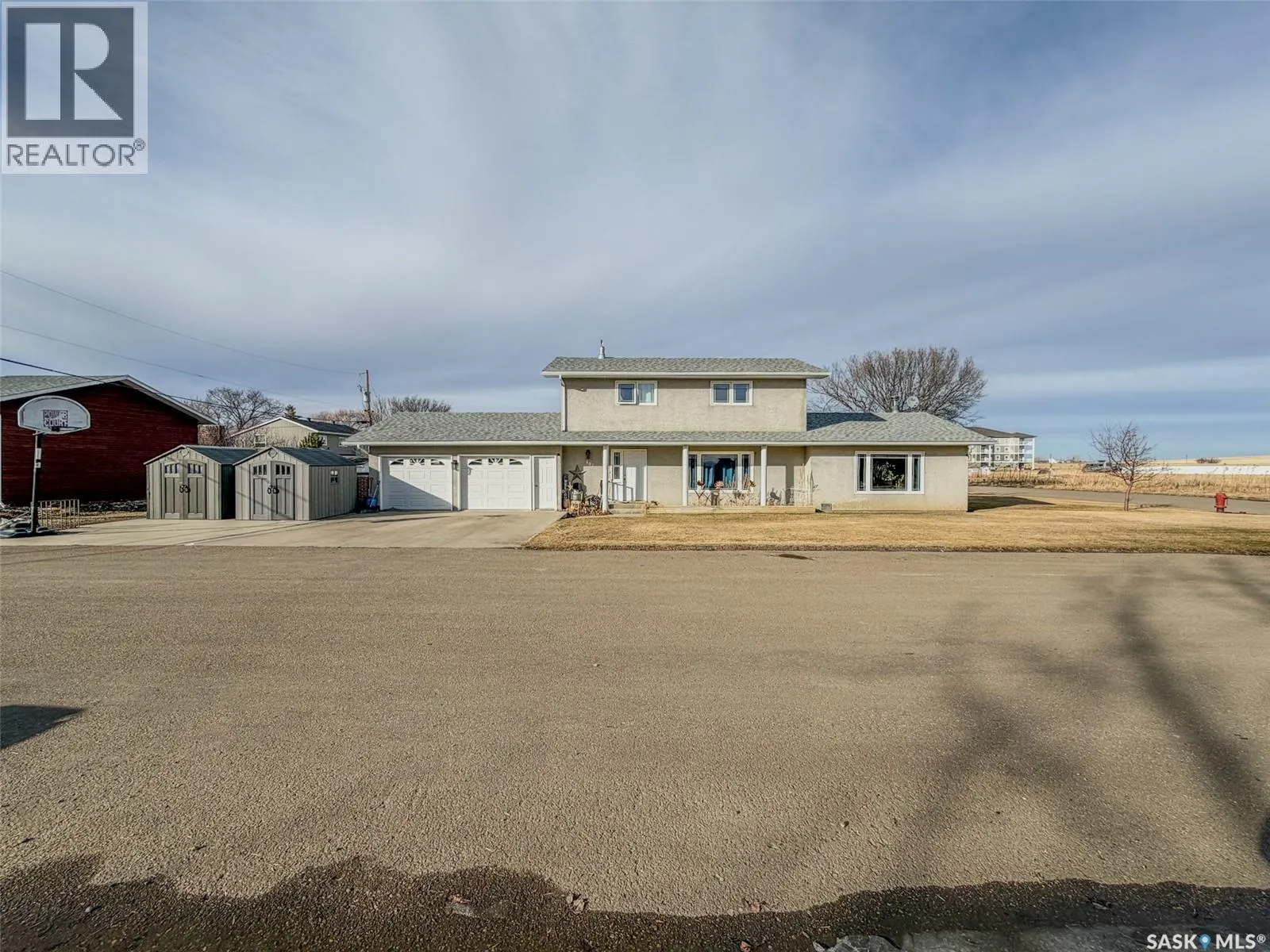 Welcome to 405 5th Street East in Shaunavonâa warm and inviting 2,056 sqft 1.5-storey home perfectly designed for family living and entertaining. Built in 1978 and set on a spacious corner lot with lane access, this home boasts both curb appeal and thoughtful functionality. Step onto the 4-car driveway and into the fully insulated double attached 24x26 garage, offering plenty of room for vehicles and storage. Inside, the main entry welcomes you with immediate access to the second-floor sleeping quarters, where you'll find a total of three good-sized bedrooms - the spacious primary bedroom offers a large walk-in closet complete with a built-in dresser and a dedicated makeup counterâperfectly blending comfort and functionality. A 4-piece bathroom completes the upstairs living space. Just off the entry, a cozy front living room with large windows and a stylish built-in feature wall offers flexible spaceâideal as a lounge, office, or main-floor bedroom conversion. The heart of the home is the updated kitchen, complete with modern finishes, an eat-up island, and seamless flow into the dedicated dining area. One wing off the kitchen leads to the detached garage entry, a generous storage/utility room, and a 3-piece bathroom/main floor laundry room. The opposite end opens up to the stunning great roomâyour future favourite spaceâ with a stunning ceiling feature and a statement wood-burning fireplace wall that brings character and warmth. Step outside through the great room to discover your backyard oasis. The fully fenced yard is designed for relaxation and gatherings with a wrap-around deck, a hot tub, a tranquil pond feature, and raised garden bedsâall nestled into the corner lot with privacy and space to spare. Shaunavon is a vibrant community offering schools, shopping, dining, healthcare, and recreation. If you're looking for a well-maintained, spacious home with personality and potentialâ405 5th Street East delivers it all! (id:27476)