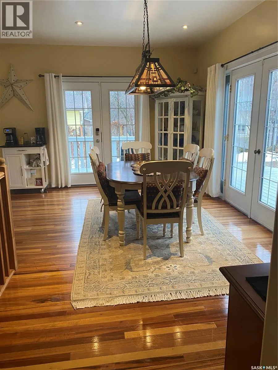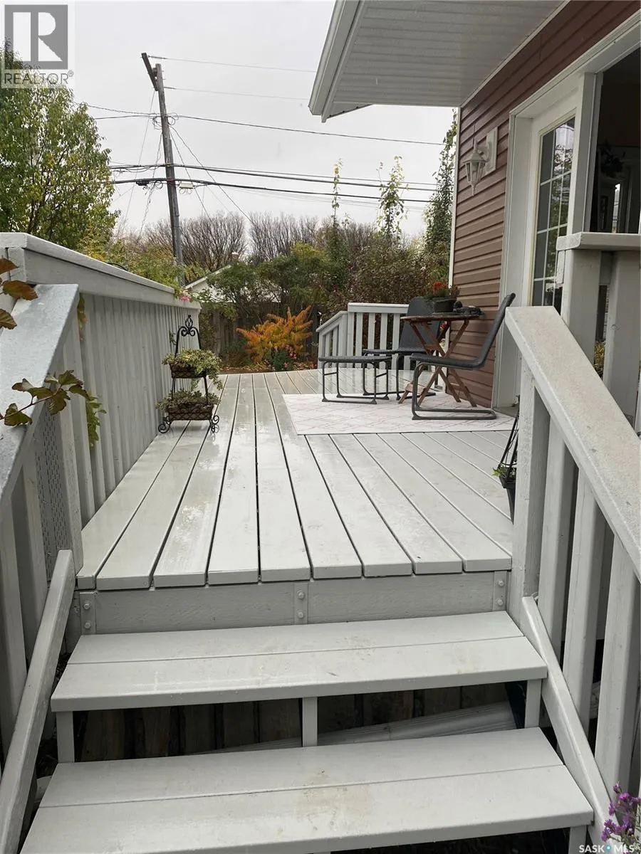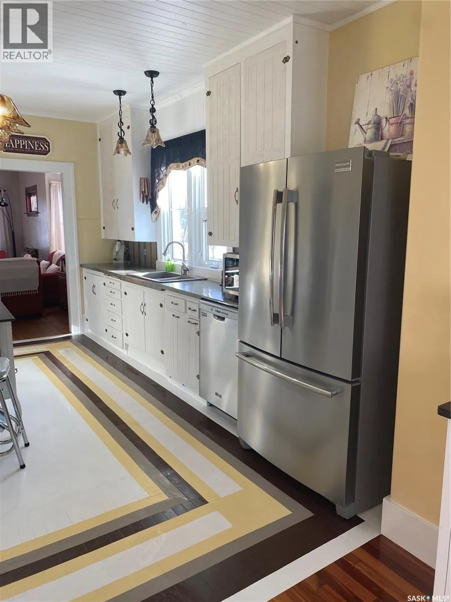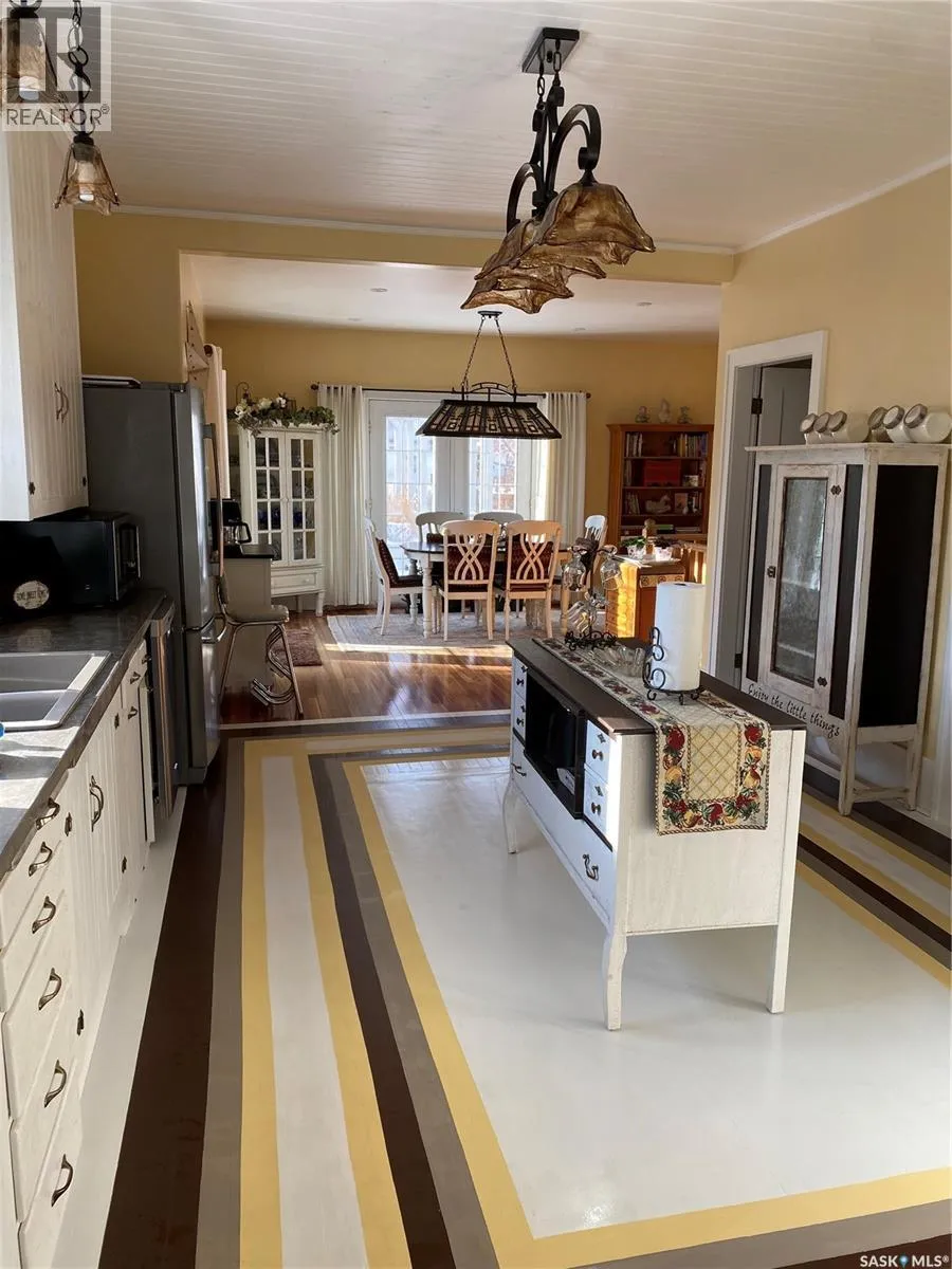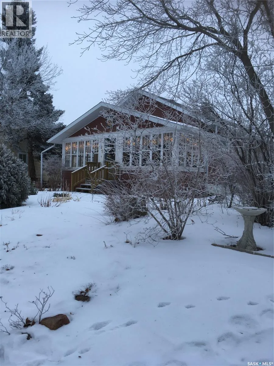 Welcome to this one-of-a-kind character cottage-style home, full of warmth, charm, and cozy vibesâtruly a standout in Shaunavon. From the moment you arrive, youâre greeted by a delightful 3-season veranda overlooking Centre Street and a beautifully maintained perennial gardenâan inviting spot to enjoy your morning coffee or unwind in the evening. Step inside to a bright and welcoming living room showcasing original woodwork that has been lovingly and meticulously cared for, adding timeless character you simply canât replicate. The main floor features three comfortable bedrooms and a kitchen that sits at the heart of the home, complete with a thoughtful addition that enhances both space and functionality. The sun-filled dining room offers direct access to the deck, perfect for summer BBQs and entertaining. The beautifully updated bathroom is a true retreat with a separate shower and soaking tub, plus generous space to relax and recharge. Convenience continues with main-floor laundry located in the back foyer, offering extra storage and direct access to the attached garage. Downstairs, youâll find two additional bedrooms, a cozy family room, and a second 4-piece bathroom featuring a jetted soaker tubâplus bonus laundry for added flexibility. This home has been exceptionally well cared for and offers an incredible blend of character, comfort, and functionality. A fantastic find with so much to loveâthis is one you truly need to see in person. (id:27476)